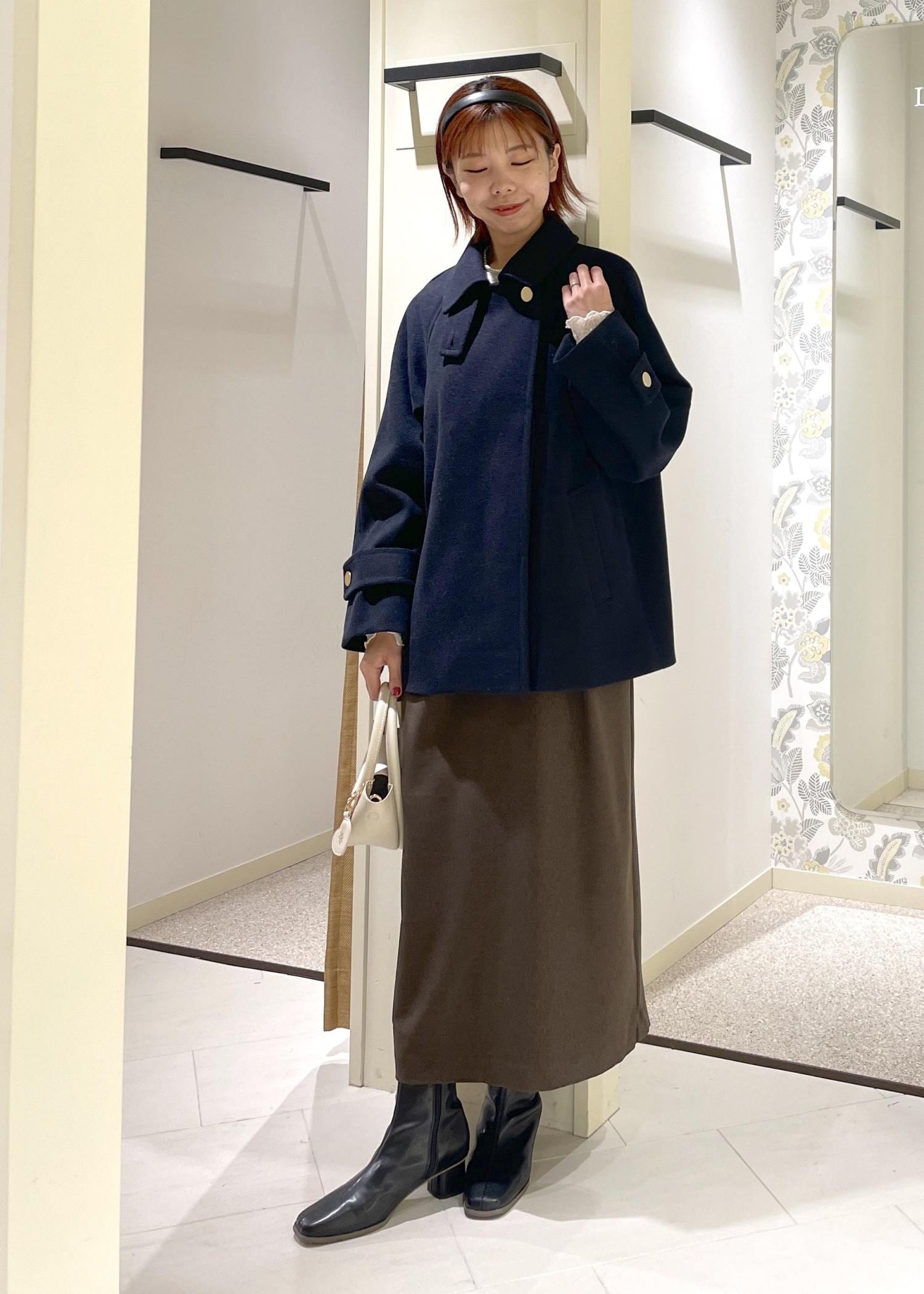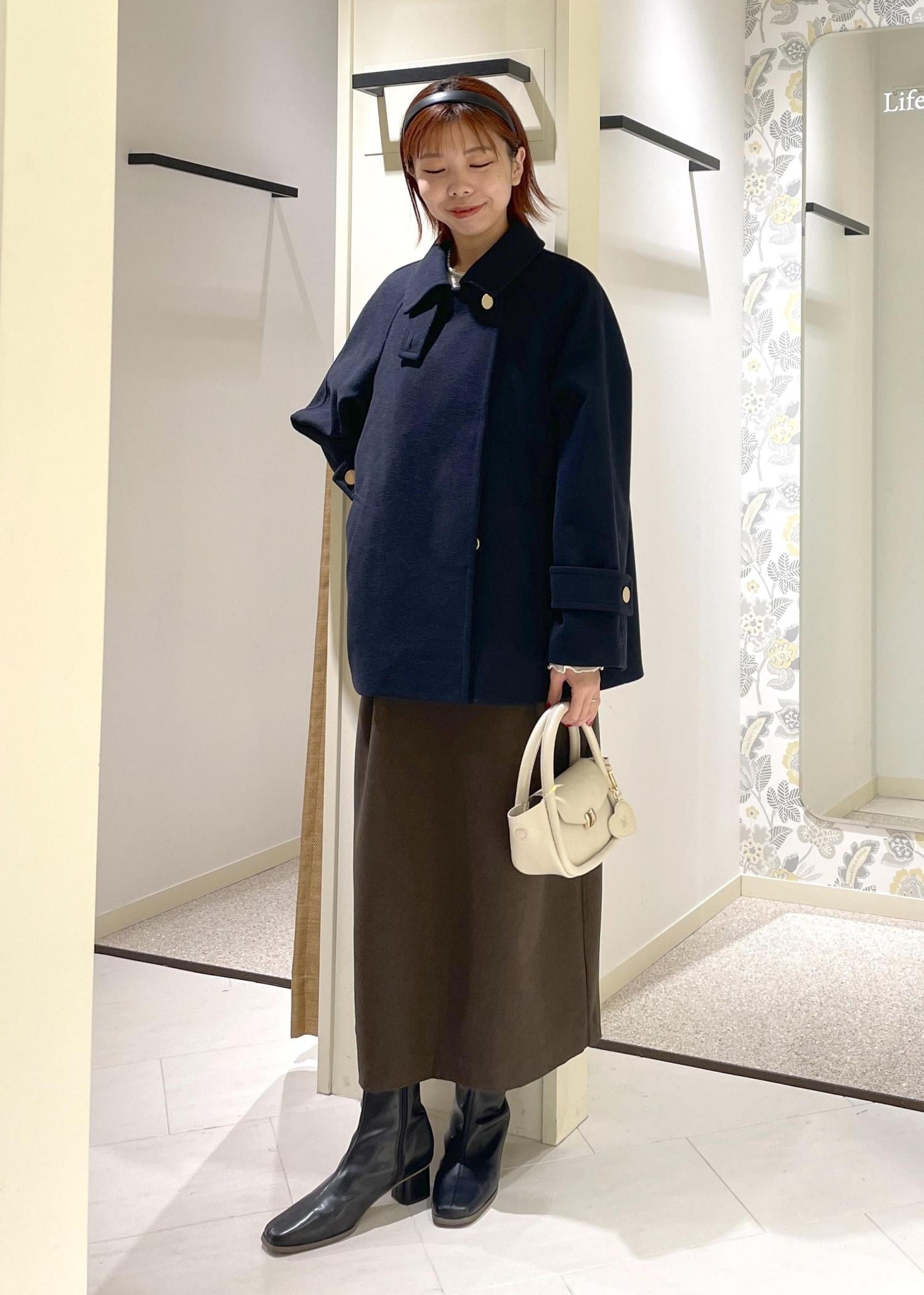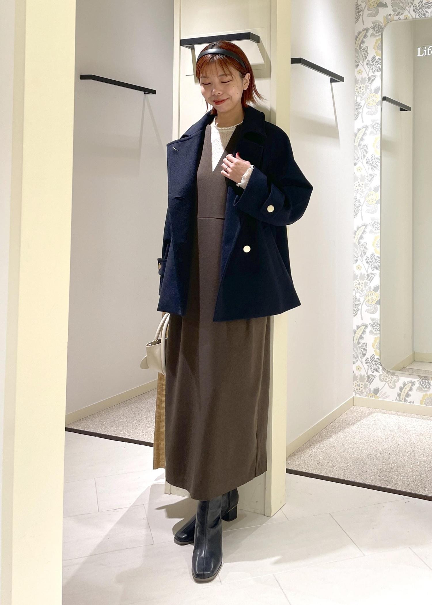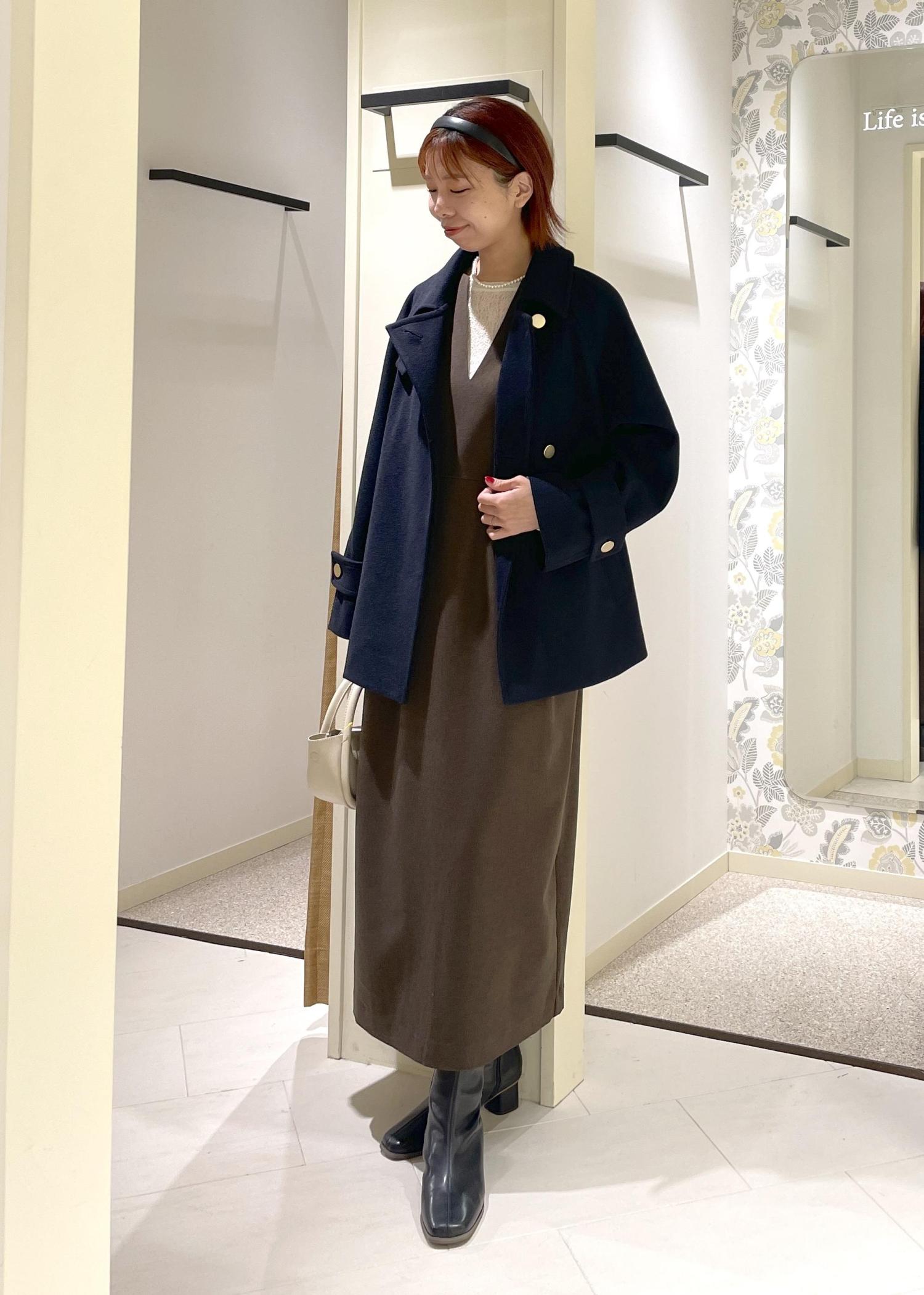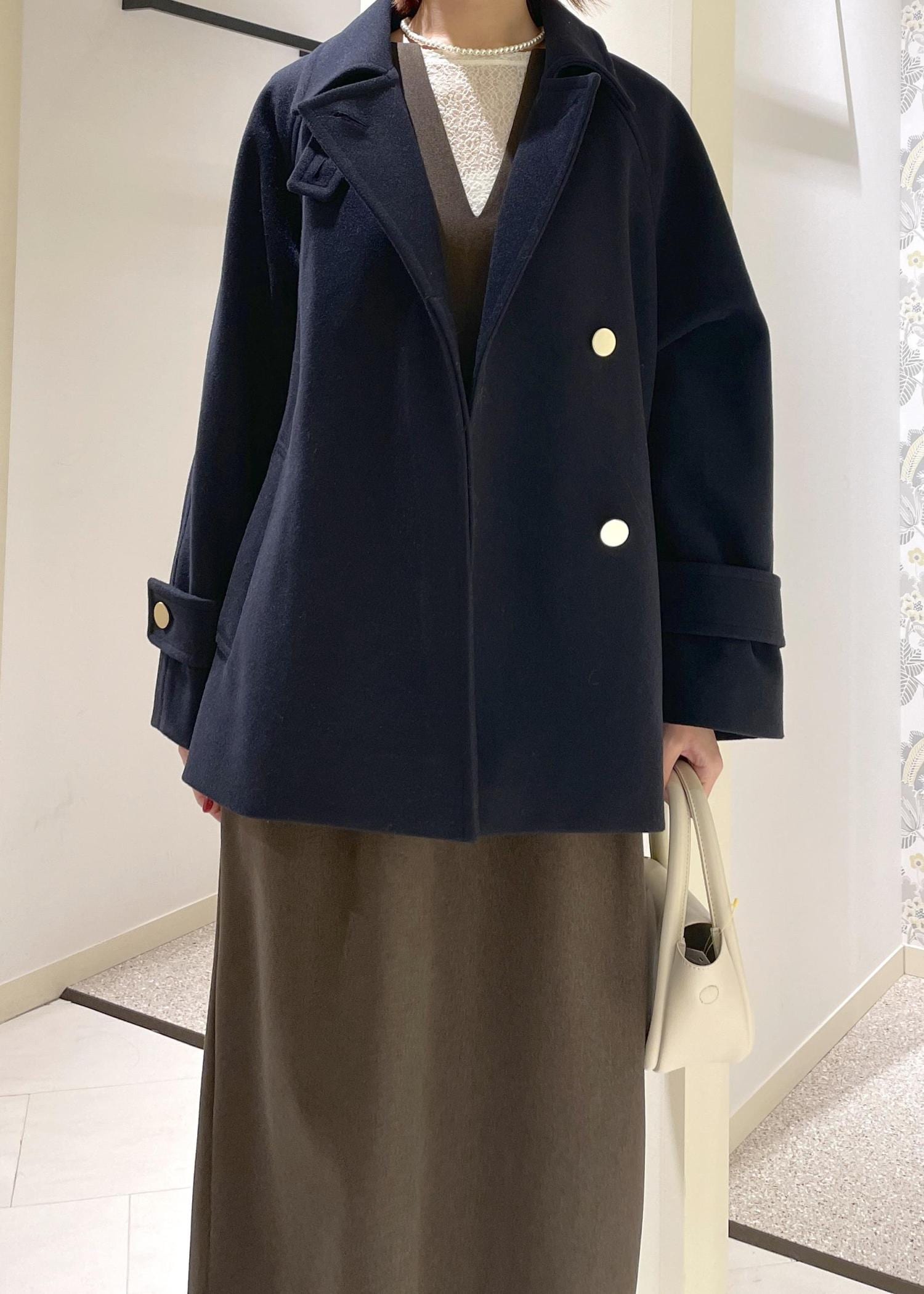 金ボタンコートですっきりと、オンオフで使いやすいきれいめカジュアルにまとめてみました。