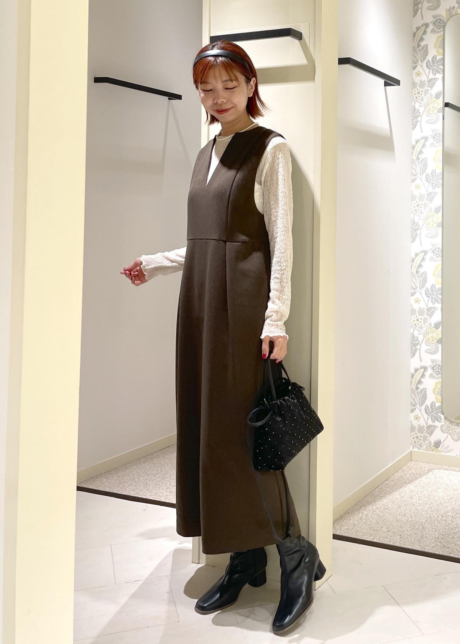 ROPÉ PICNICキーネックジャンパースカートダークブラウン / M¥5,597レビュー深めのキーネックで顔まわりをすっきりと見せてくれます。切り替え位置が高くスタイルを綺麗に見せつつ、体型カバーも叶えてくれます◎