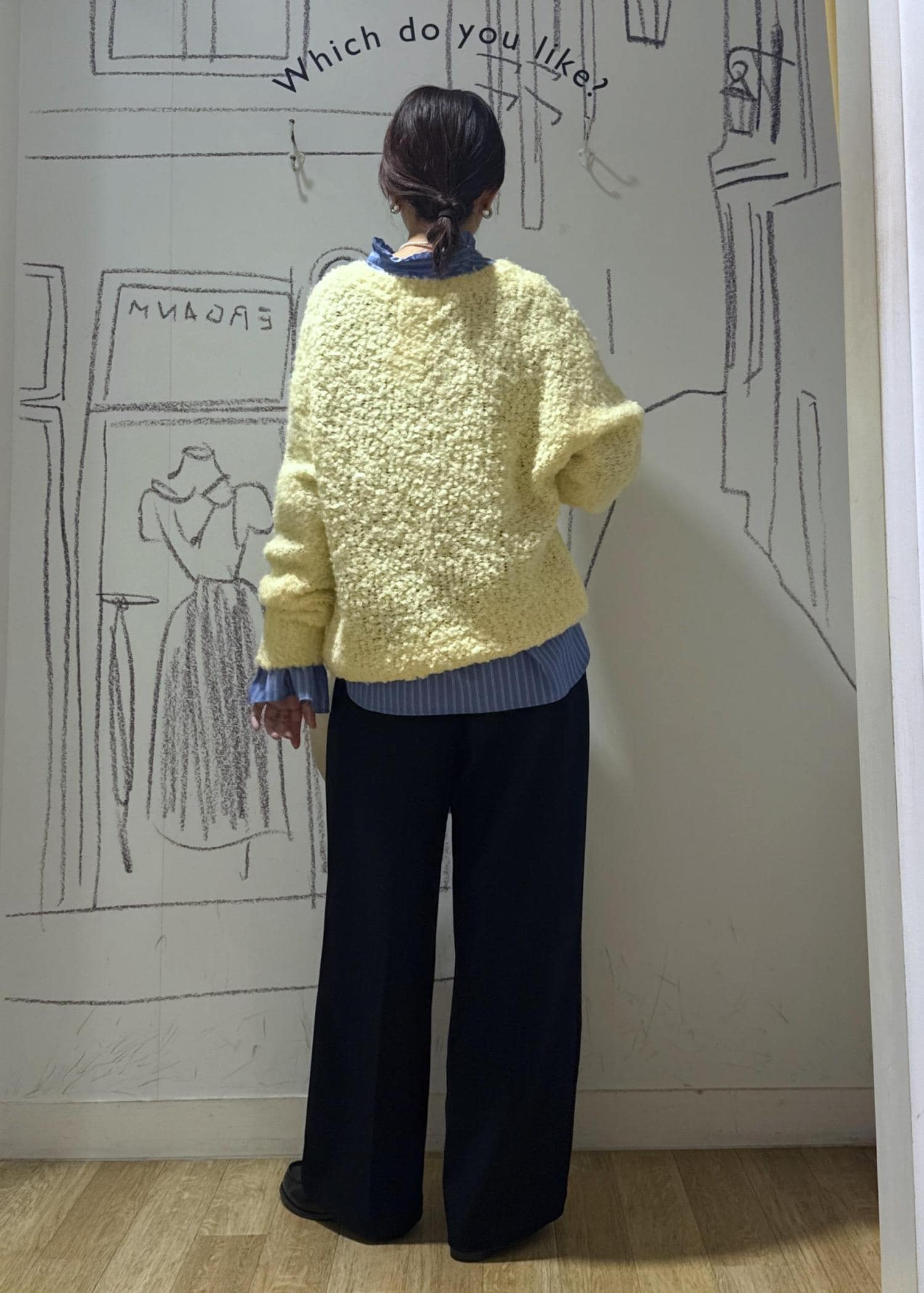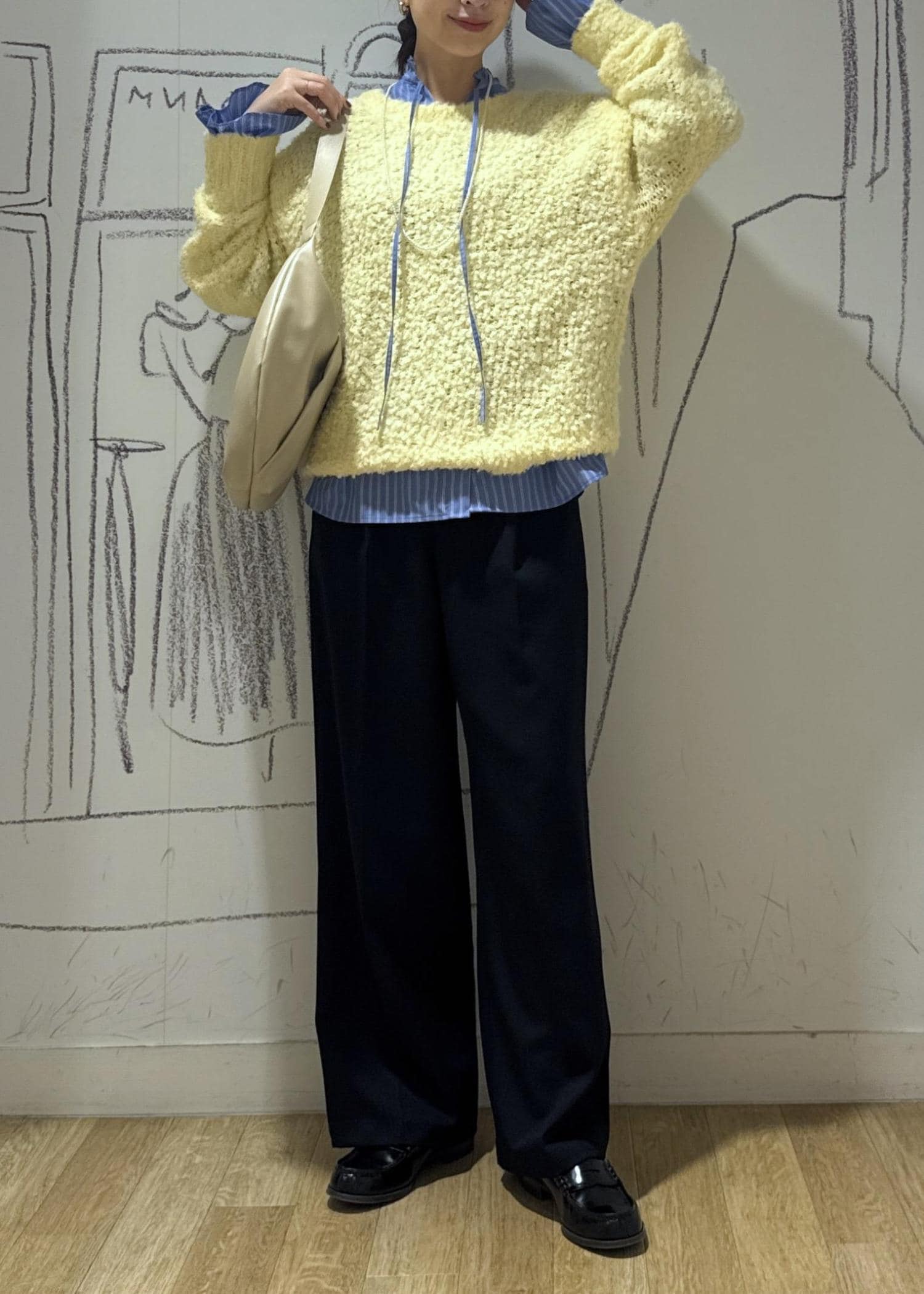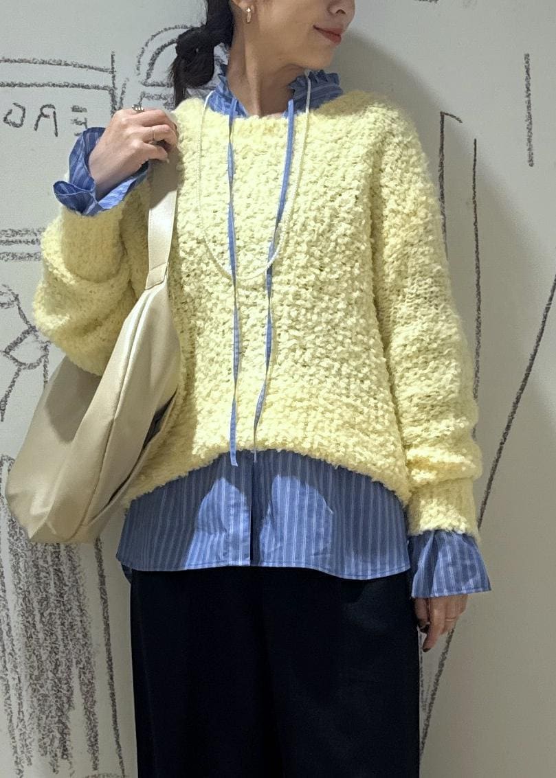 ROPÉ PICNICブークレカラーニットイエロー / F¥5,489レビュー全体的にゆとりのあるサイジングでシャツやブラウスのレイヤードも楽に着込めます。袖は指に掛かる長さがあります。目がしっかり詰まったニットではないので軽くストレスフリーな着心地です。