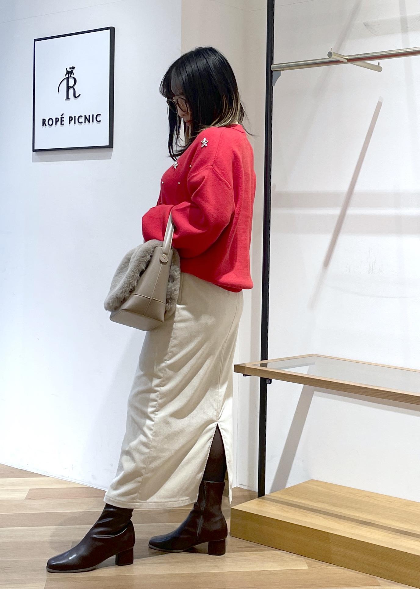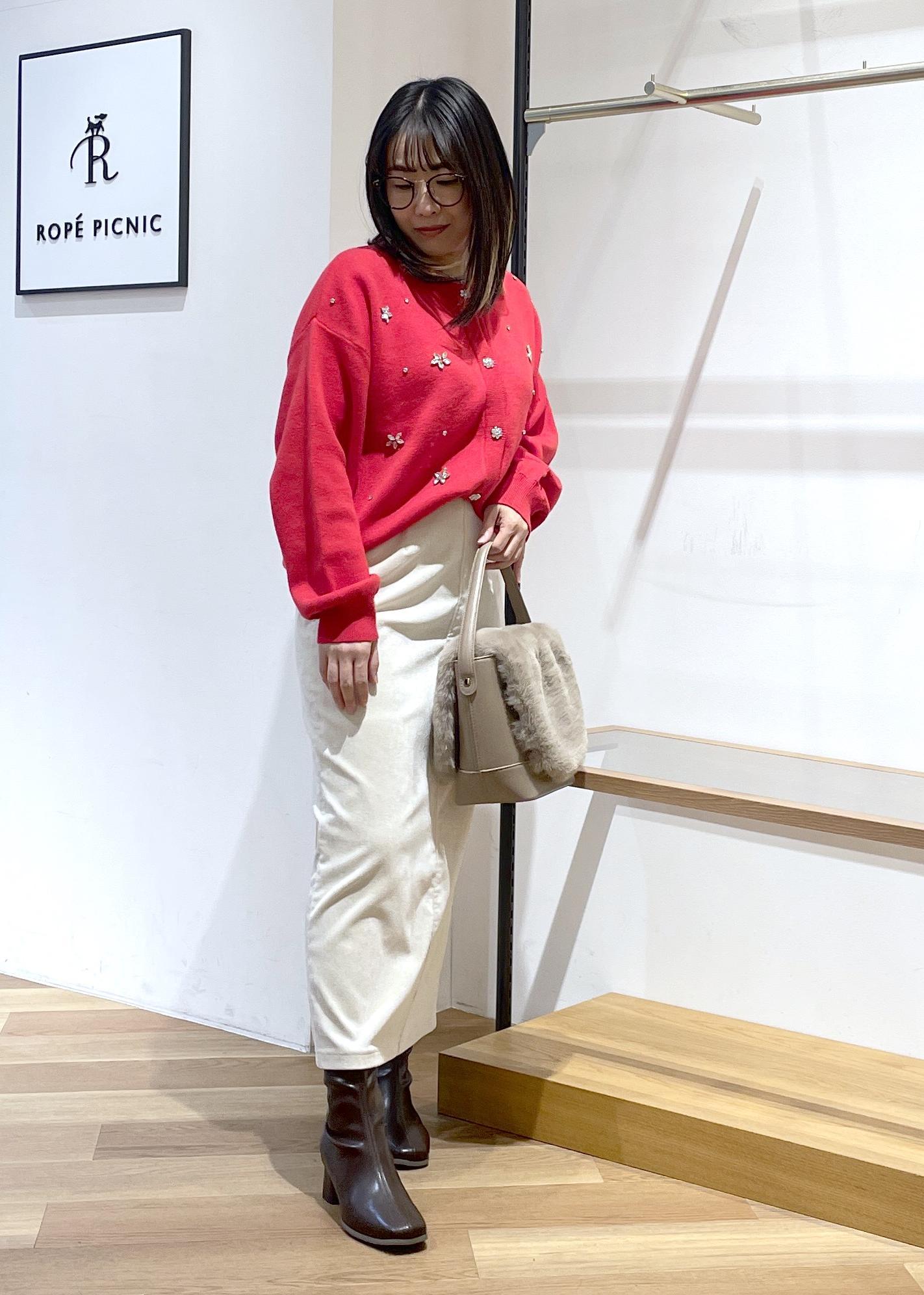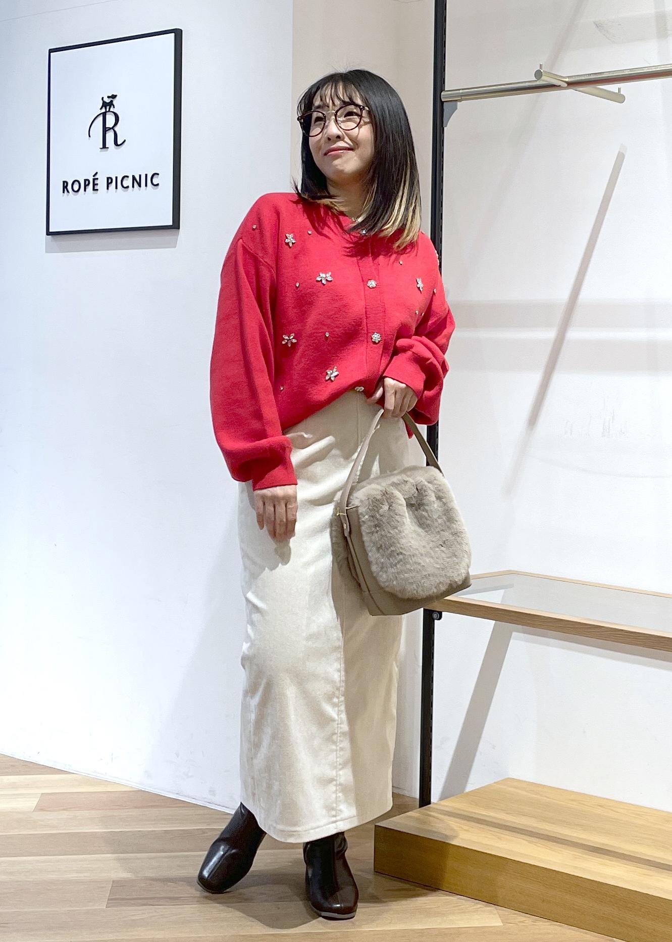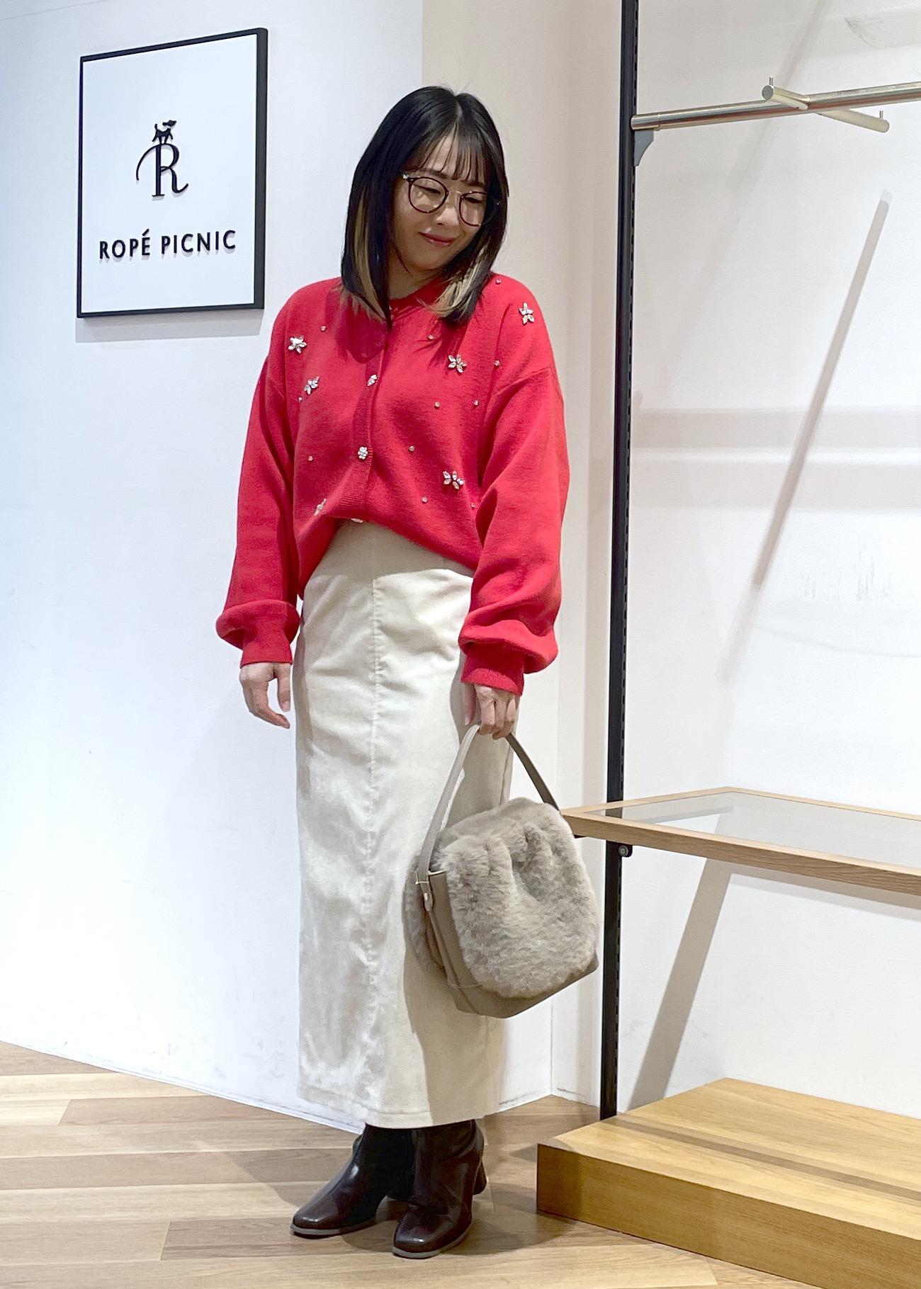 ROPÉ PICNICビジューニットカーディガンレッド / F¥5,995レビュー大きめのビジューが印象的なカーディガンです。着心地はとても柔らかく、もちもちとした肌触りです。大人可愛スタイルに大活躍します。
