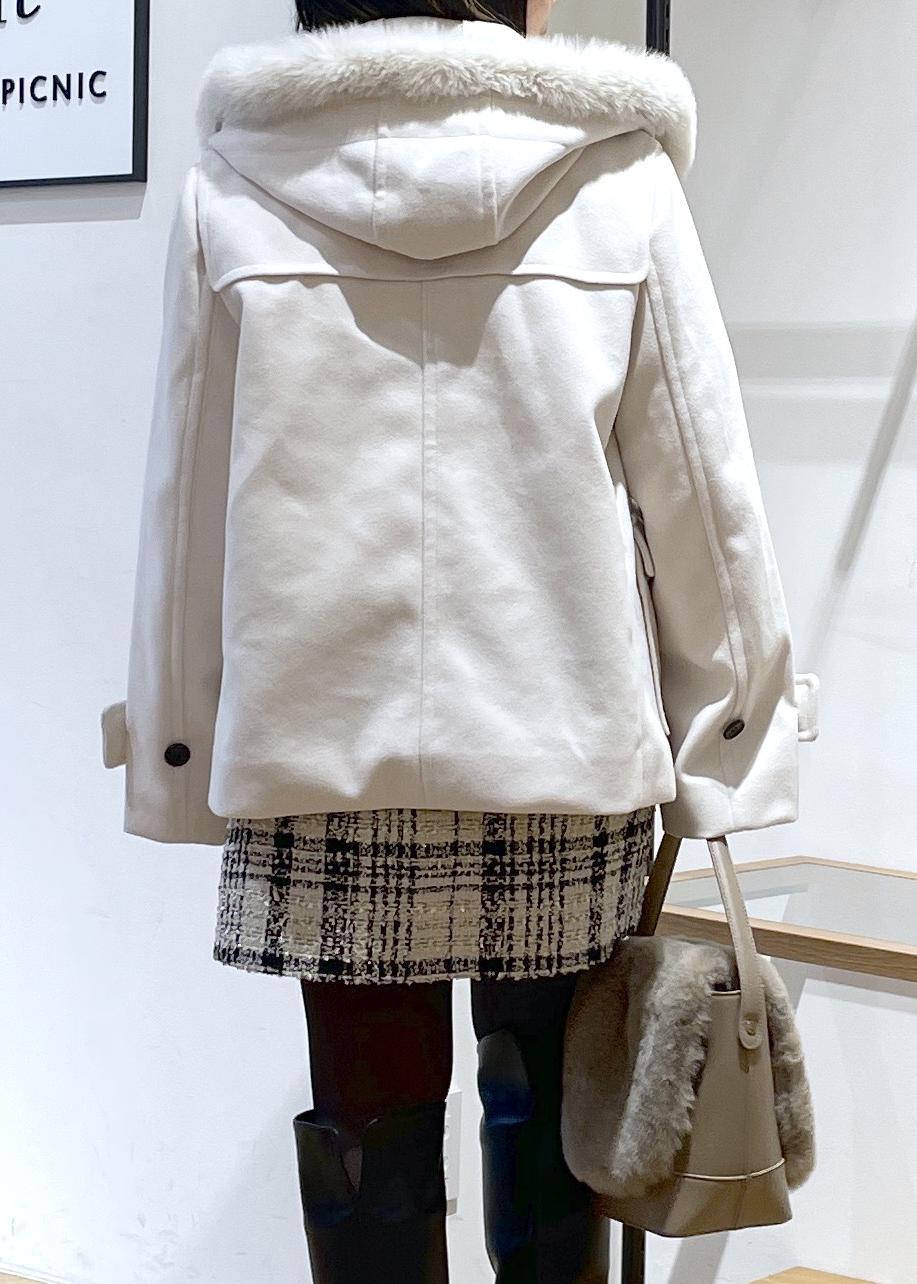 ショートダッフルコートです。とっても軽いです。肩幅も身幅もジャストなサイズ感です。その分スッキリ見えるので、華奢見え効果抜群です。