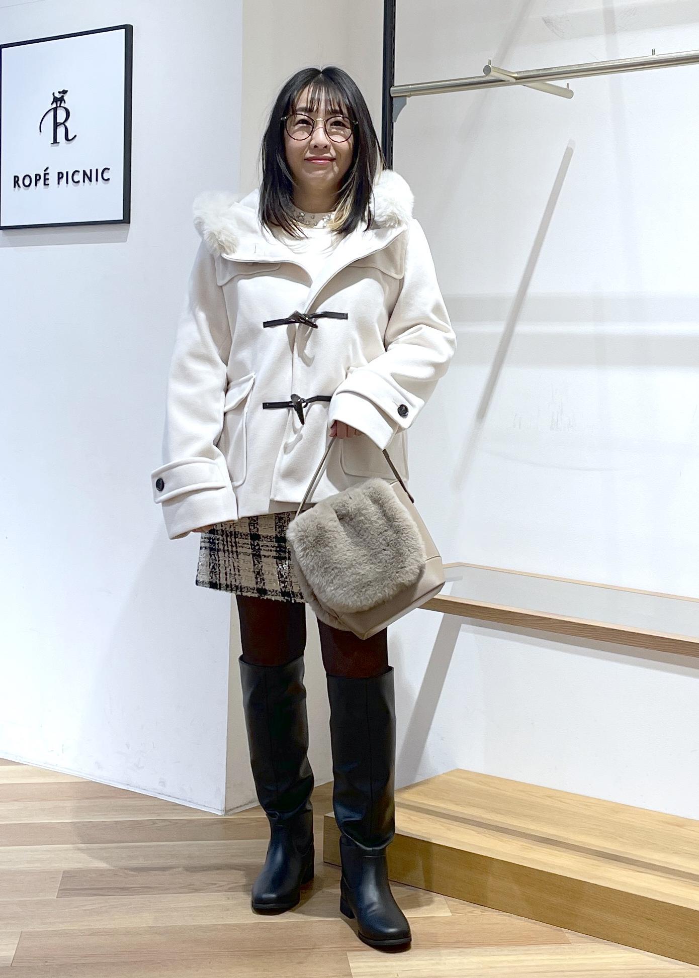 ROPÉ PICNICジャージーメルトンシリーズ ファー付きショートダッフルコート/リンクコーデキナリ / M¥9,240レビューショートダッフルコートです。とっても軽いです。肩幅も身幅もジャストなサイズ感です。その分スッキリ見えるので、華奢見え効果抜群です。