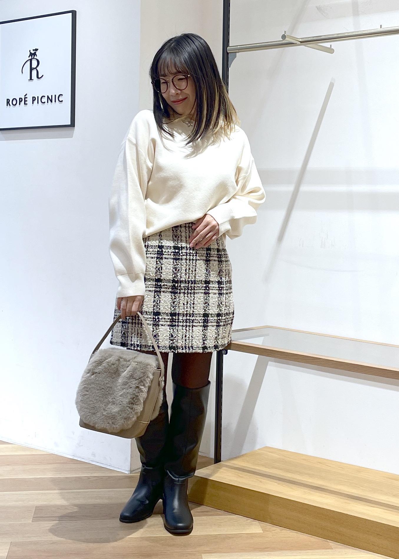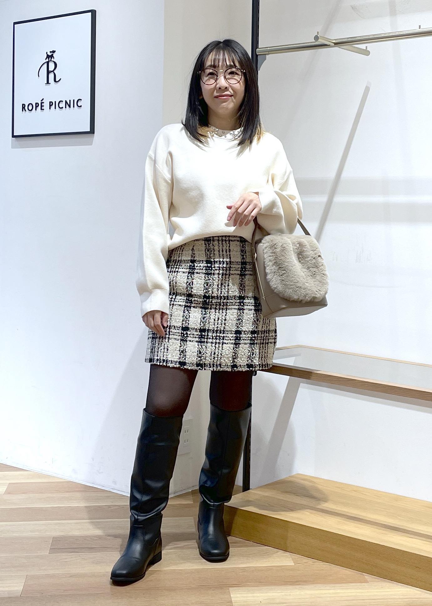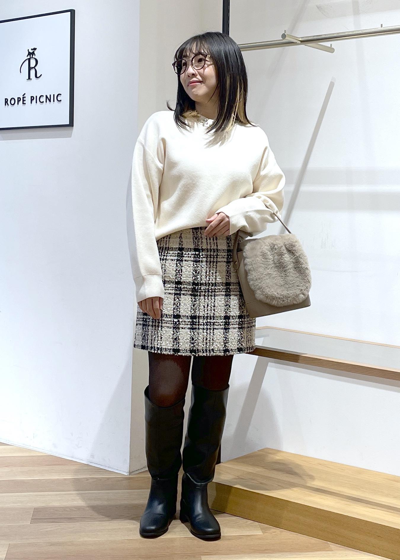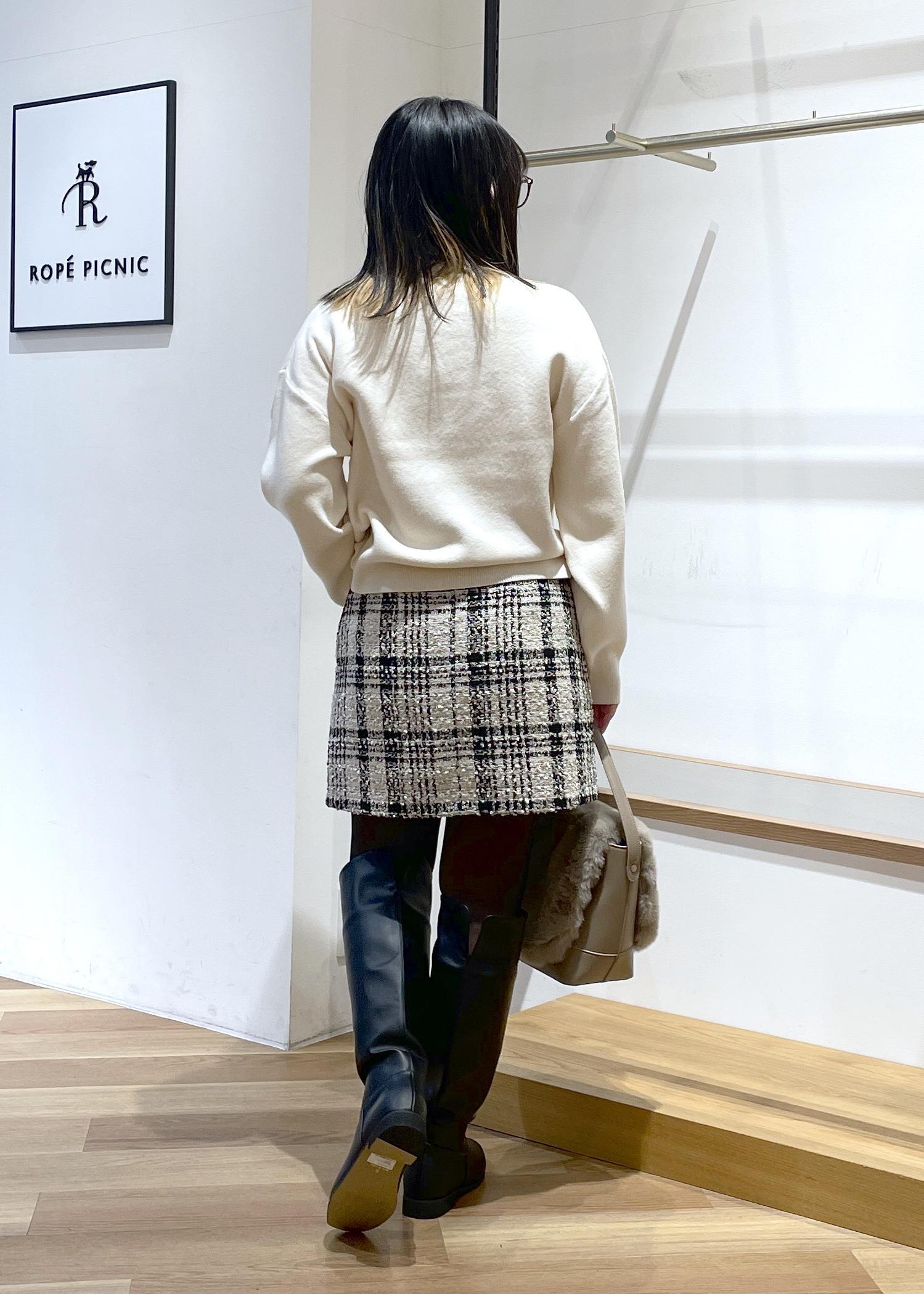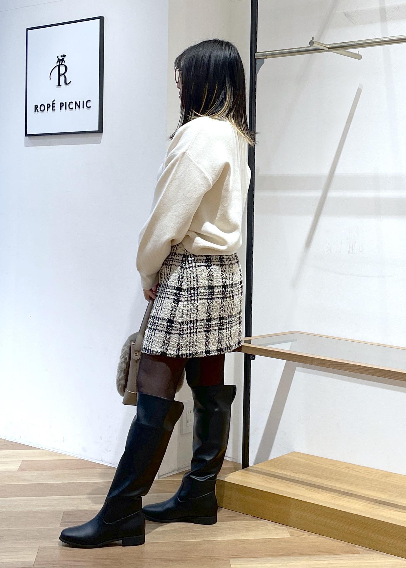ROPÉ PICNICファンシーツイードチェックミニスカートキナリ / S¥5,995レビューツイード素材で着用するだけでちゃんと感が出ます。ミニ丈ですが、裏地がインパンツになってますので安心です○ブーツ合わせも可愛いです。