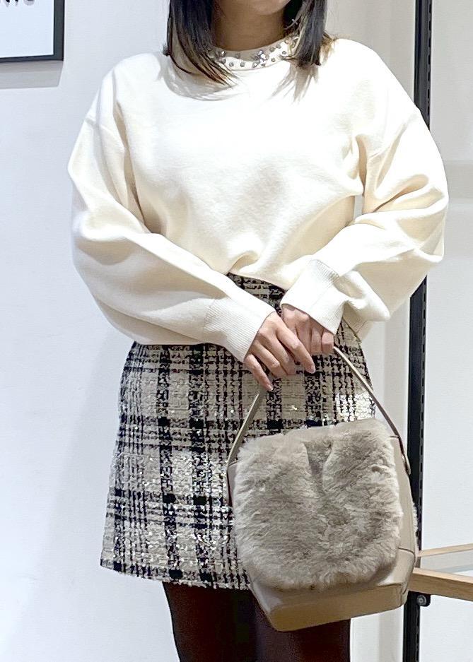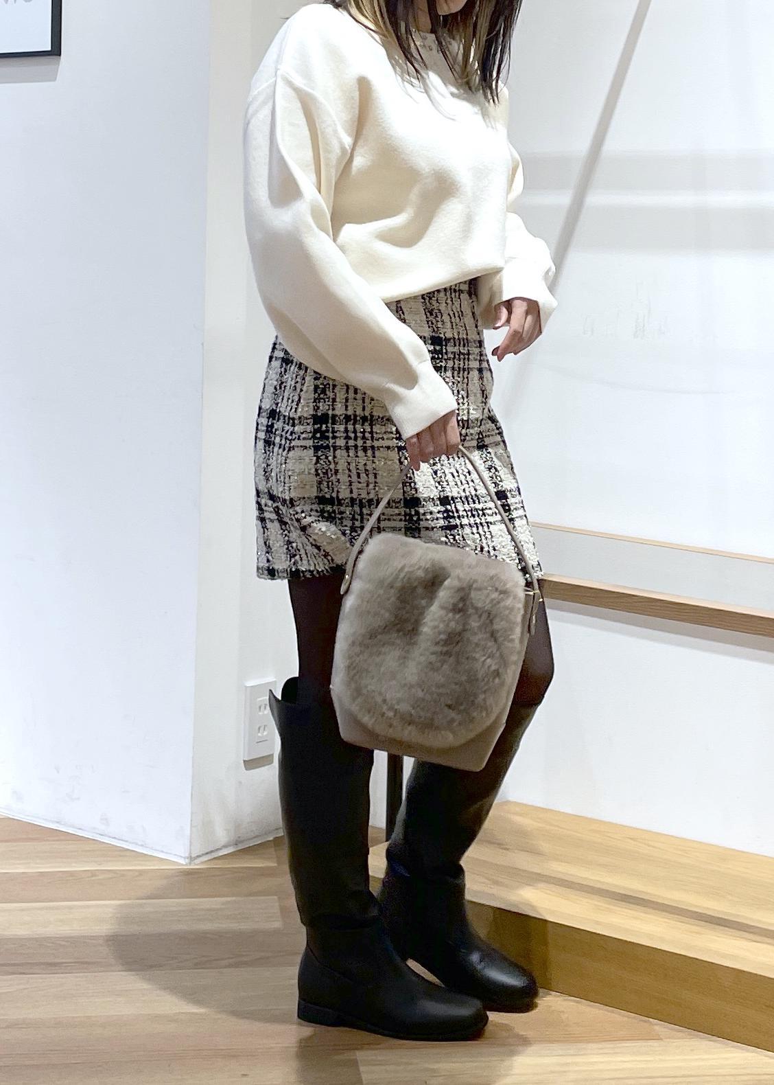 ツイード素材で着用するだけでちゃんと感が出ます。ミニ丈ですが、裏地がインパンツになってますので安心です○ブーツ合わせも可愛いです。