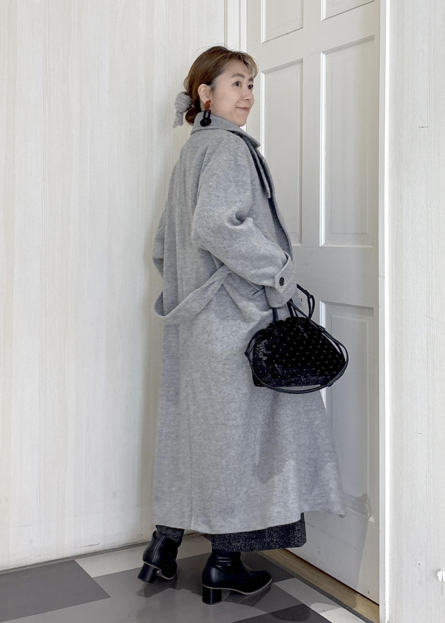 ROPÉ PICNICJAPAN FABRIC スタンドカラーロングコート/一部WEB限定カラーライトグレー / F¥19,800レビューロングコートで、重さが気になるところ、羽織ってみるとそこまで重たくない印象で、ふんわりと柔らかな風合いを纏えるので、女性らしい優しさと凜としてるイメージを持ち合わせるコートです。