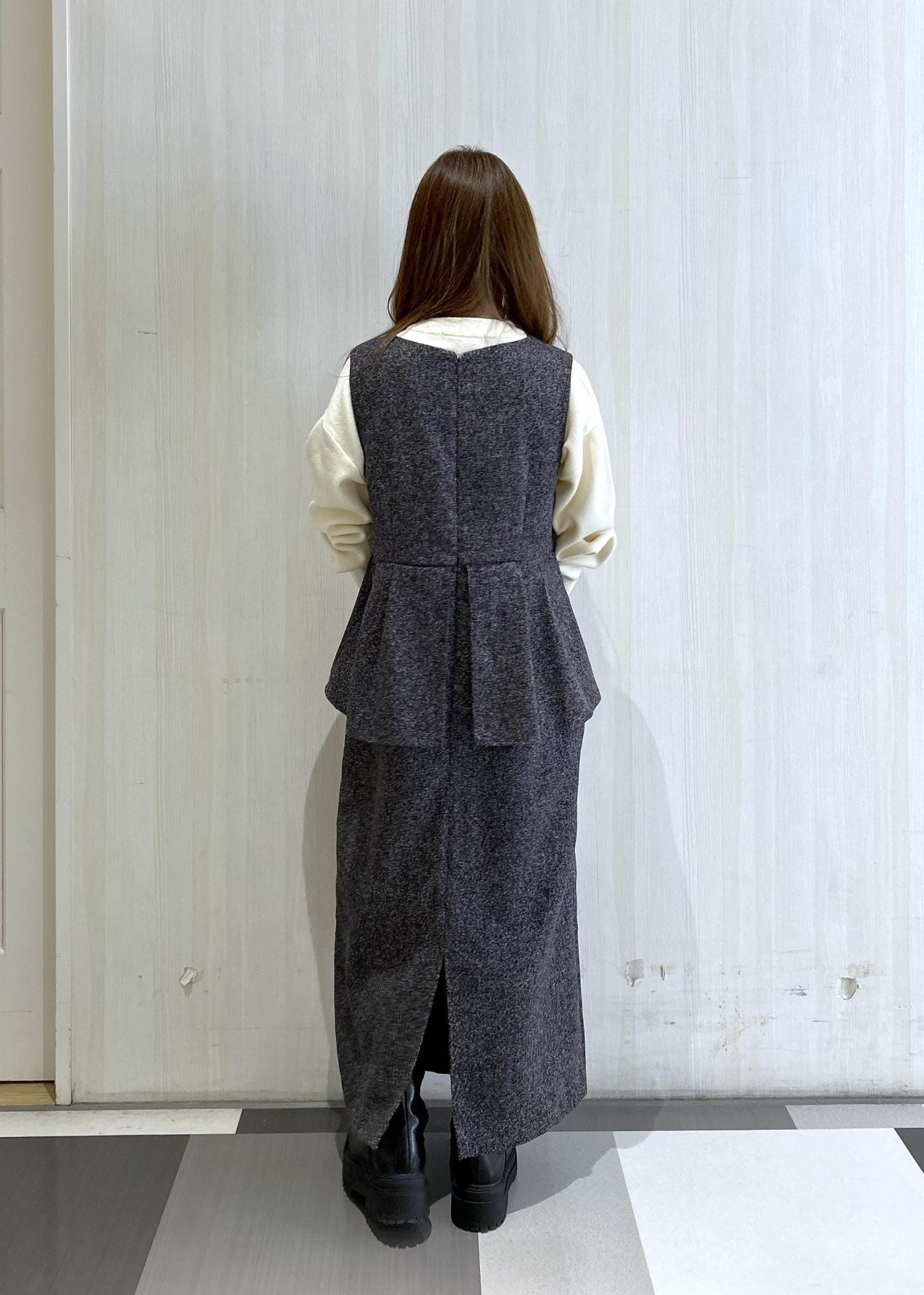 ペプラムデザインがアクセントのワンピースのスタイルにしました♡