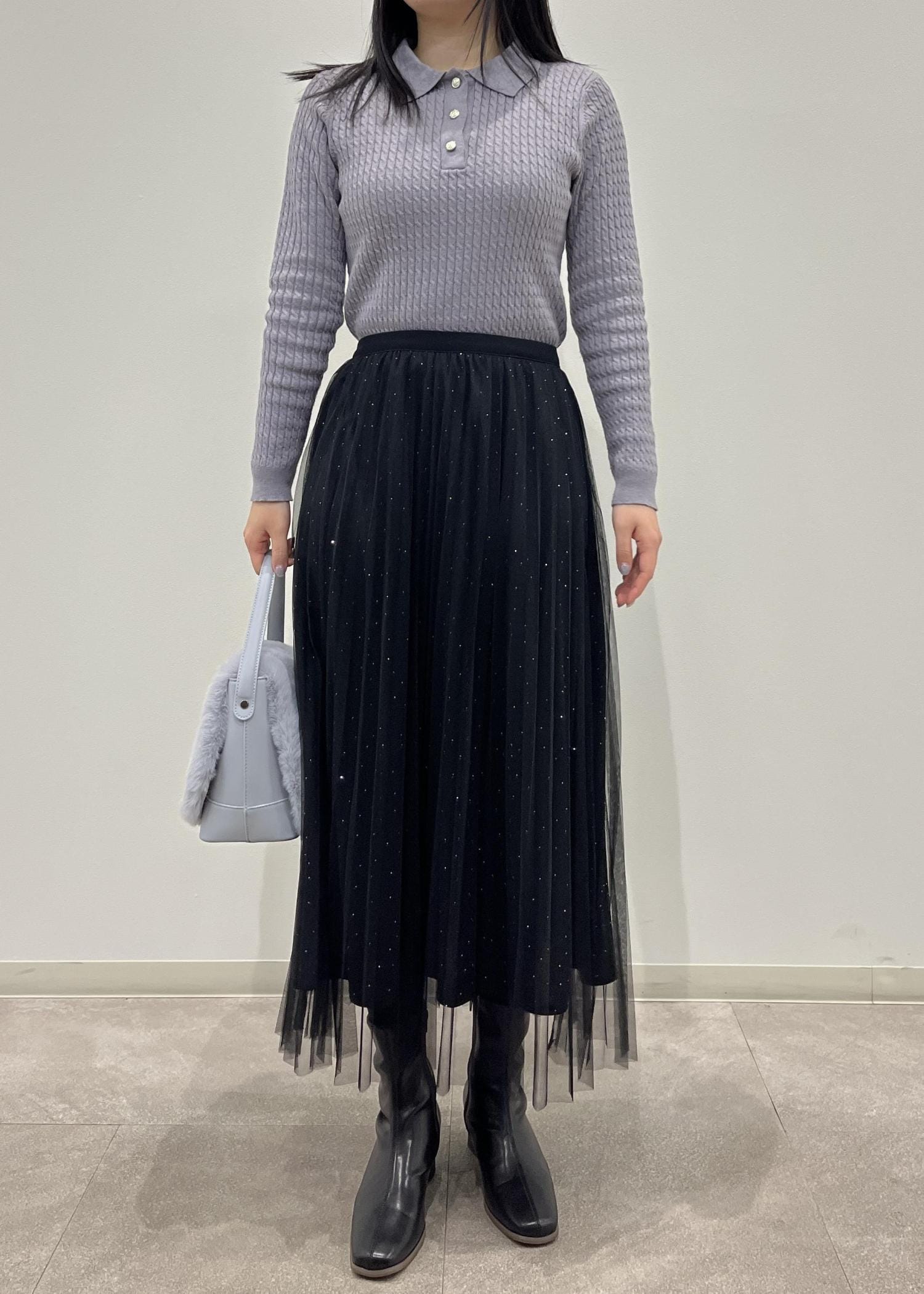 ROPÉ PICNICキラキラチュールプリーツスカート/着丈が選べるブラック / MT¥6,490レビューウエスト総ゴムで着心地楽チンです。