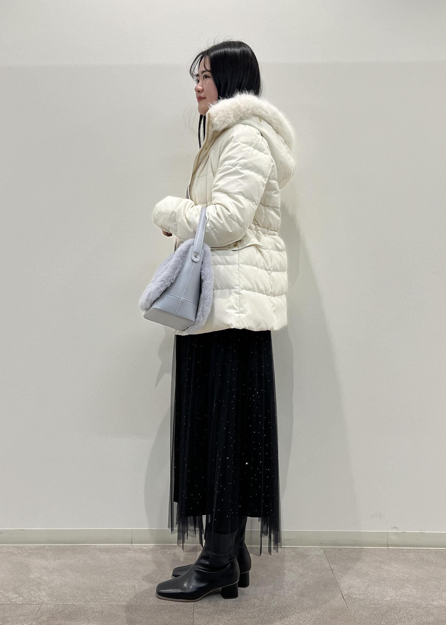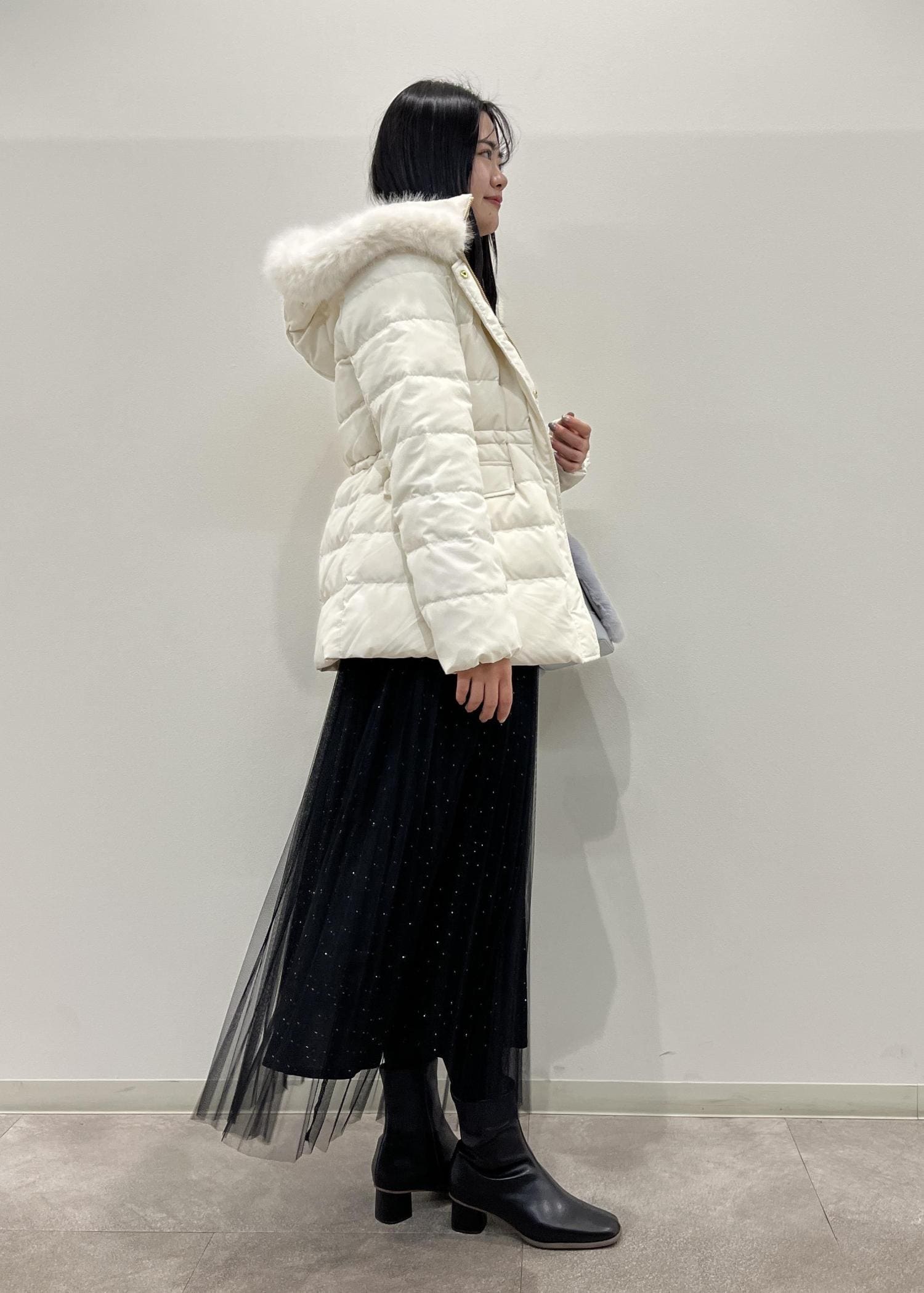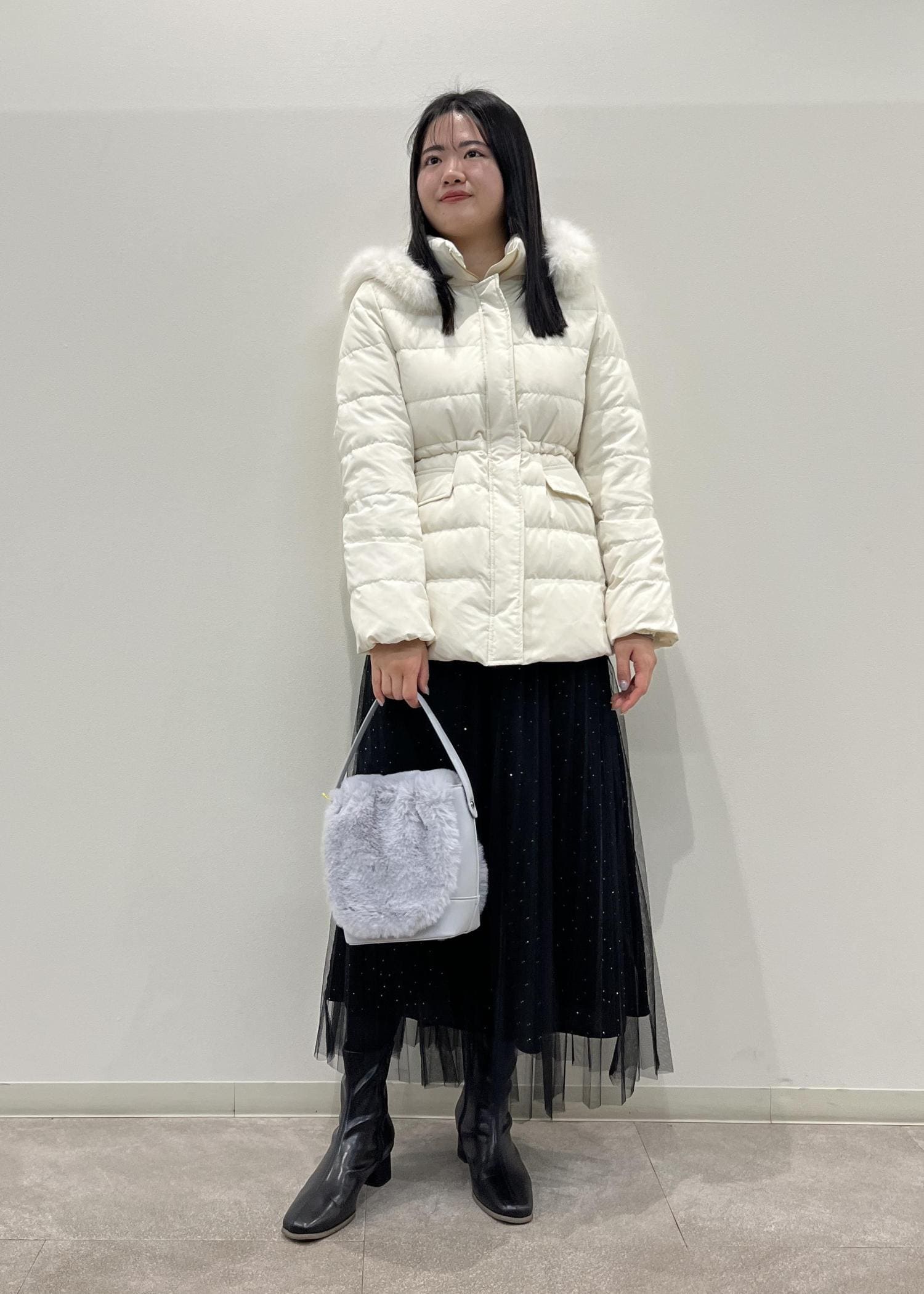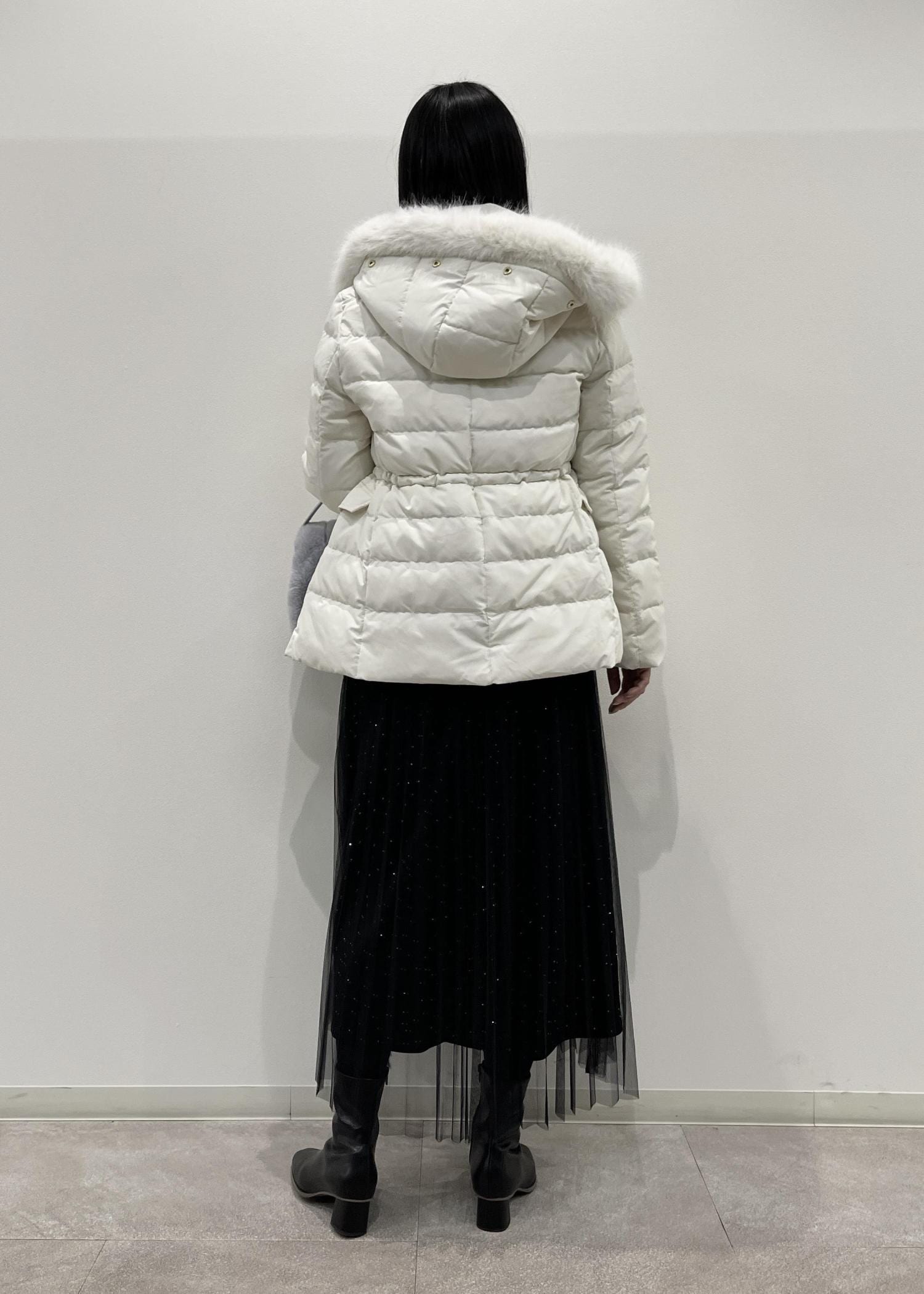 ROPÉ PICNIC【GREEN DOWN/グリーンダウン】ファー付きダウンミドル丈コート/リンクコーデオフホワイト / M¥18,700レビューニットを着ても少しゆとりがあるくらいのサイズ感です。