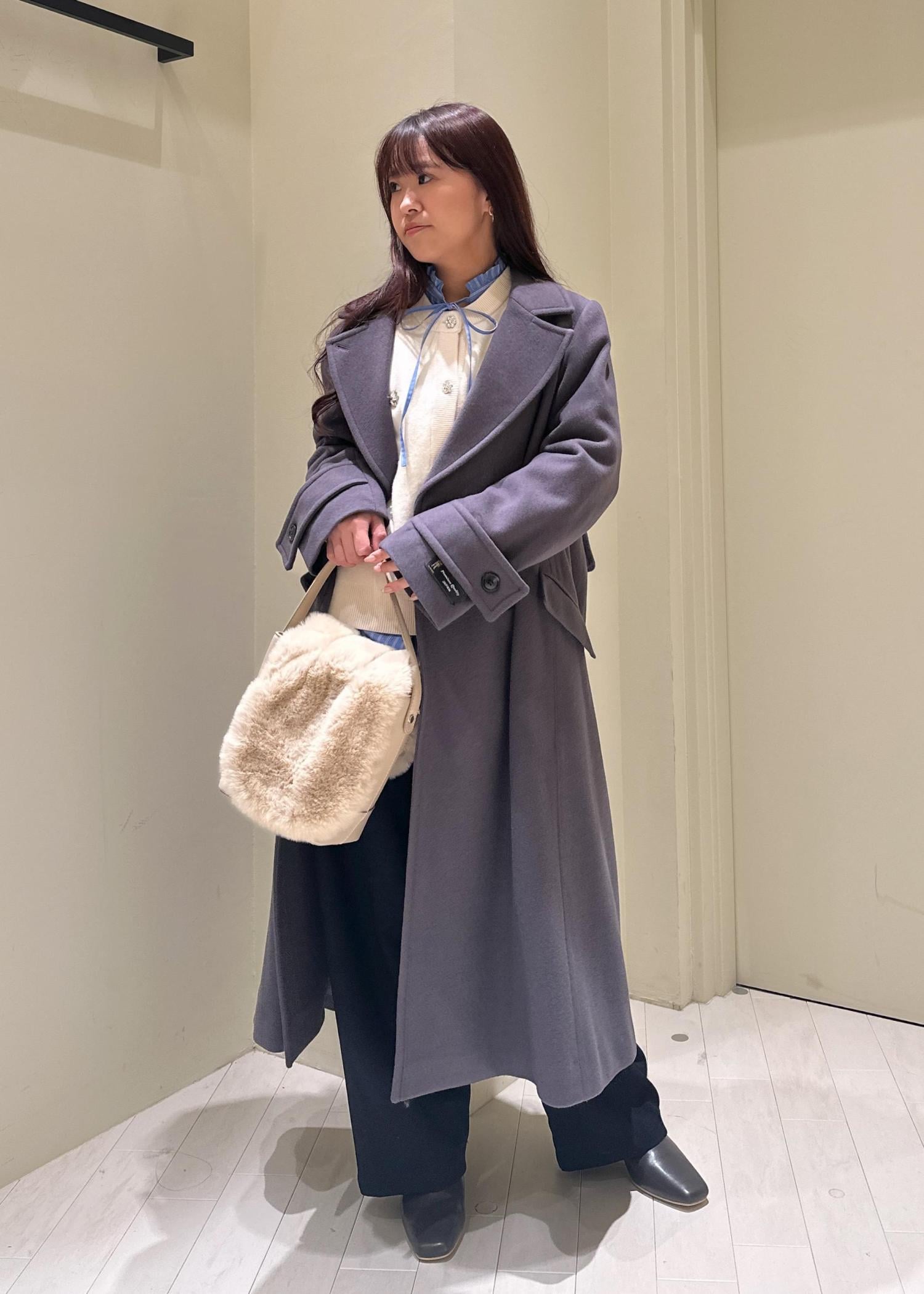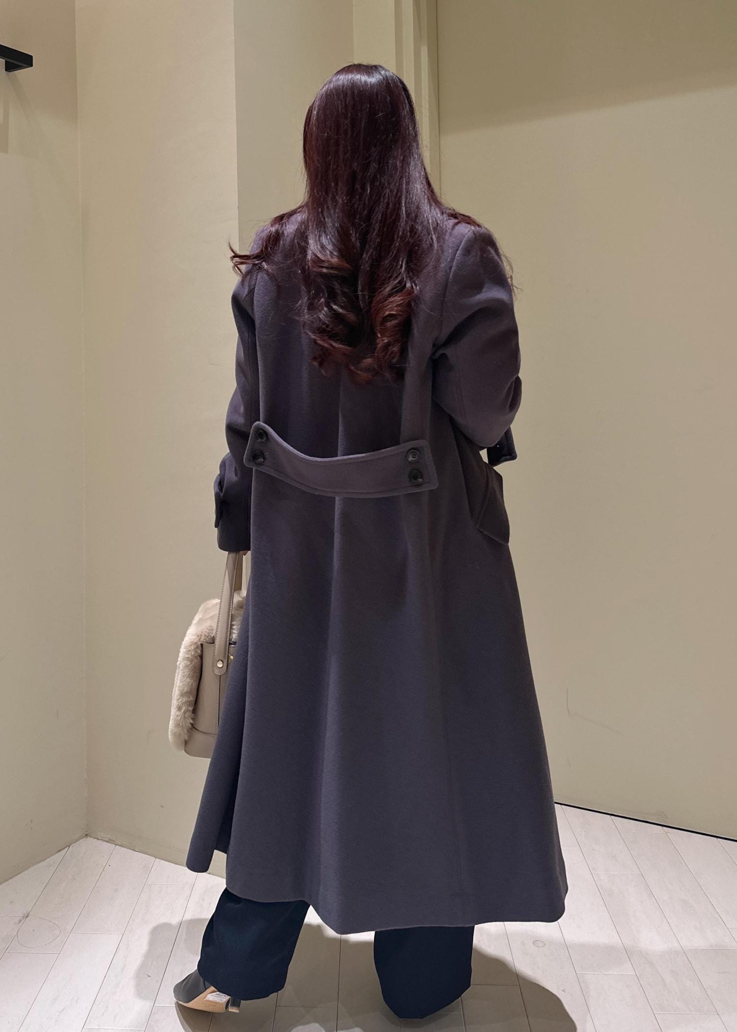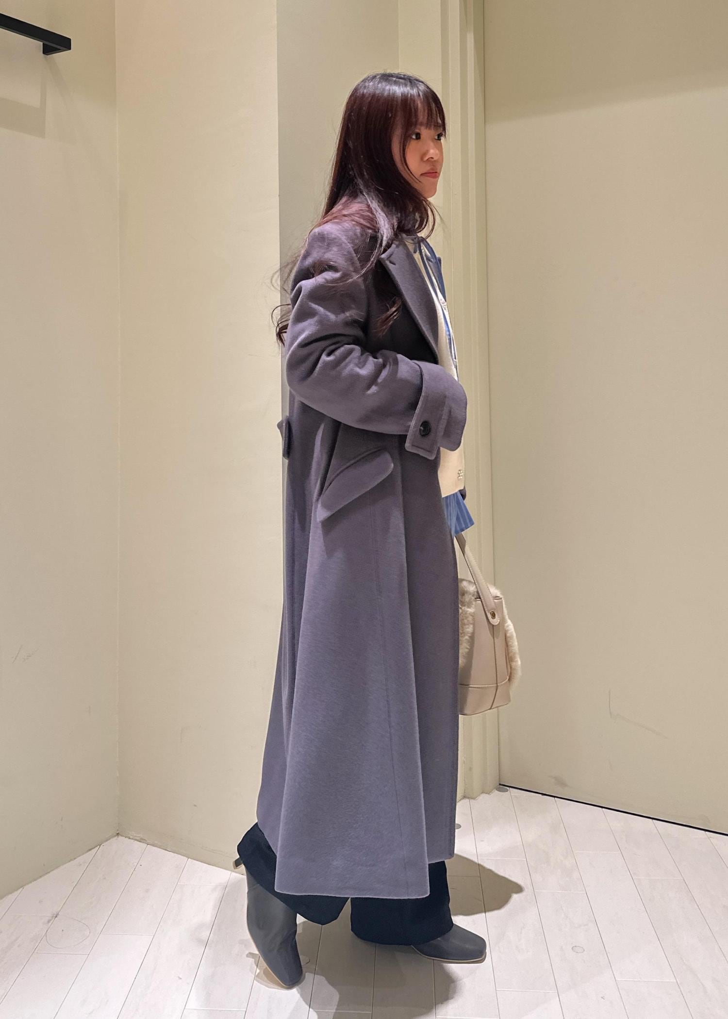 ダブル仕様になっているので横に広がるタイプの形です。テーラードの形なので、ベーシックな形なのとお顔周りがすっきり見えます。07カラーはグレー表記になっていますが、パープル系のカラーに近いと感じました。 -