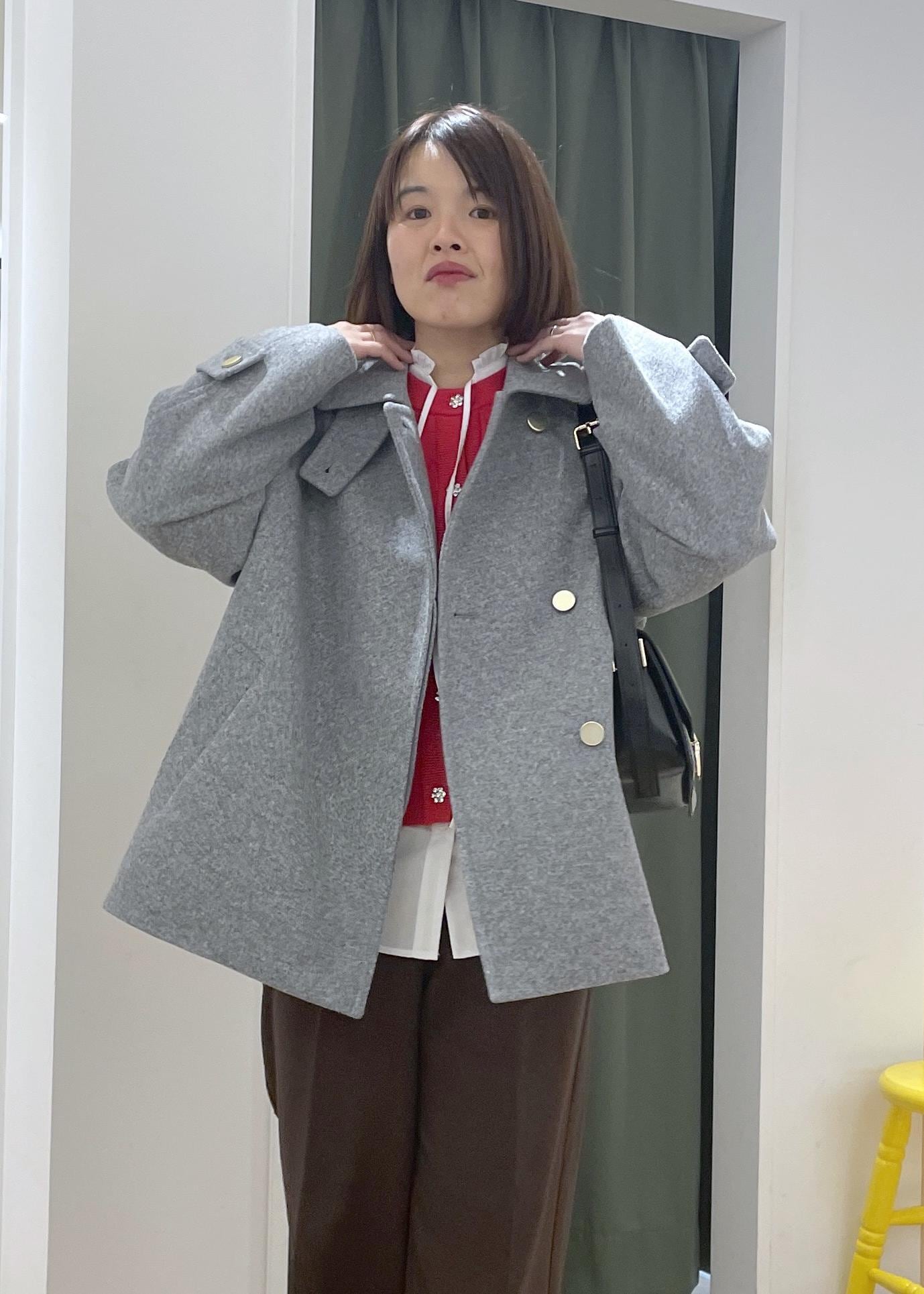 ROPÉ PICNICジャージーメルトンシリーズ 金ボタンミドル丈コート/リンクコーデライトグレー / F¥10,989レビュー柔らかく軽い羽織り心地で、とても着やすいアウターです。ゆったりしたサイズ感なので、厚手のニットの上からでも羽織れます。また寒さが厳しい時期はインナーダウンを仕込んで着用するのもおすすめです。着丈はヒップが隠れるくらいの長さで、パンツにもスカートにも合わせやすいです。