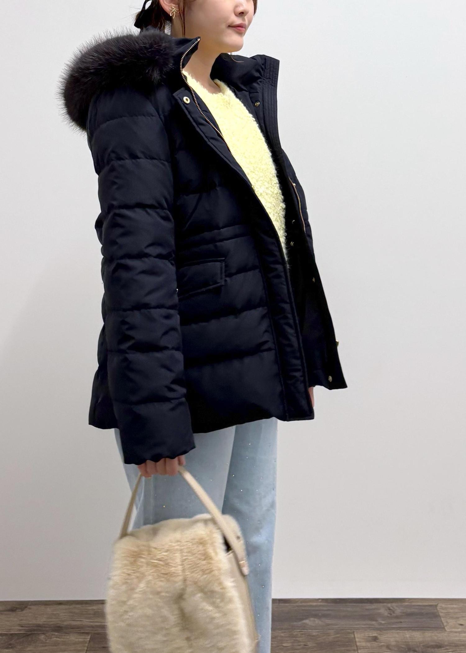 ROPÉ PICNIC【GREEN DOWN/グリーンダウン】ファー付きダウンミドル丈コート/リンクコーデネイビー / S¥18,700レビューミドル丈のダウンコートです!