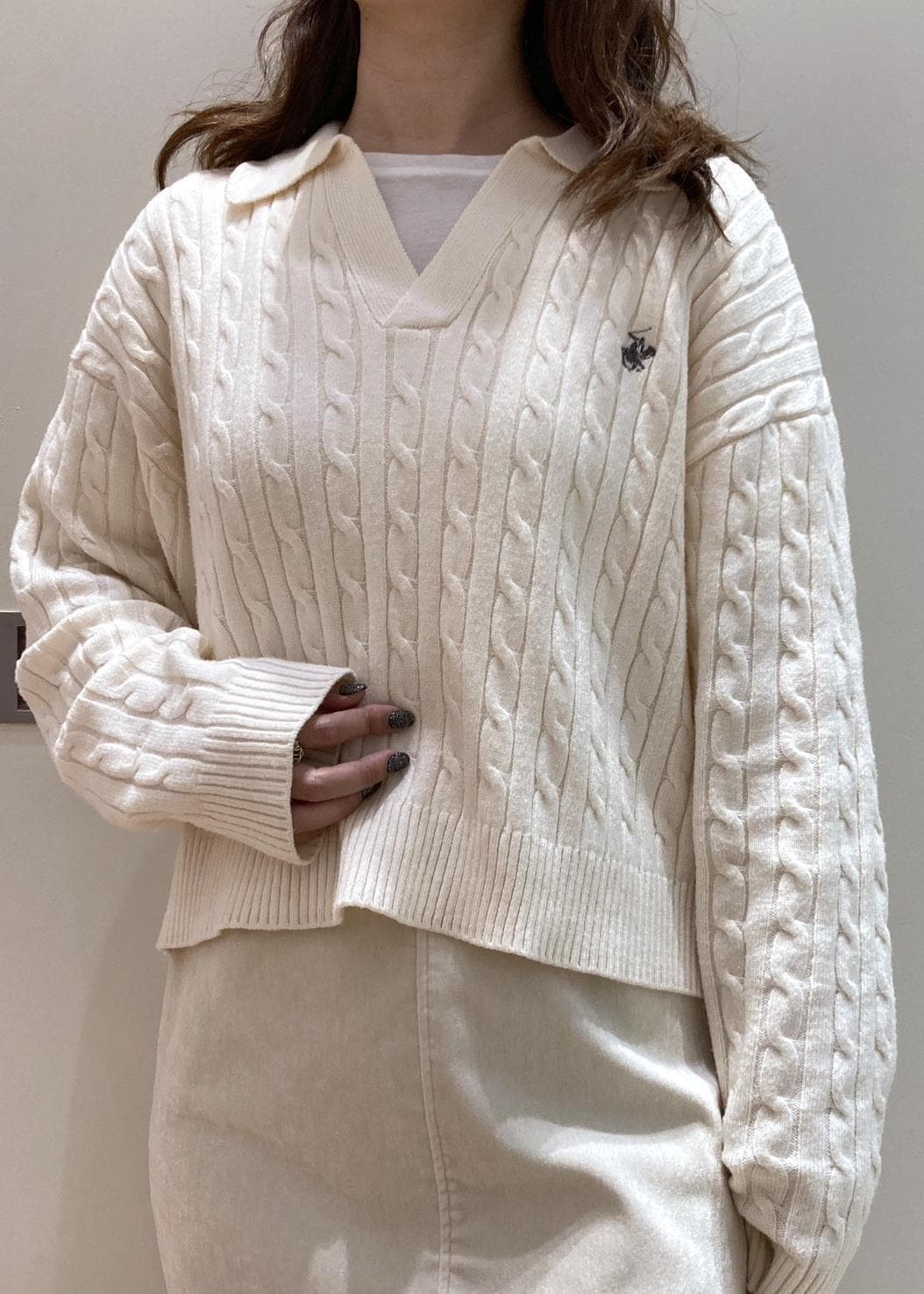 NEW!ROPÉ PICNIC【BEVERLYHILLS POLO CLUB・新色追加】ケーブル編みクロップドスキッパーニットキナリ / F¥5,995レビューもちもちとした生地で着心地◎