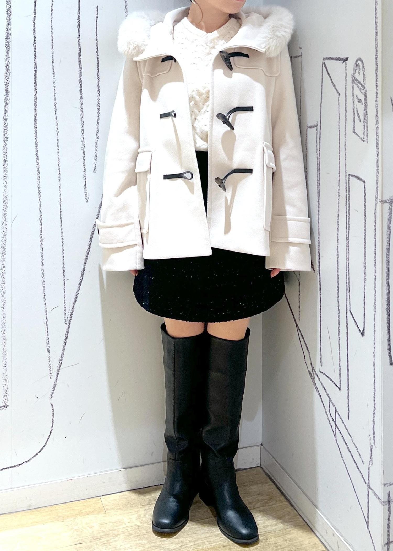 大人も楽しめるミニスカートにホワイトを合わせたスタイルで、冬のお出かけも楽しめます♪冬の白って温かい印象でいいですねぇ。