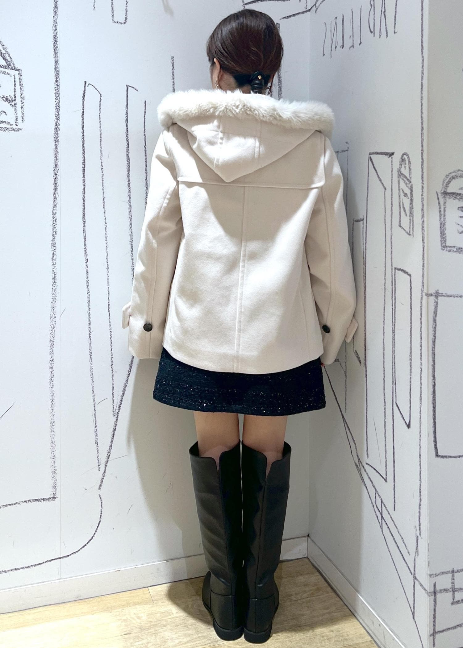 ジャージーメルトンシリーズ ファー付きショートダッフルコート/リンクコーデ