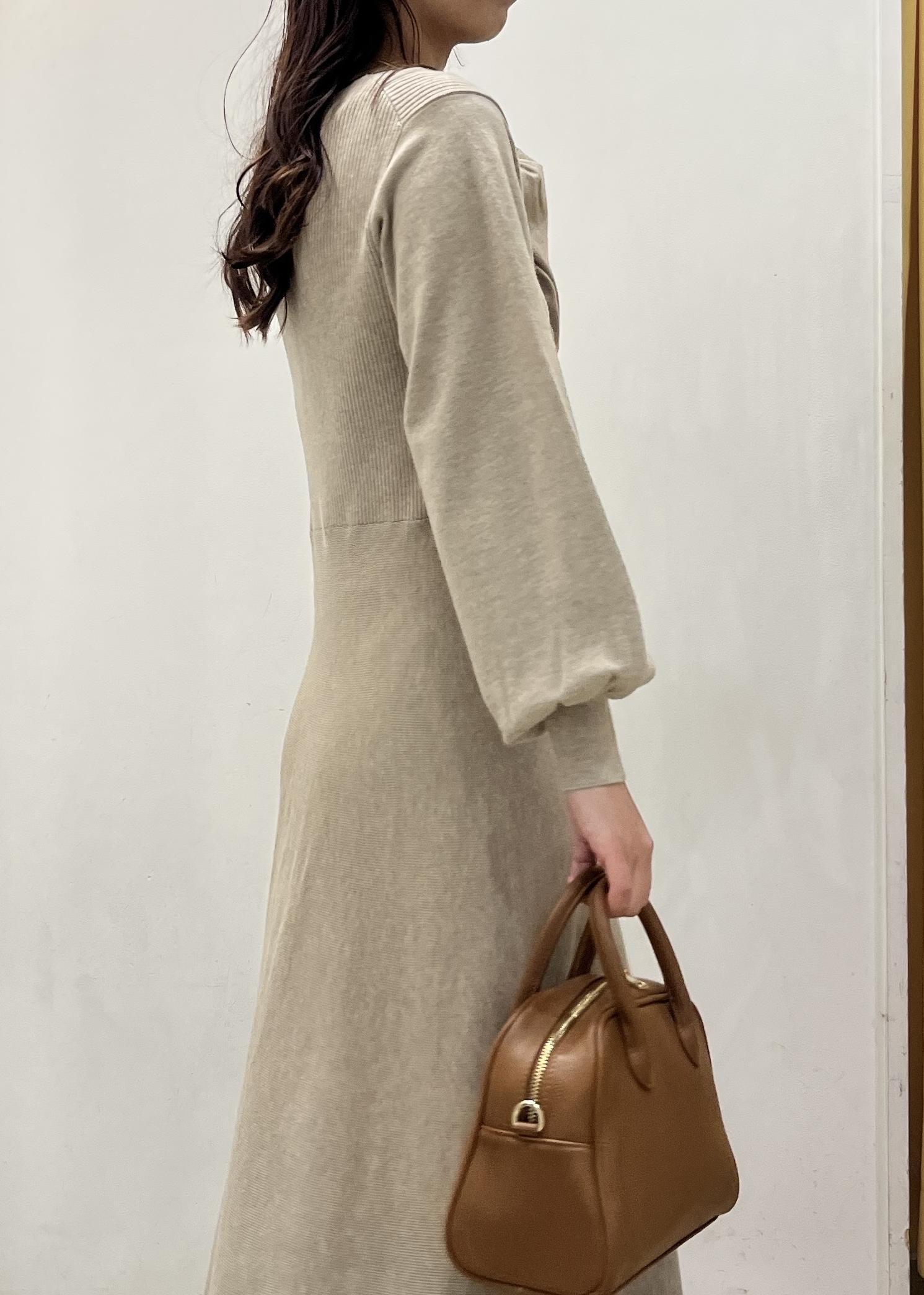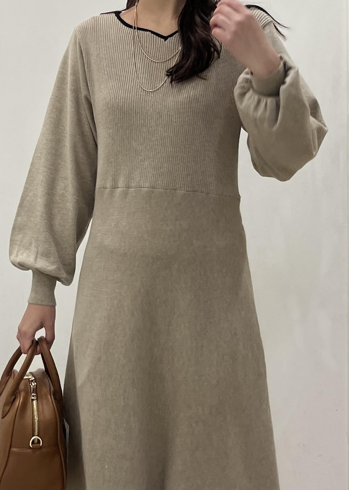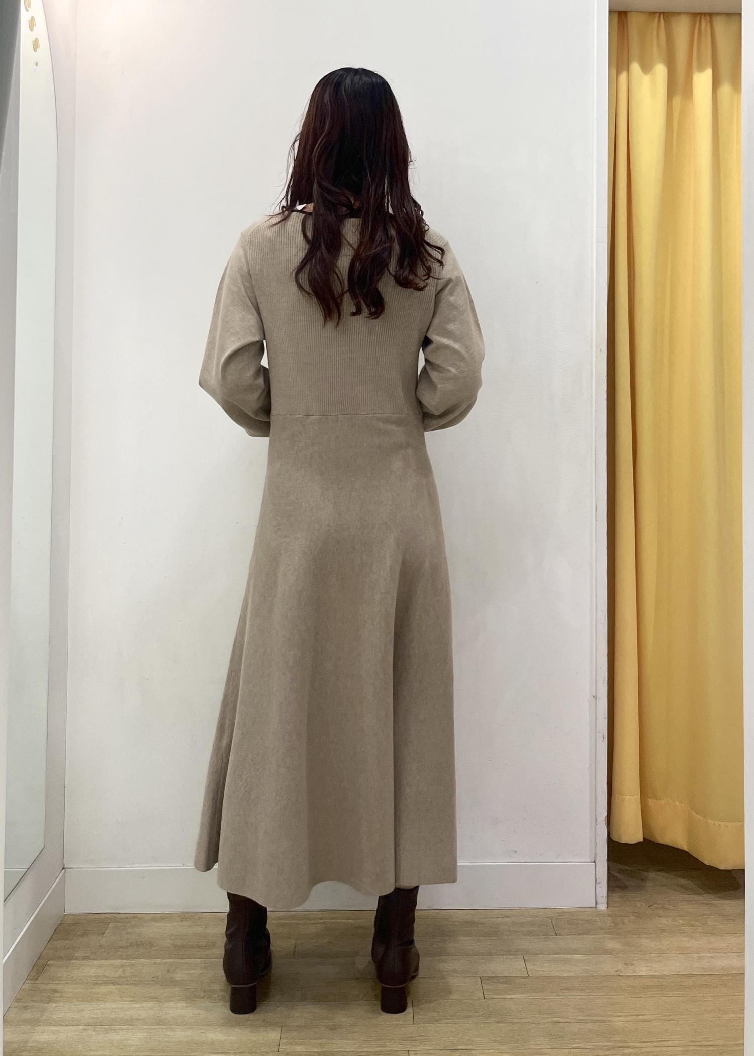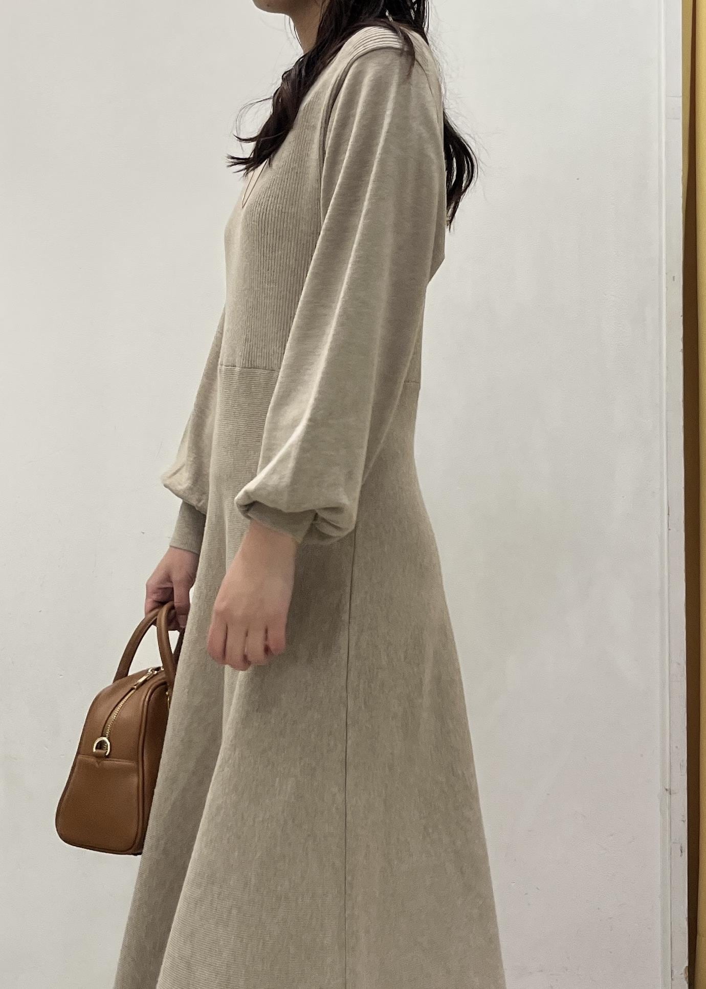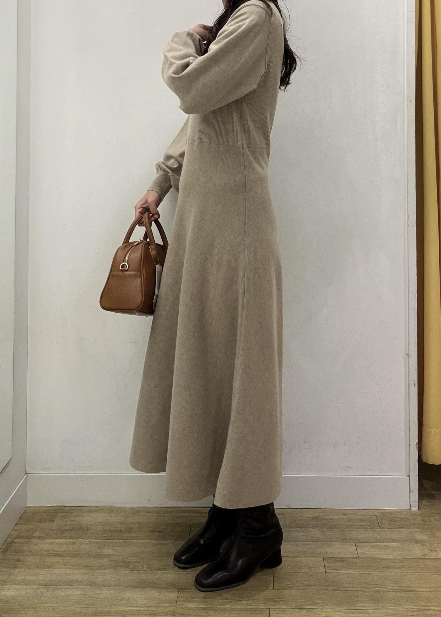 ROPÉ PICNICハートネックニットワンピースベージュ / M¥7,491レビュー丈感が長めで安心感があり、伸縮性があるので着やすいです。お袖はボリュームがあるので腕周りはゆったり着れるシルエットになっています。