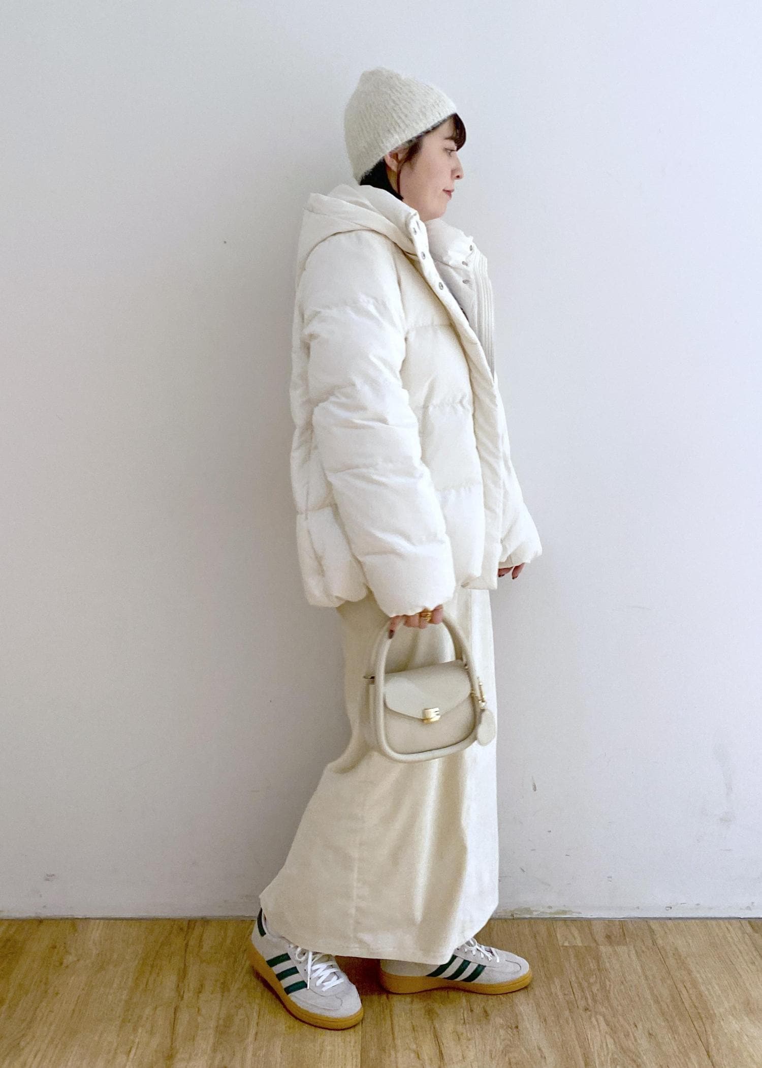 ニット帽とスニーカーでカジュアルダウンしてます◎