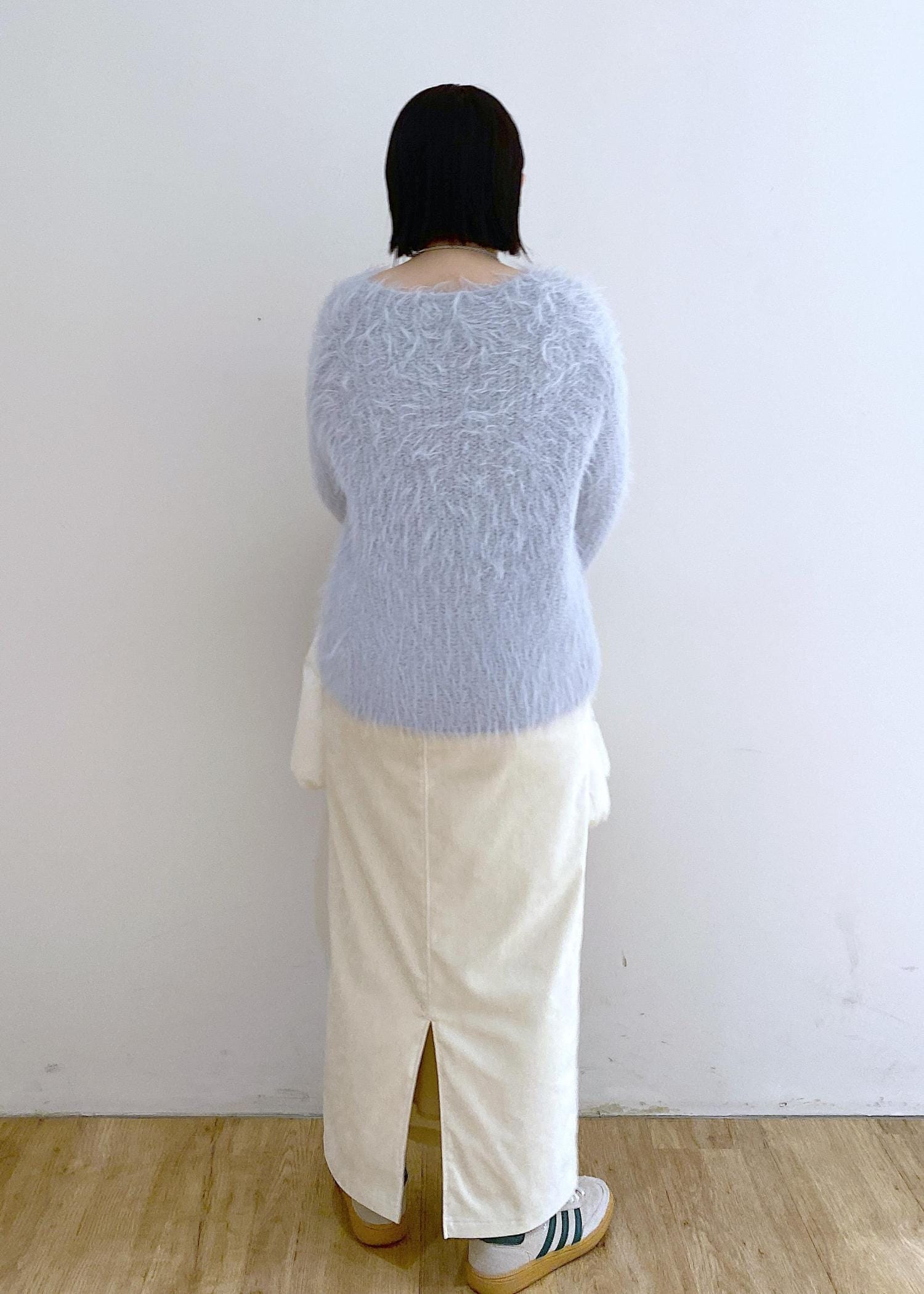 ROPÉ PICNICフェザーVネックニットサックス / F¥4,994レビュー首元がスッキリ開くVネックデザインなので骨ストさん◎毛足が長めで抜け感があります。軽くて暖かい、チクチク感ない素材です☺︎