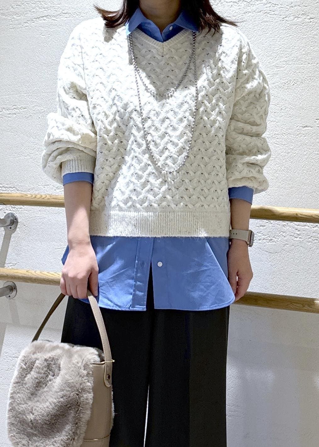 スパンコールが華やかで、今の時期にピッタリなニットです。