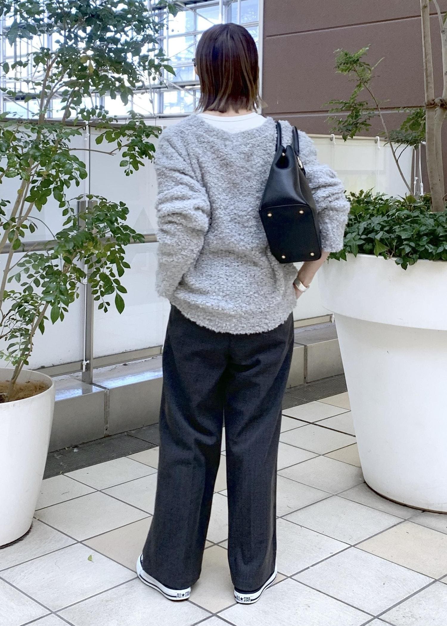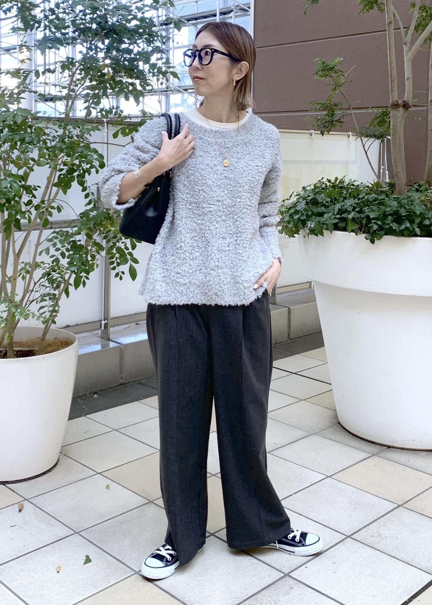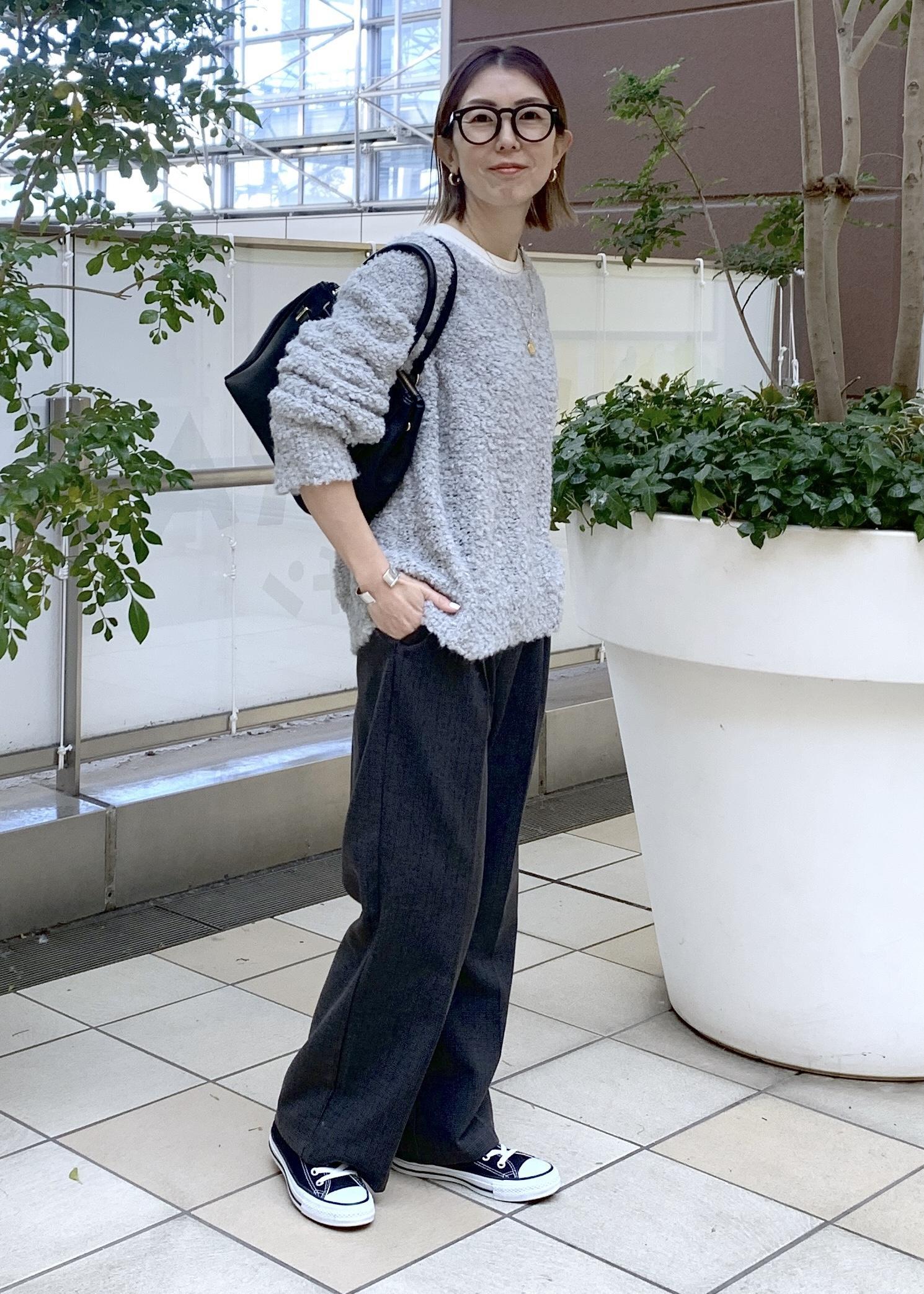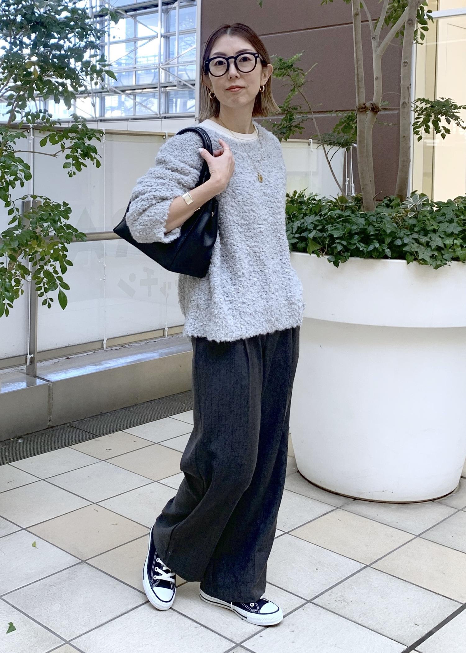 シンプルにグレーでコーディネートして大人も着やすいシンプルなカジュアルスタイリングに。