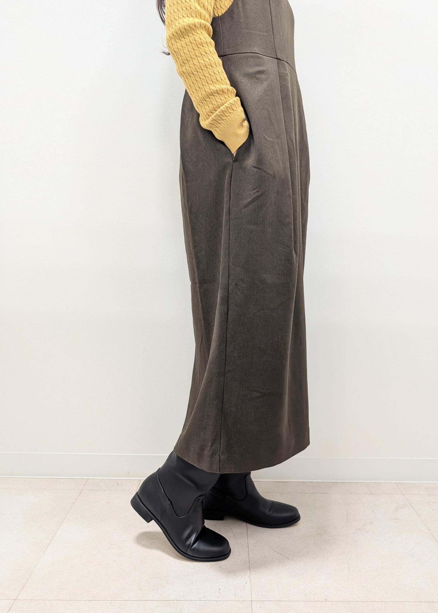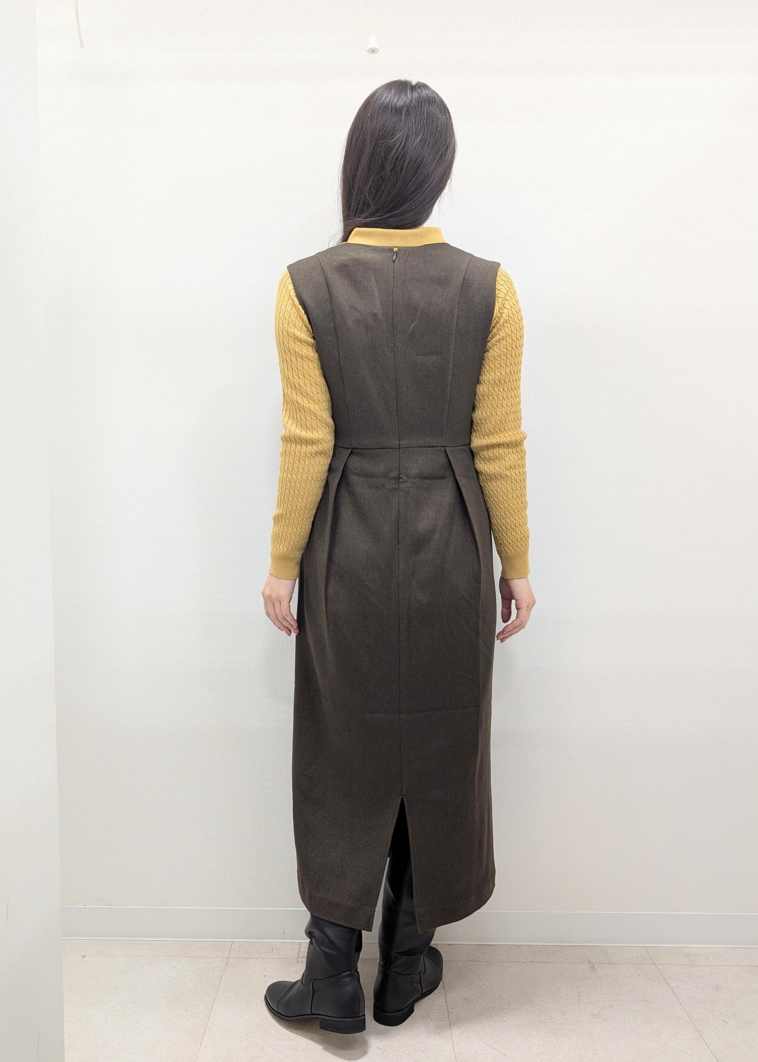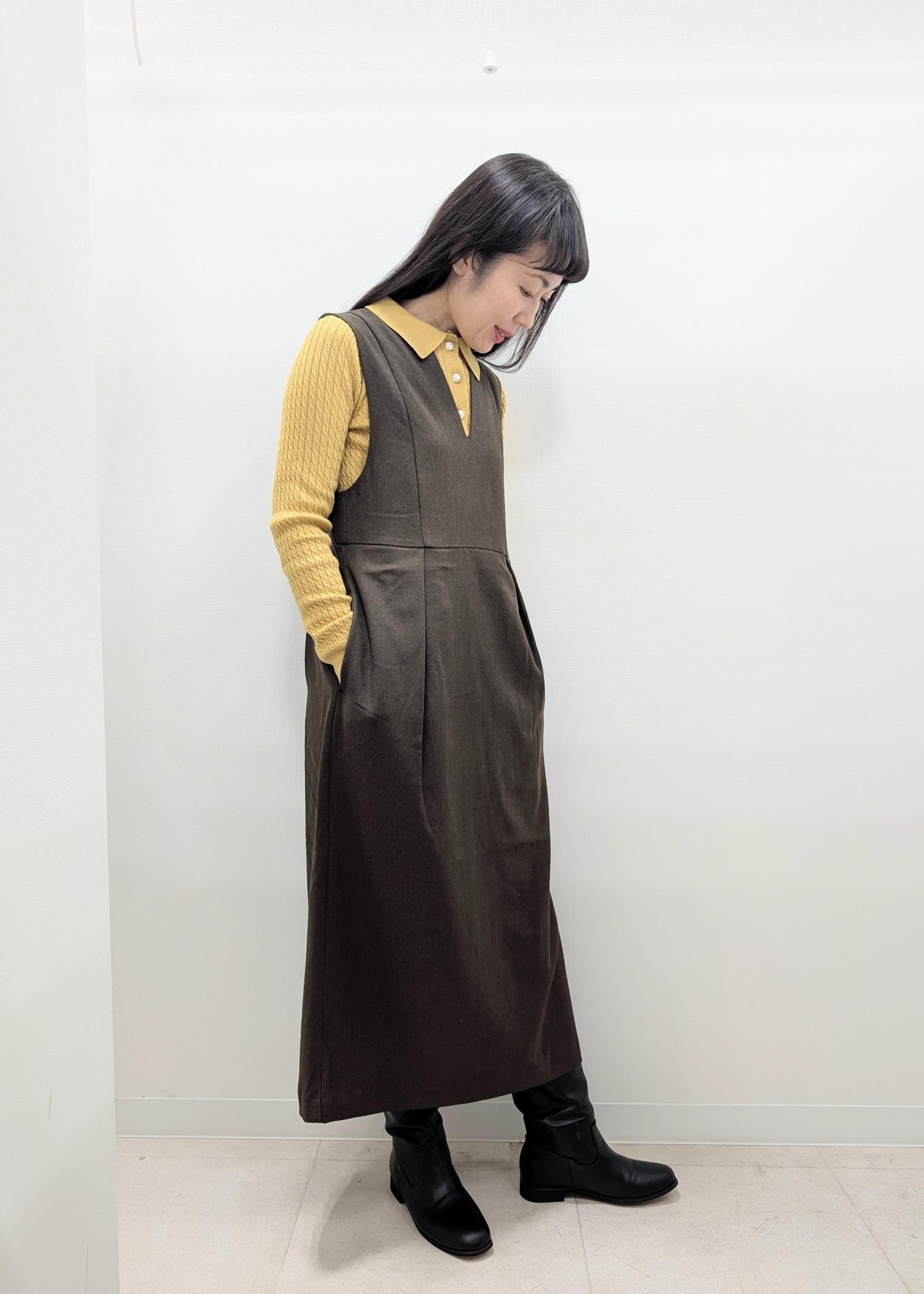 ROPÉ PICNICキーネックジャンパースカートダークブラウン / M¥6,996レビュータック入りでお腹周り、お尻周りのシルエットが出づらいです。着心地は楽ちんですがIラインシルエットなので着痩せも叶います!