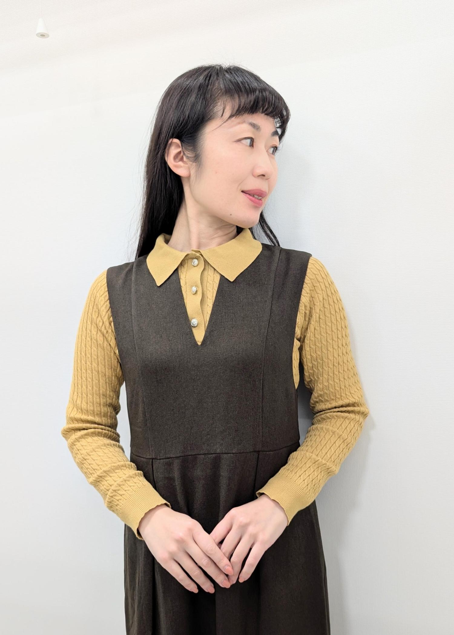 私は骨格ウェーブでデコルテが薄いのですが、こちらは襟やボタンがアクセントになり薄さも気にならないです(^^) -