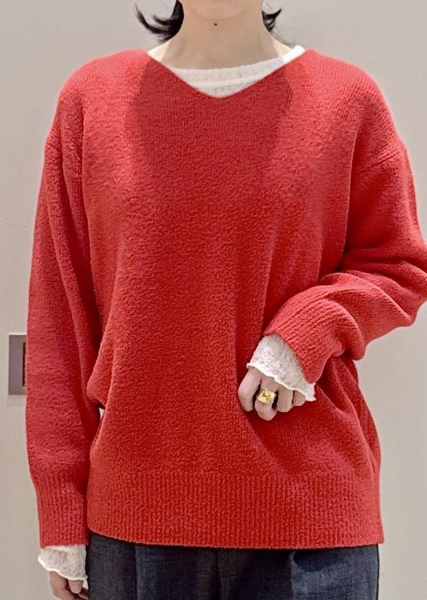 袖も身頃もゆったりとした着心地で、さらにVネックなのでシャツやシアートップスと重ねても合わせやすいです◎