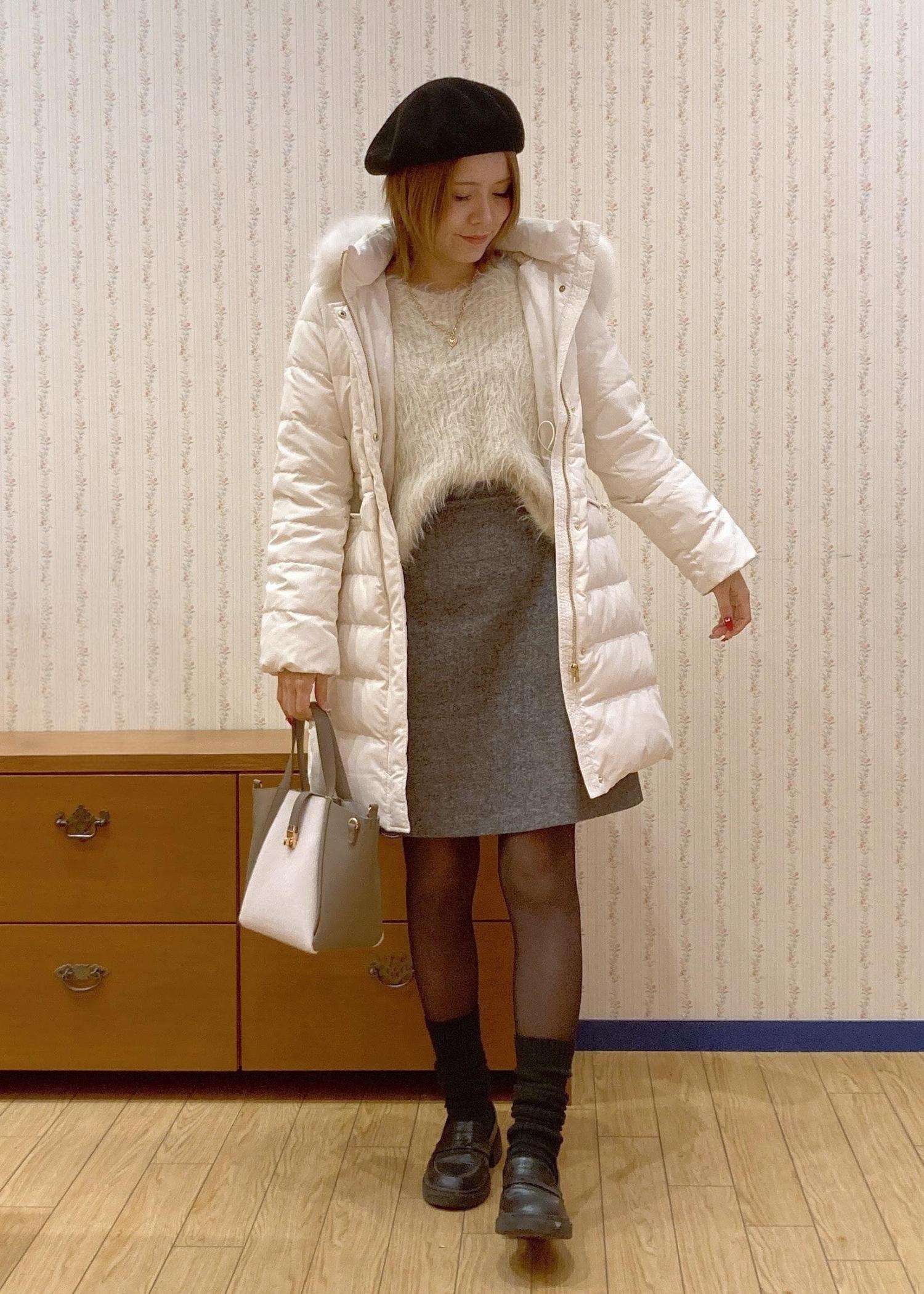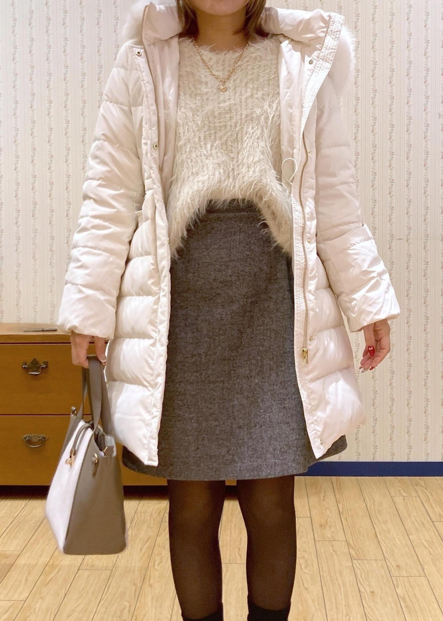 大人かわいい白ロングダウンコーデ