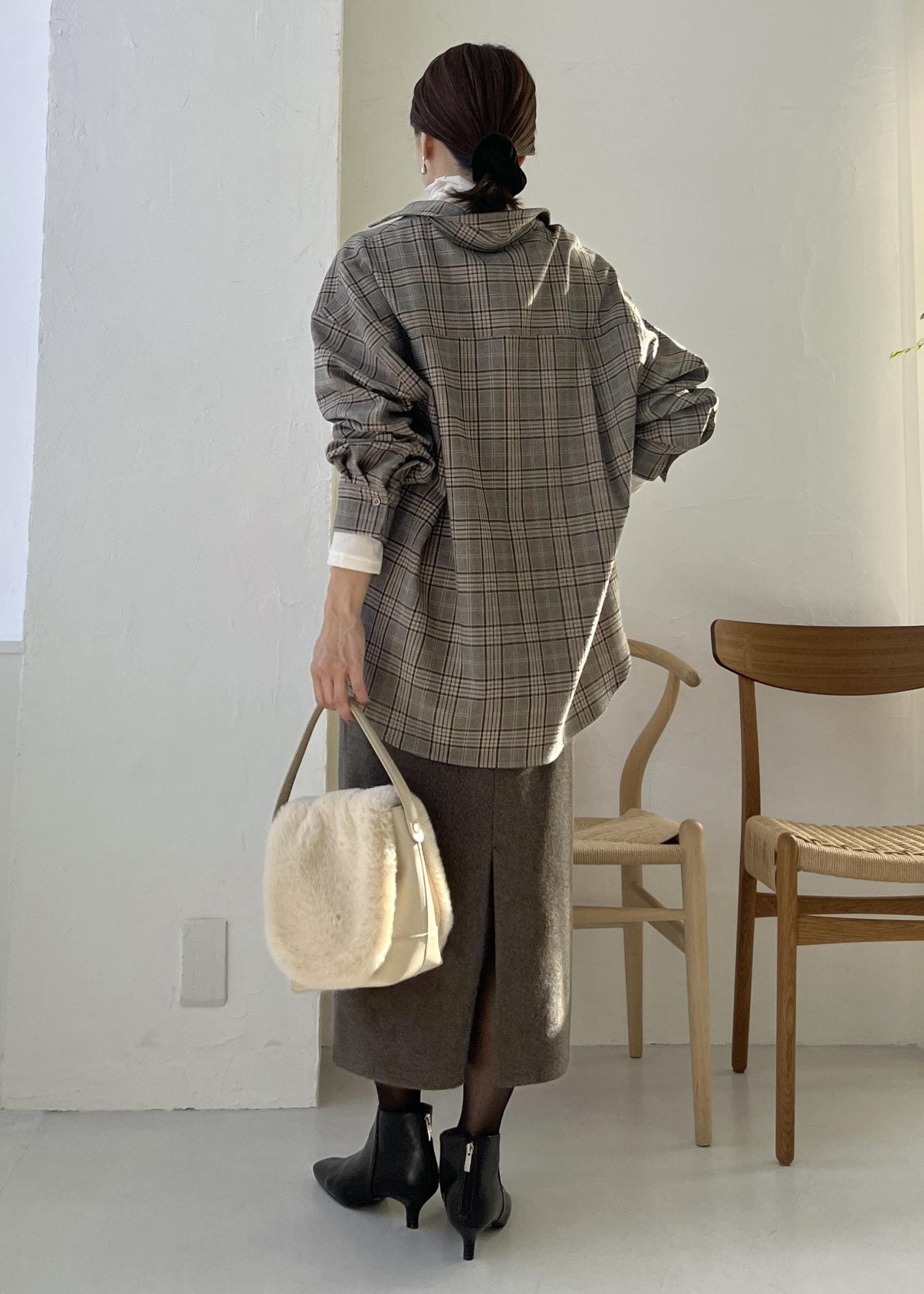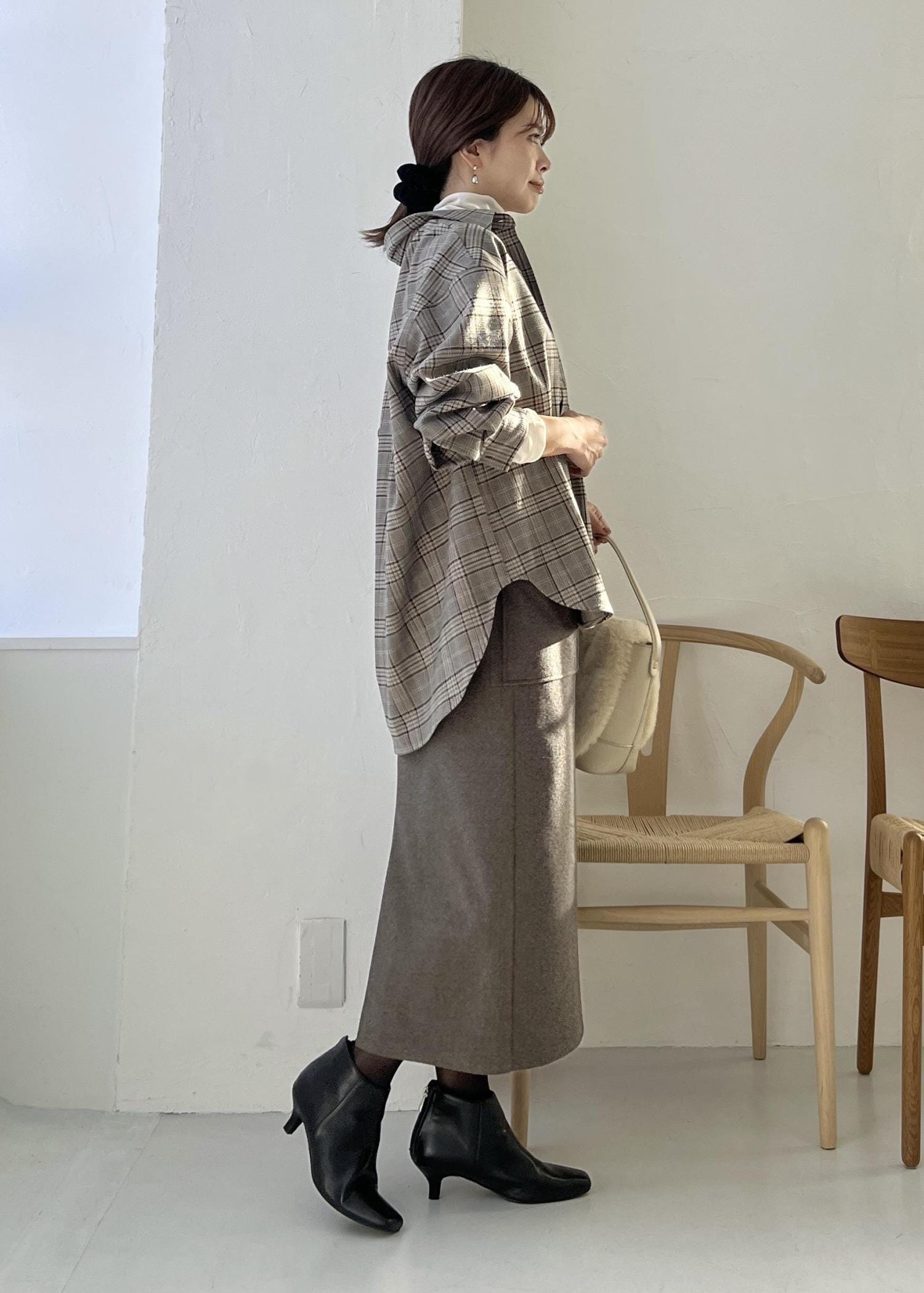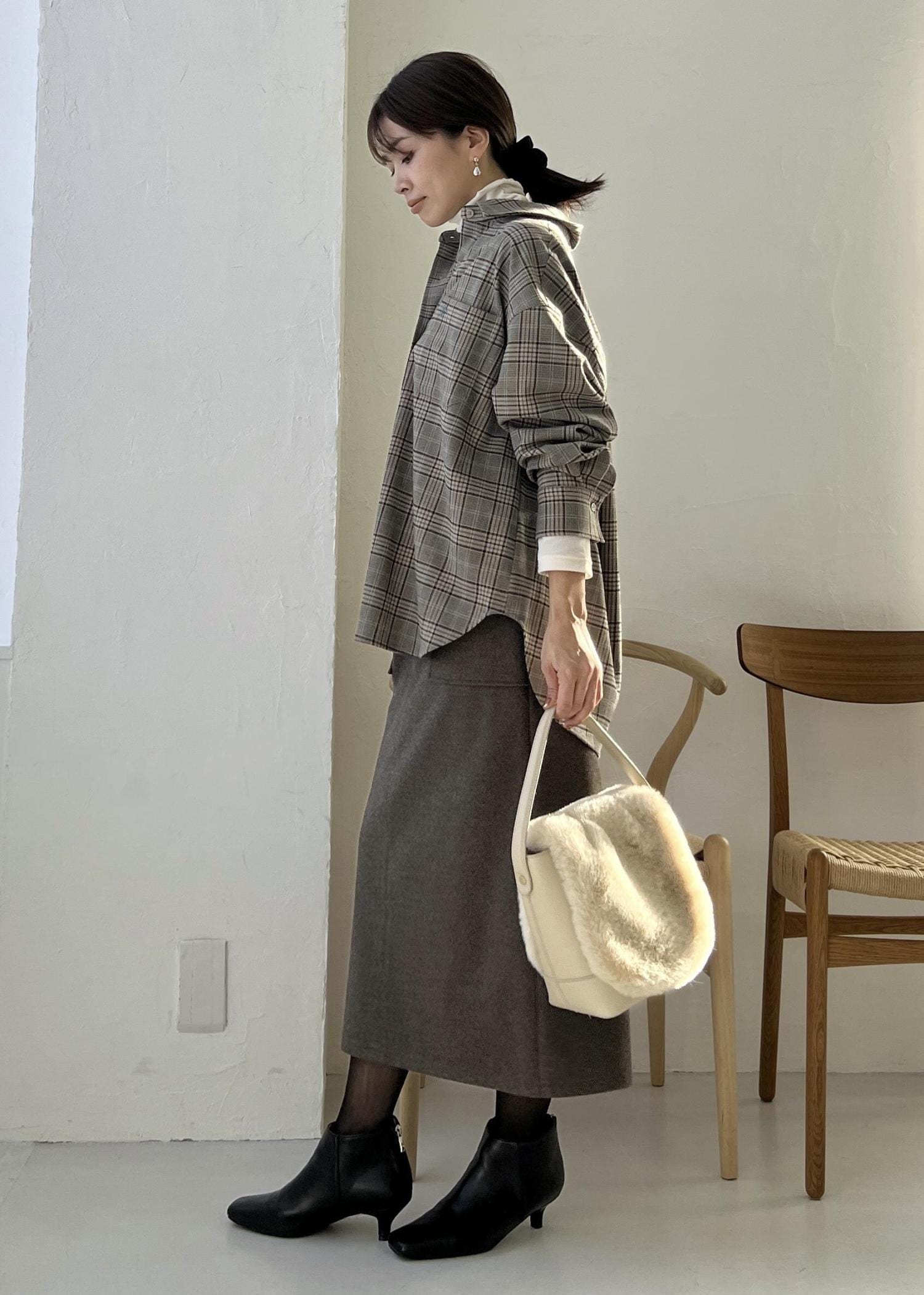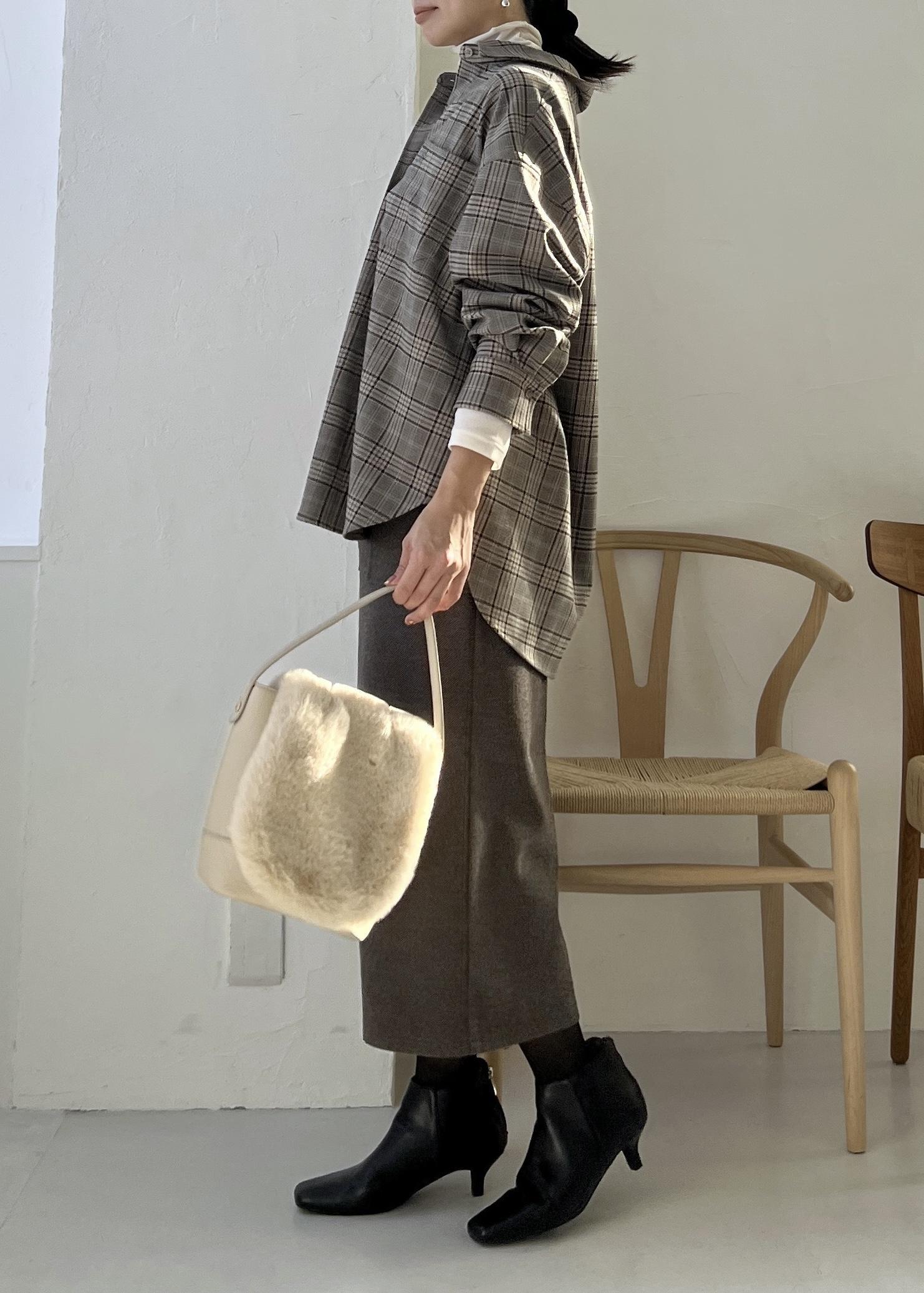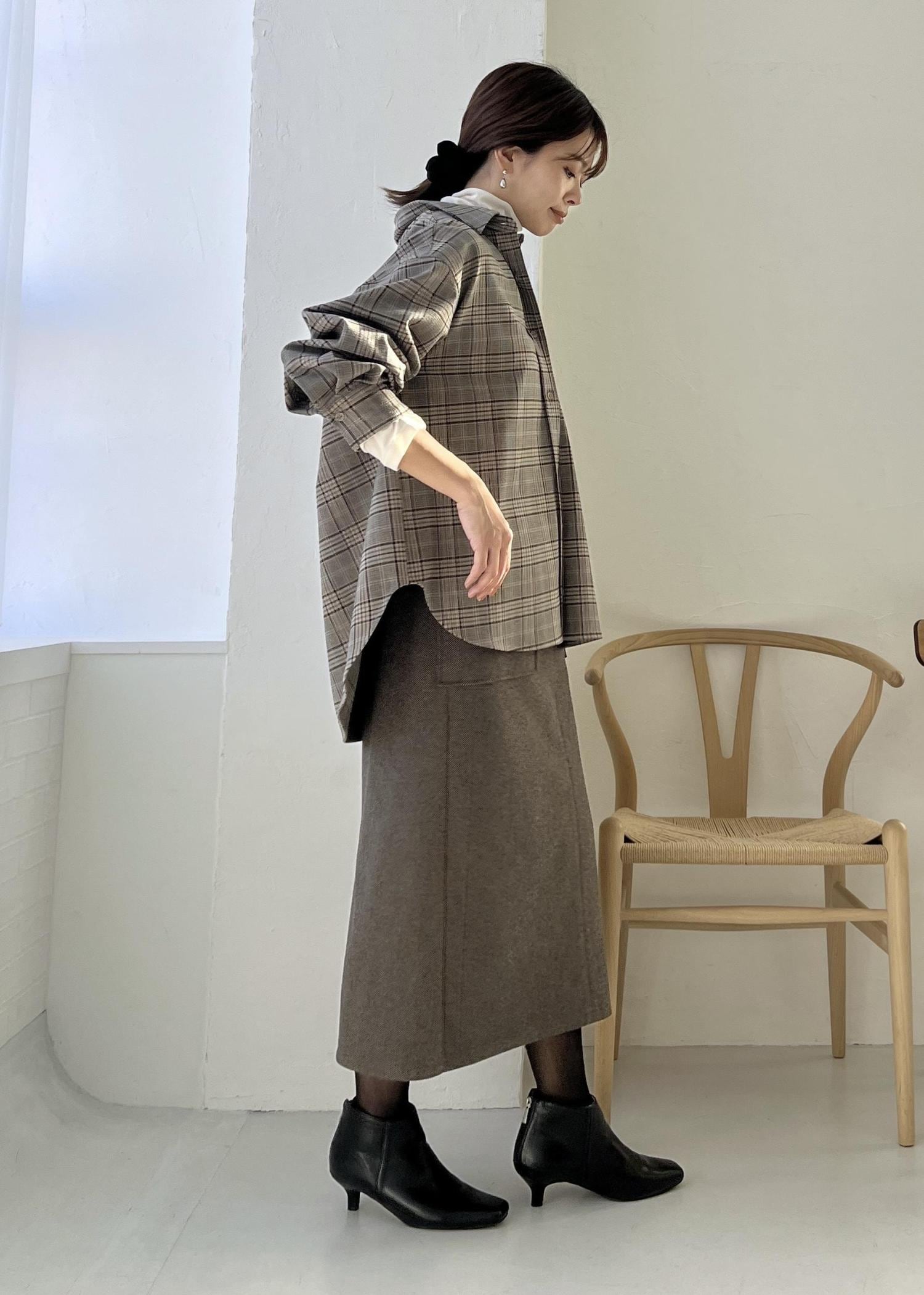 チェックシャツ×スカートの大人コーデ