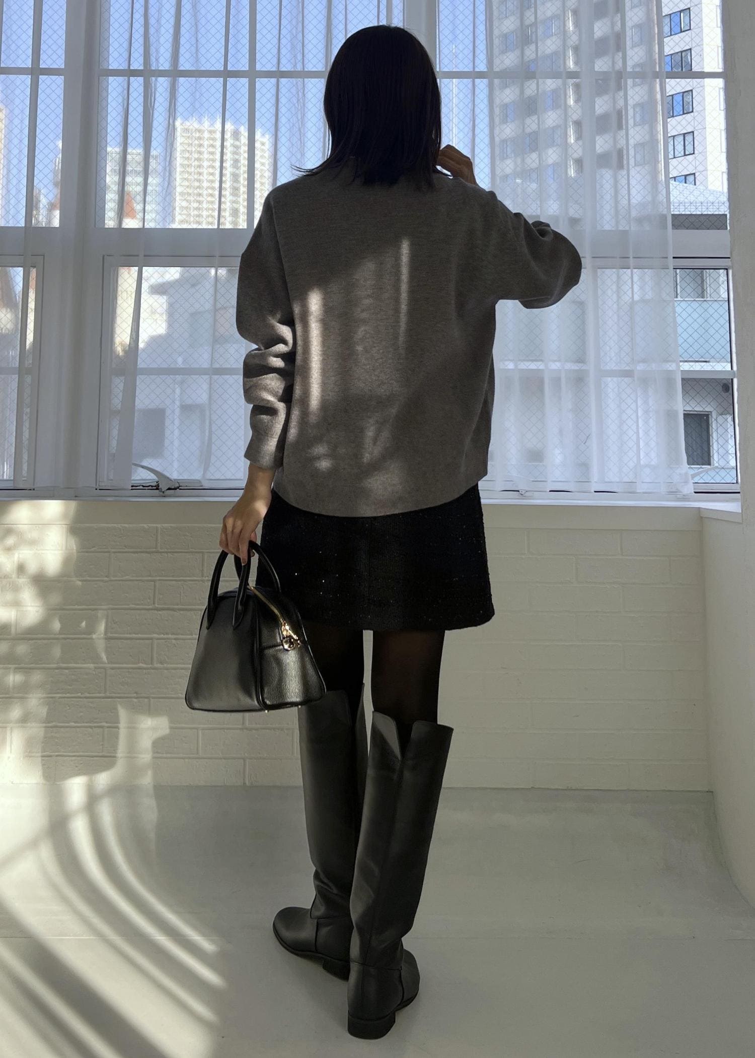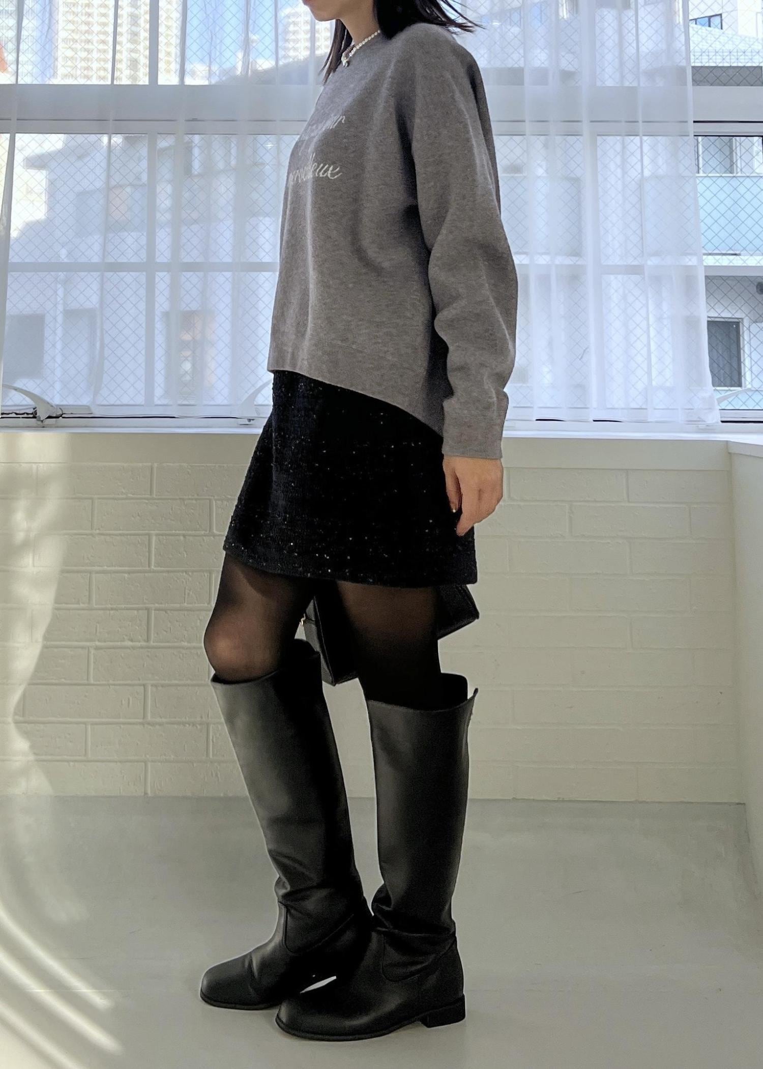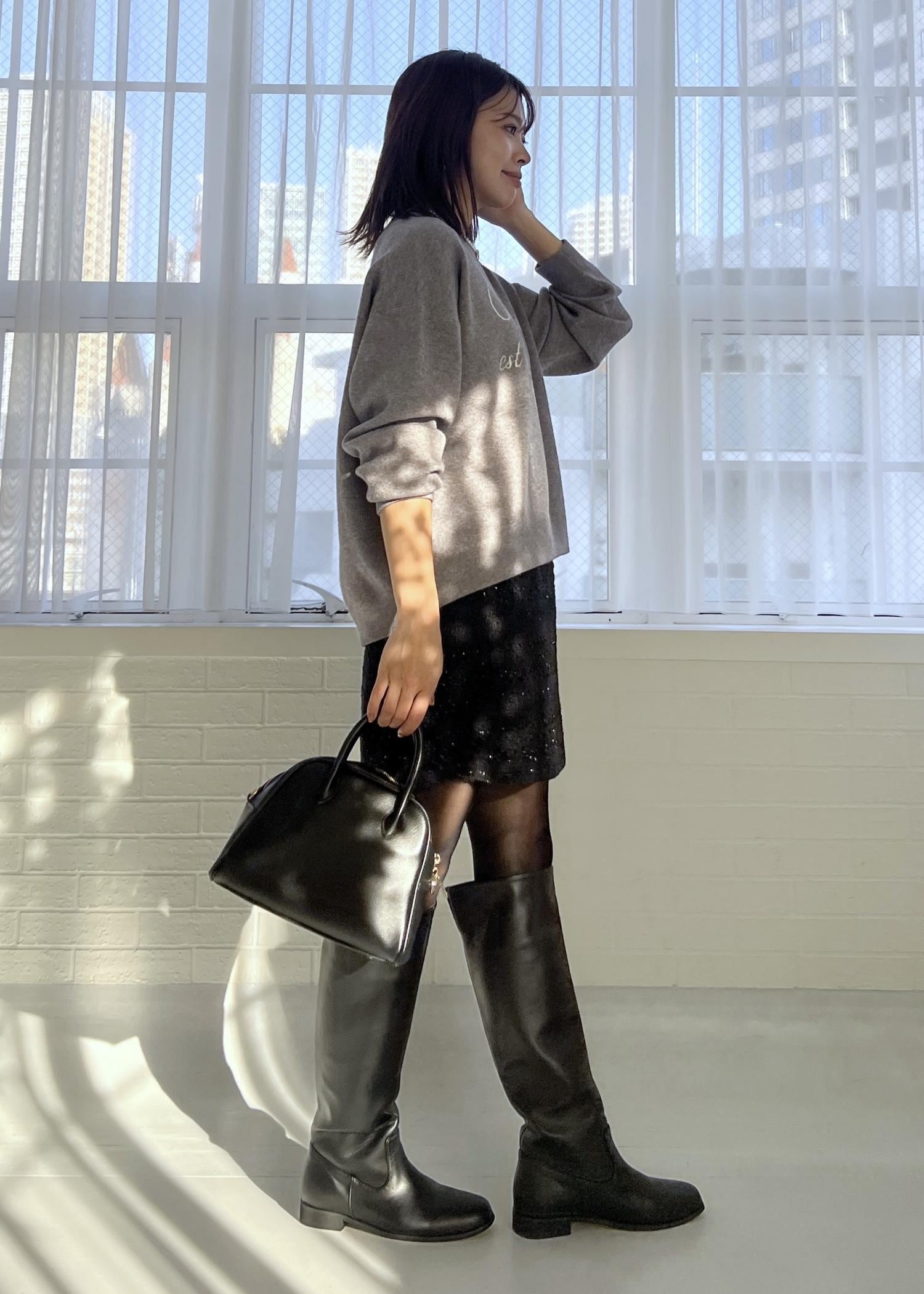 ロングブーツを合わせて大人カジュアルな着こなしにしました。
