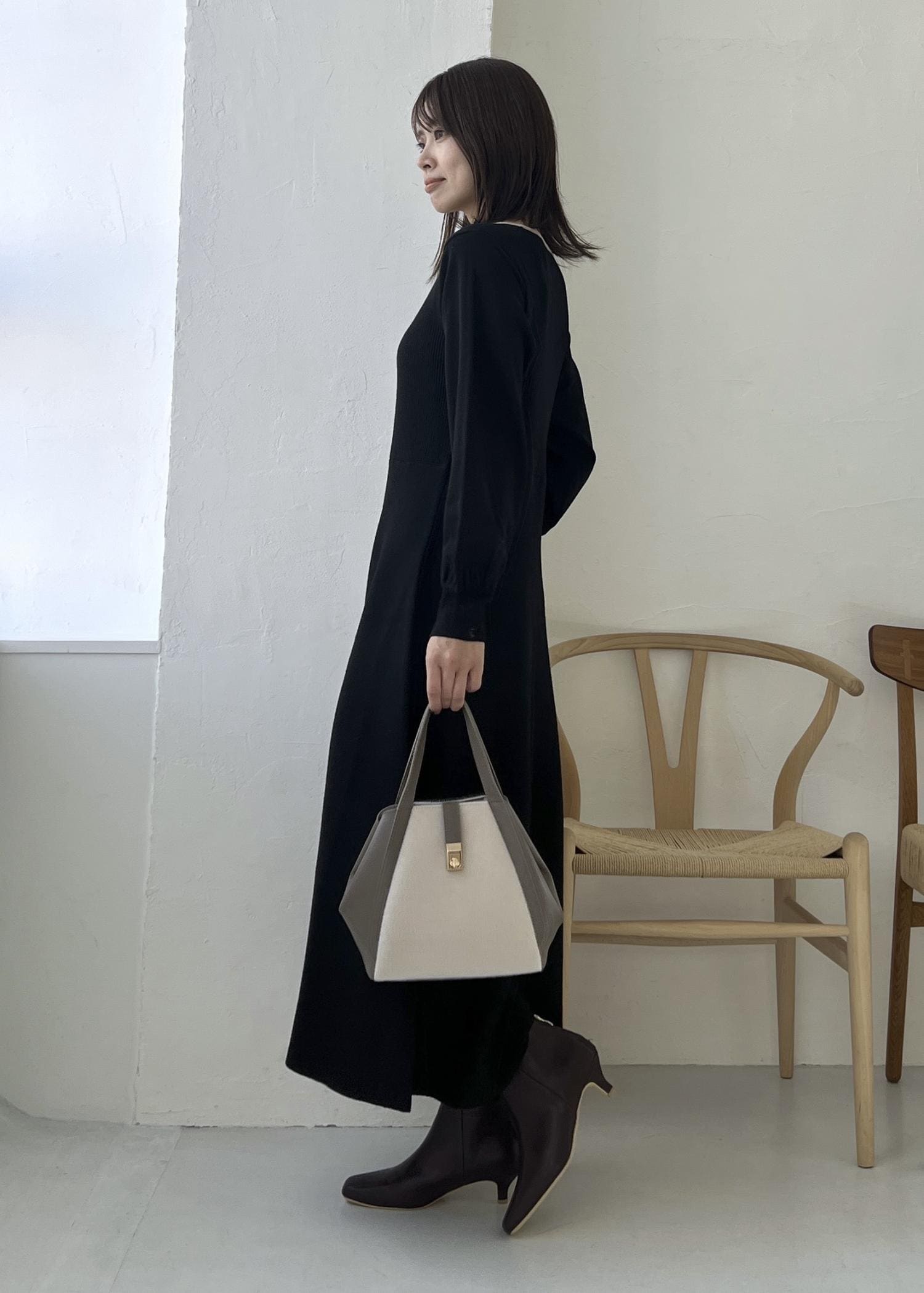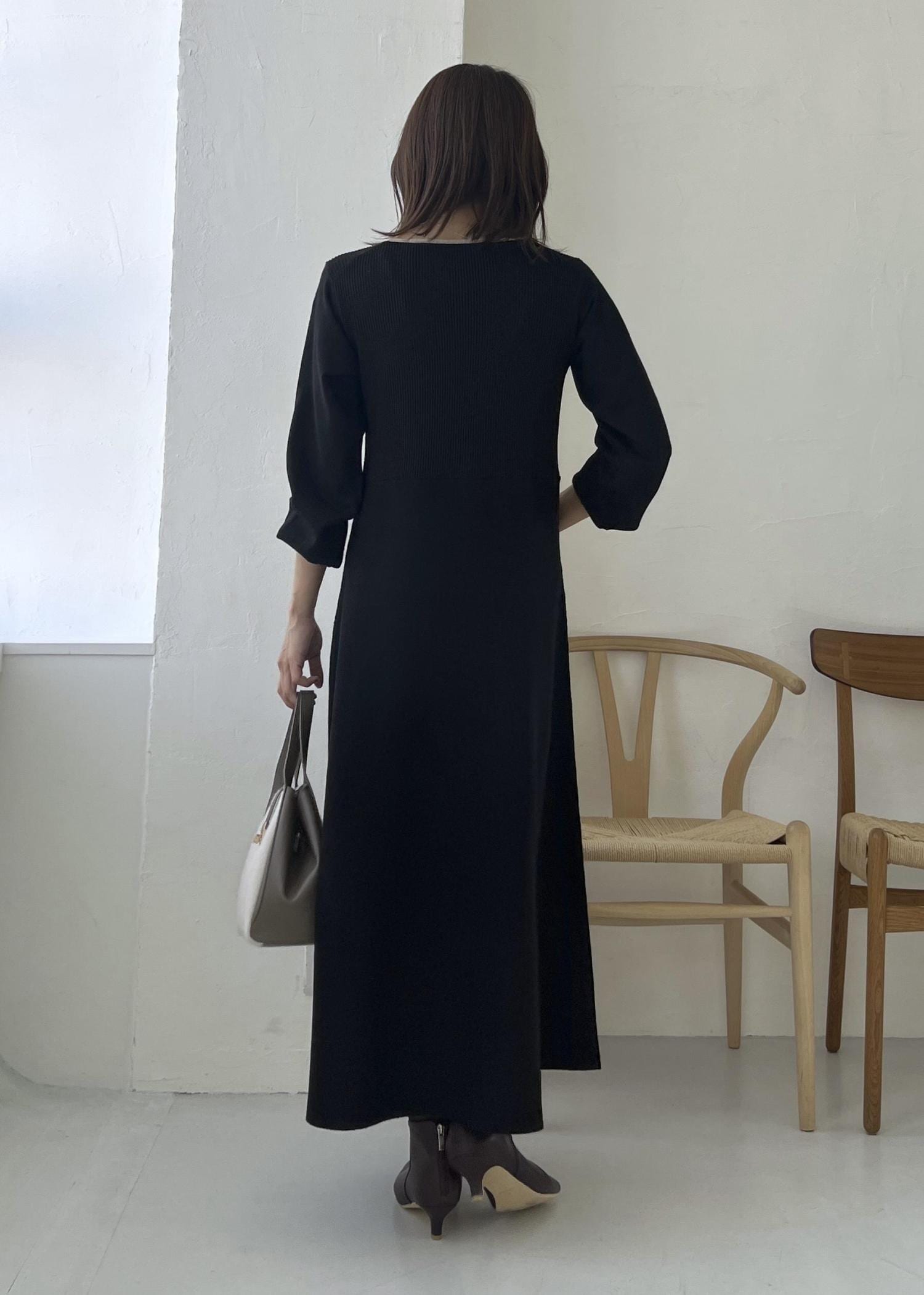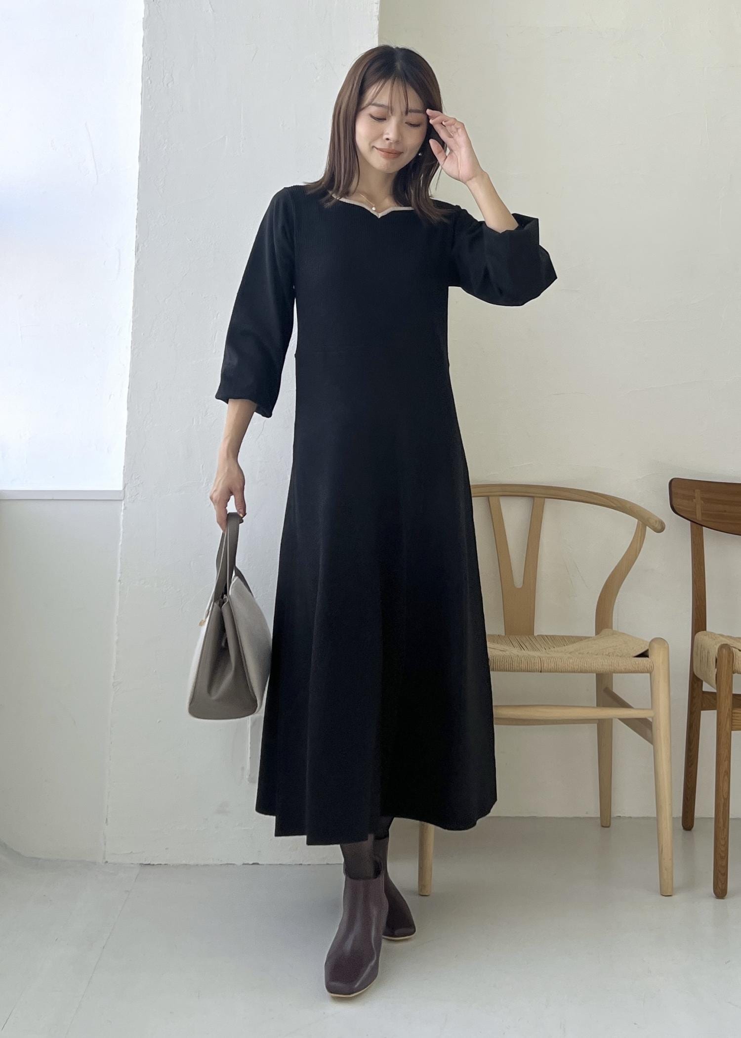 1枚でコーデが完成するニットワンピースで、大人の冬コーデに。