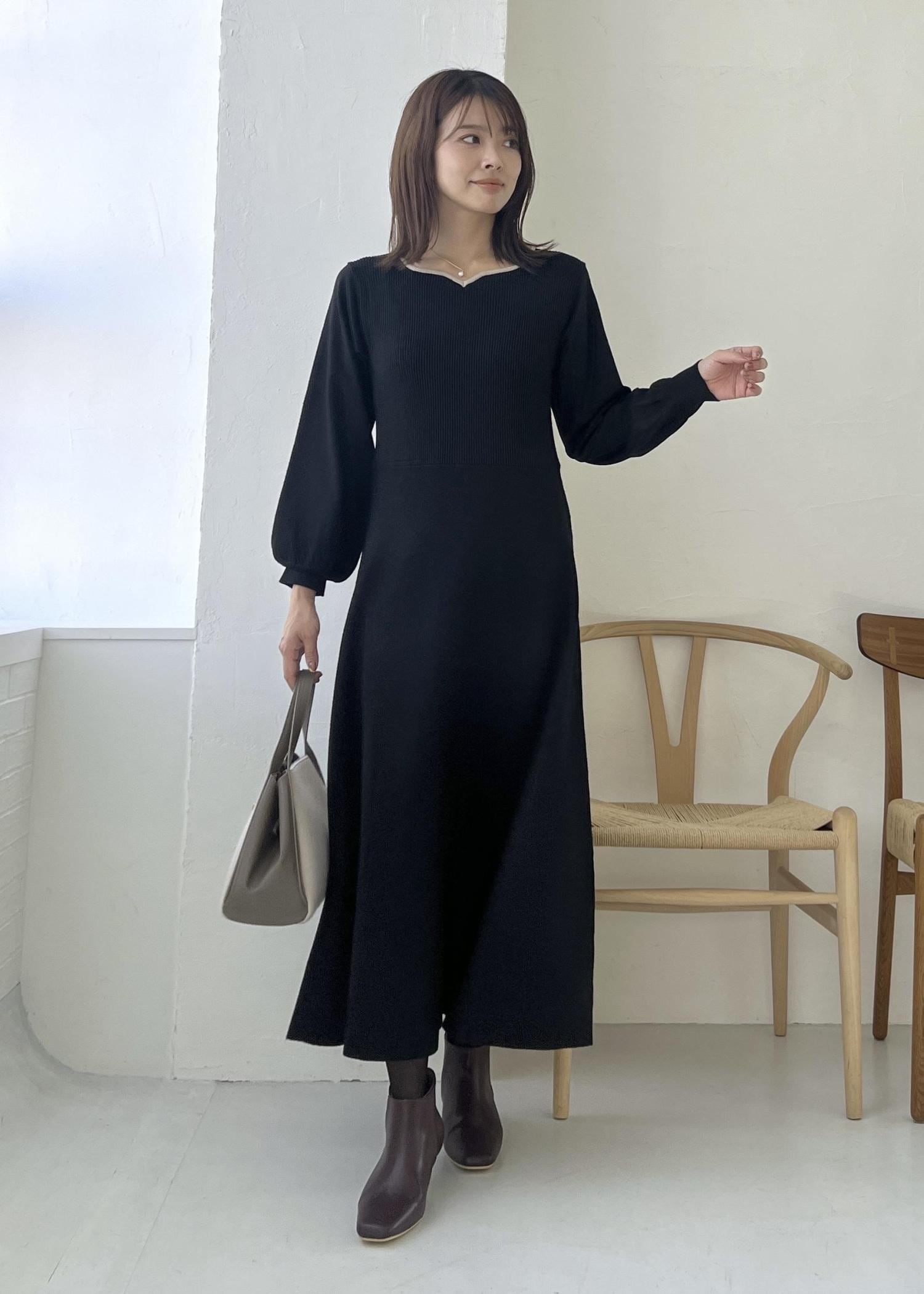 ROPÉ PICNICハートネックニットワンピースブラック / M¥7,491レビュー柔らかくしなやかなニット生地で、チクチク感なく着やすい素材感。