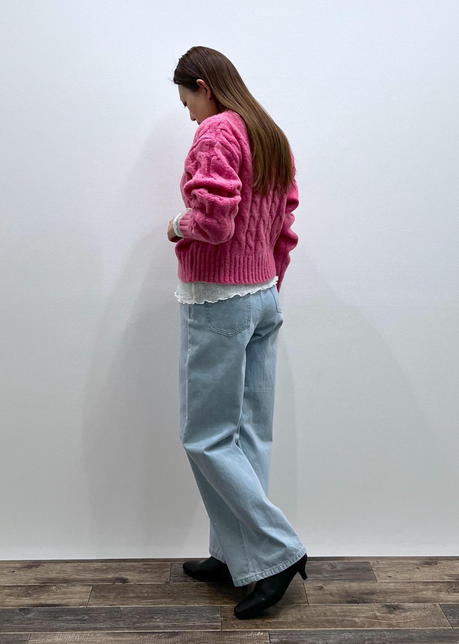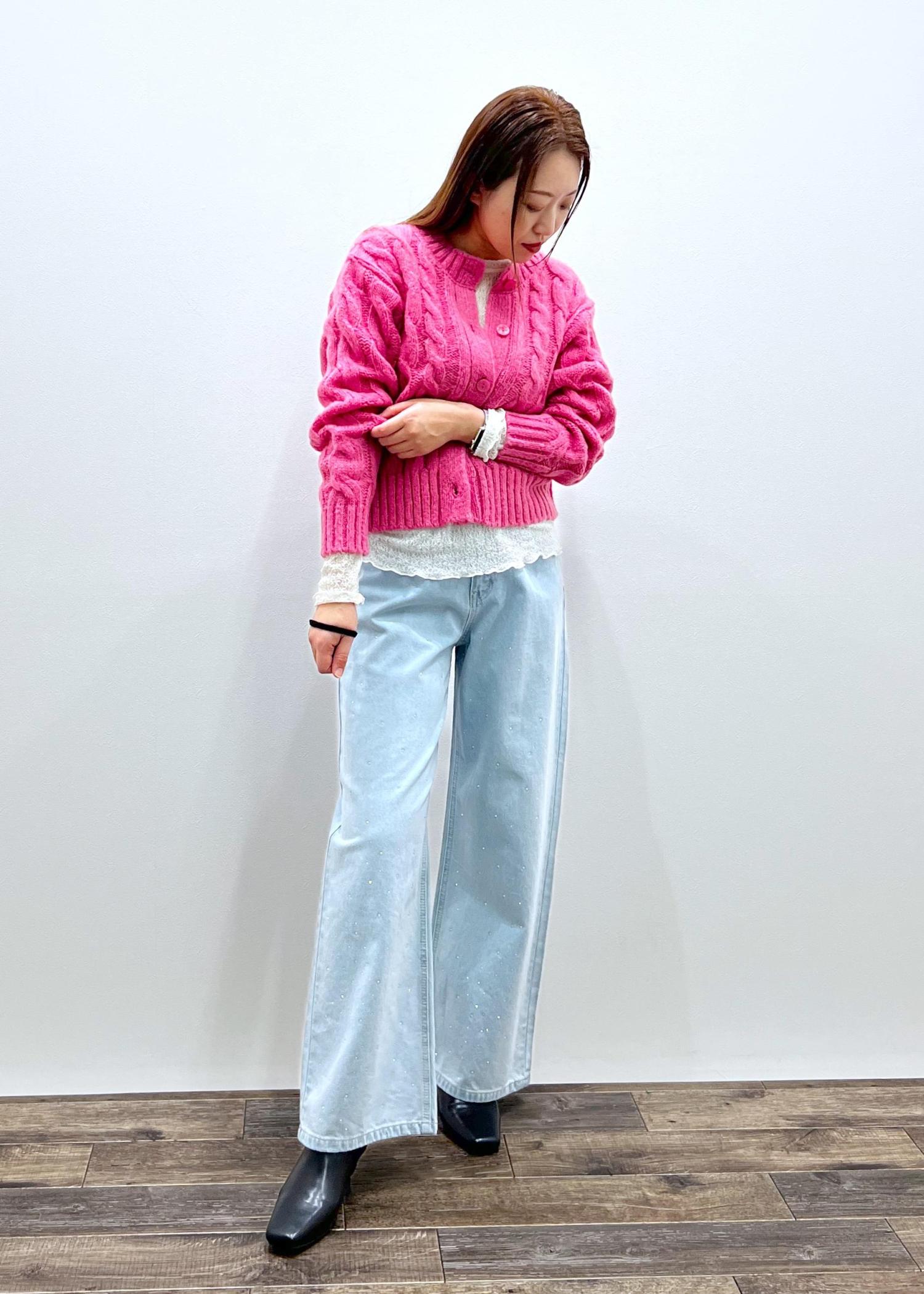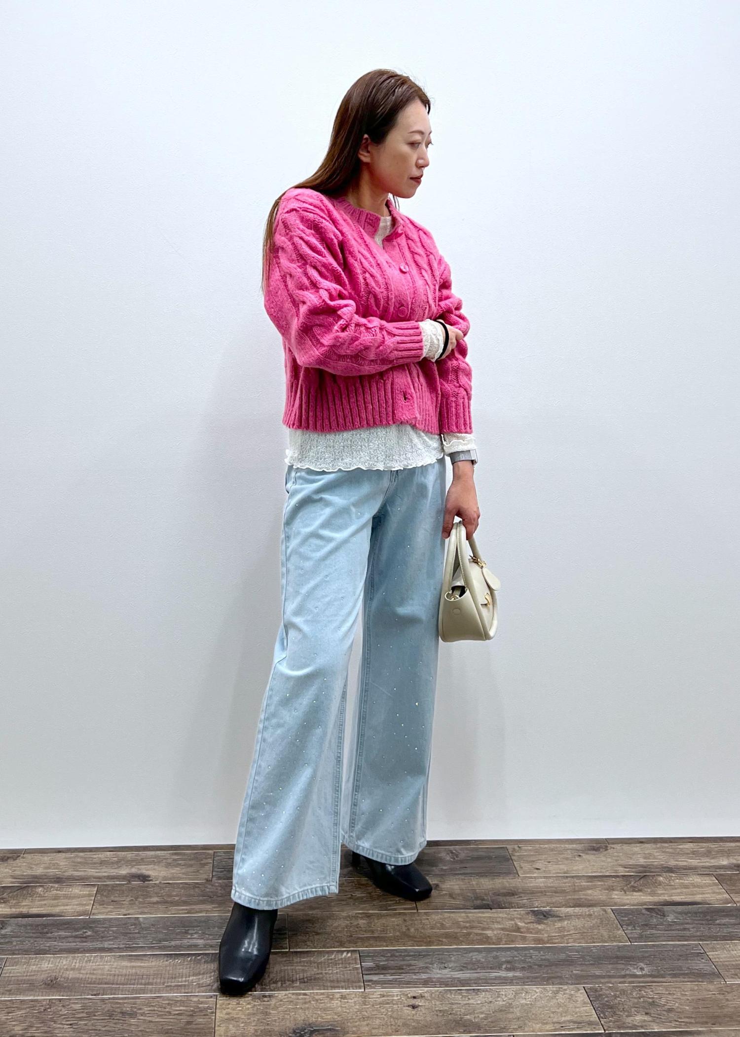 そんな時に鮮やかなカラーがおすすめです。淡い色のデニムを合わせ柔らかい雰囲気でまとめてみました。