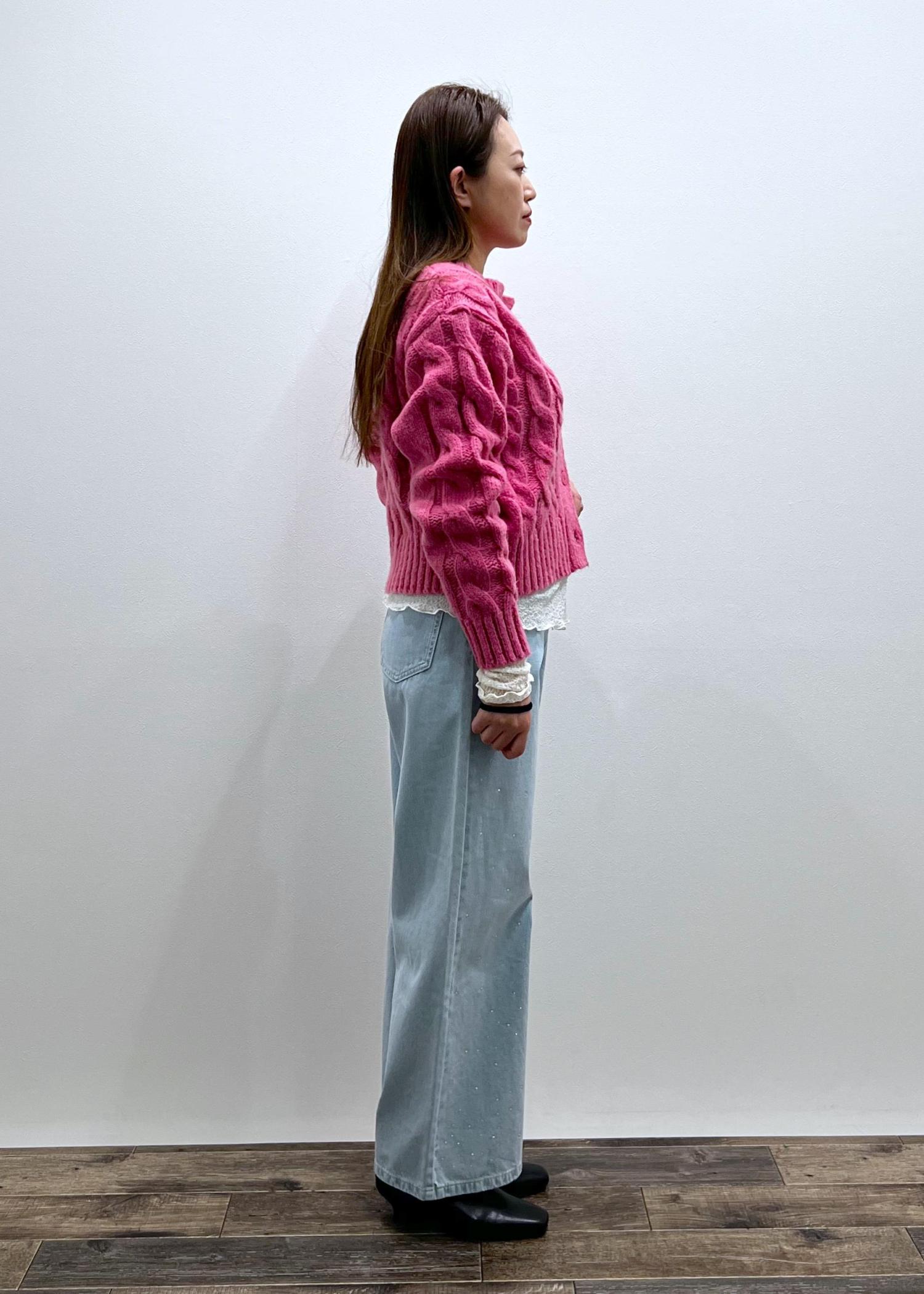 ROPÉ PICNICケーブルニットカーディガンローズピンク / F¥5,489レビュー程よくゆとりがあるサイズ感です。レイヤードしやすくインナーで雰囲気が変わります。