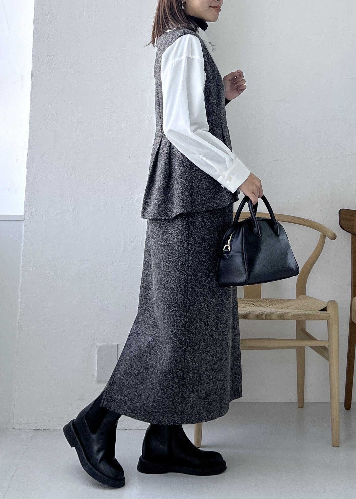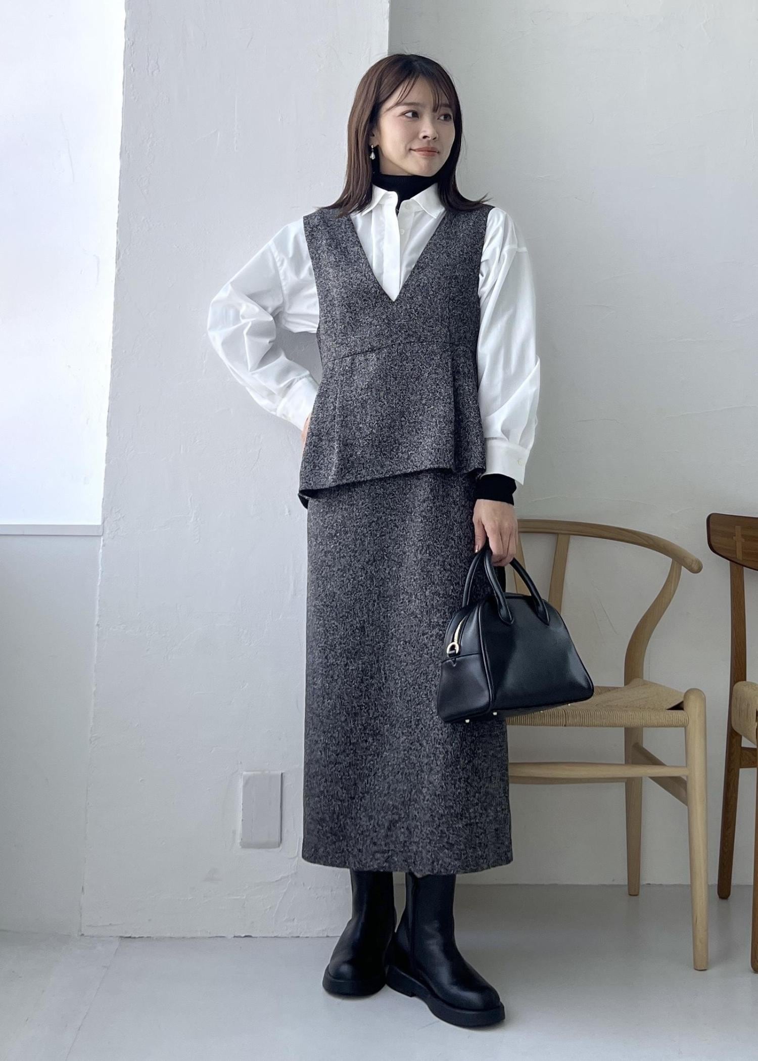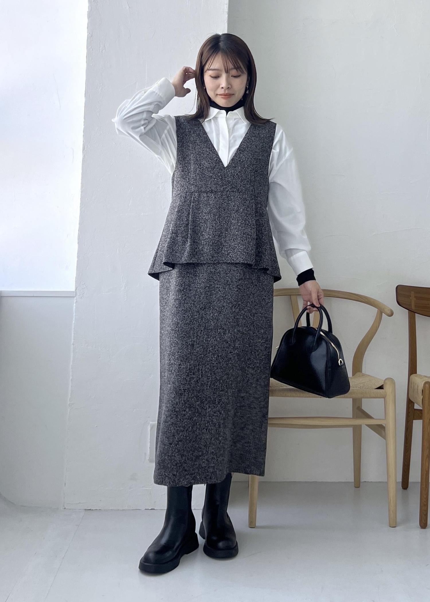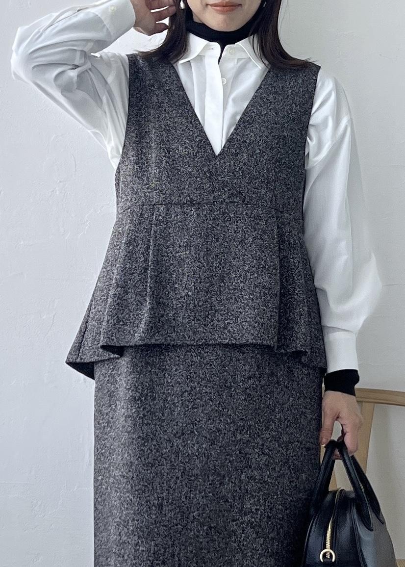 ROPÉ PICNIC【新色追加】レイヤード風ペプラムジャンパースカートチャコール / M¥7,997レビュー柔らかいツイード風の素材感で、表情のある生地。