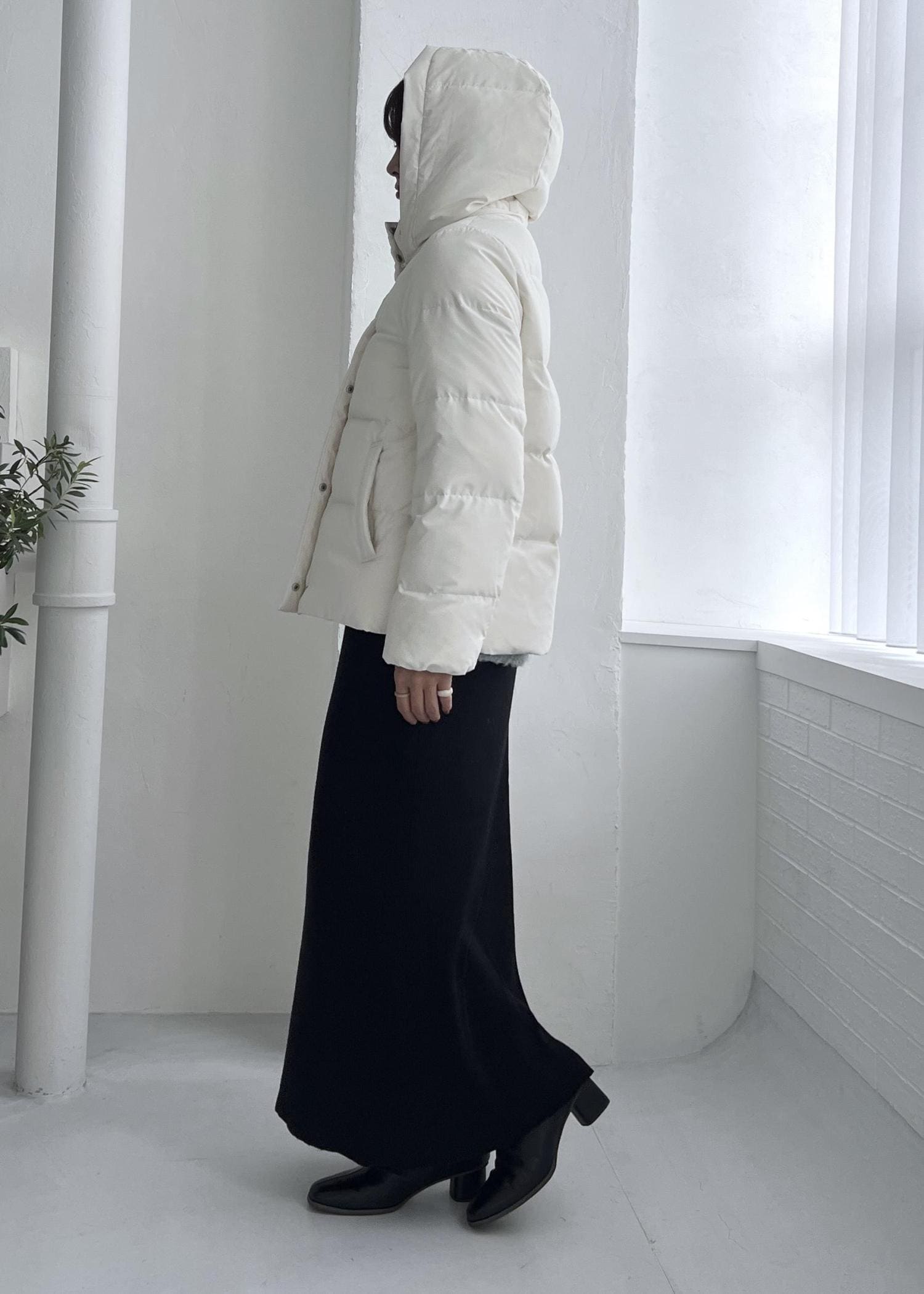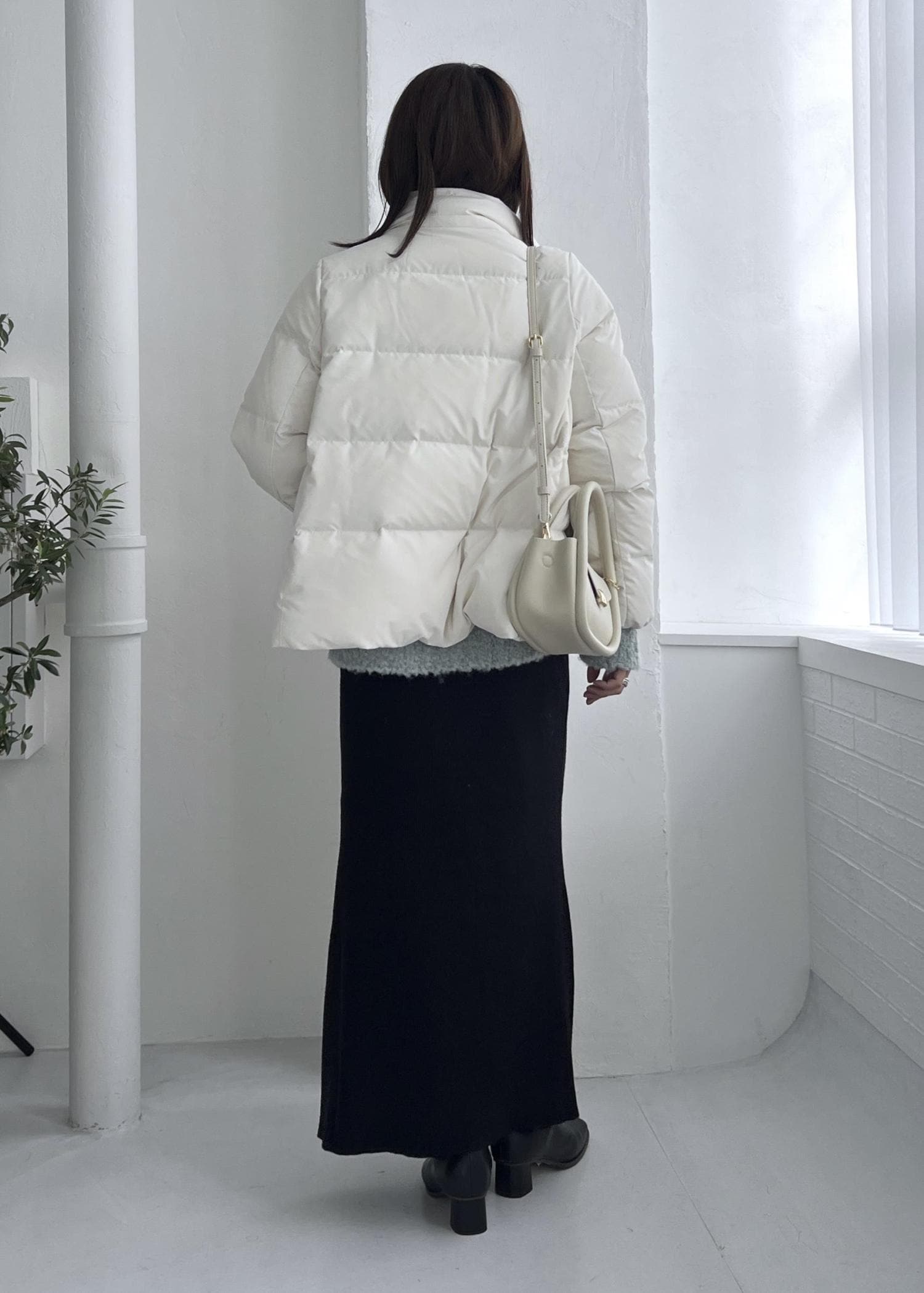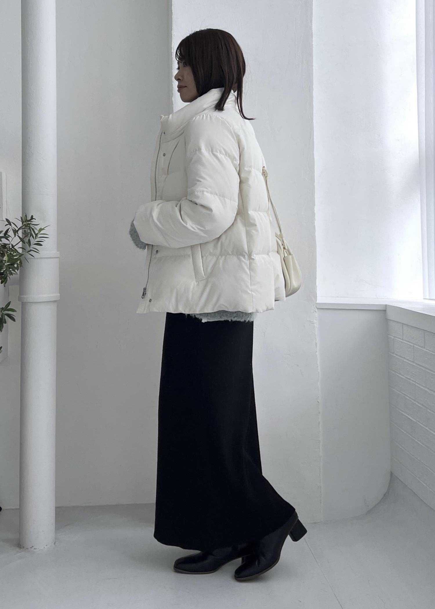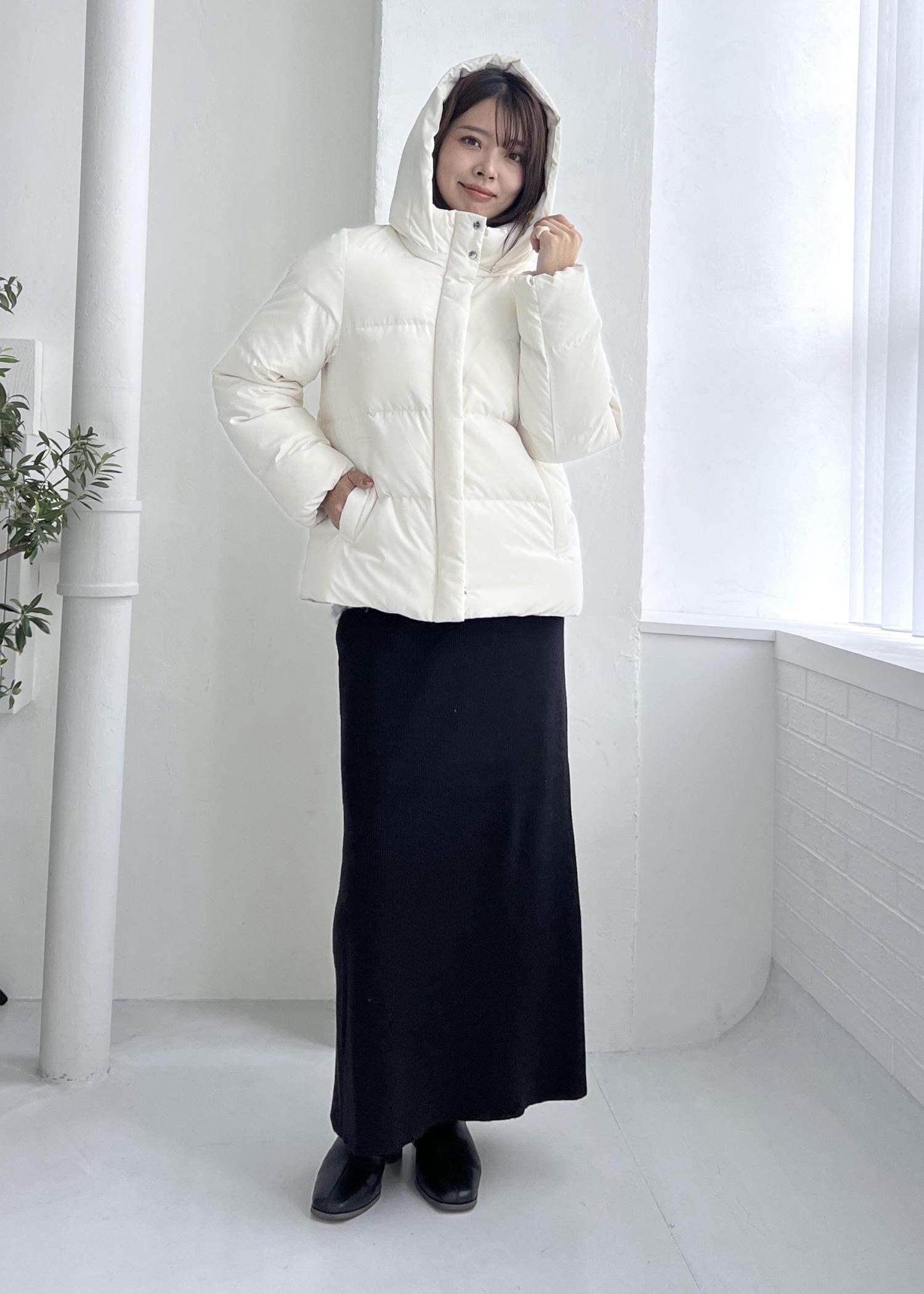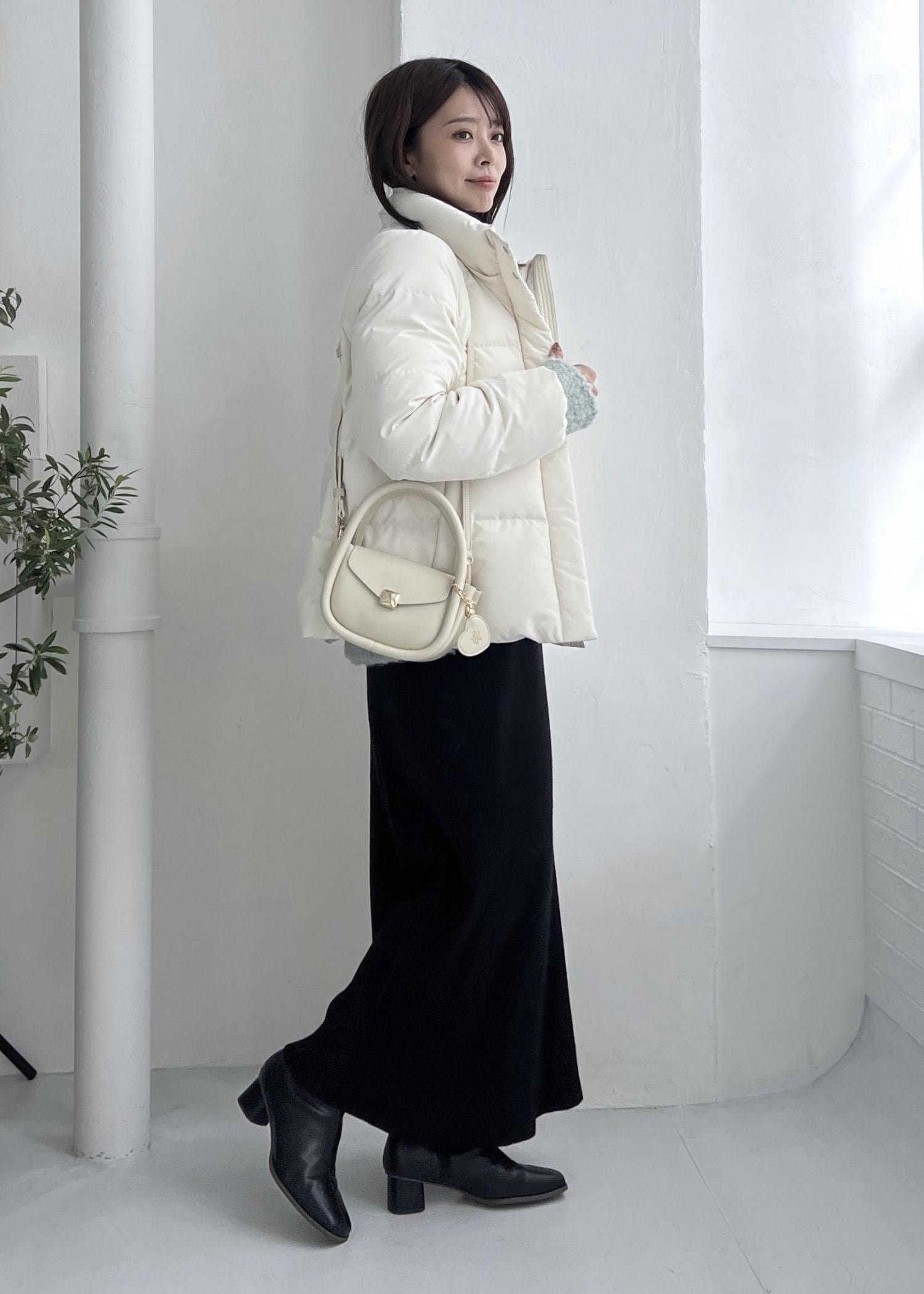 軽く暖かい着心地のダウンは、ホワイトで明るく華やかに見せてくれます◎。