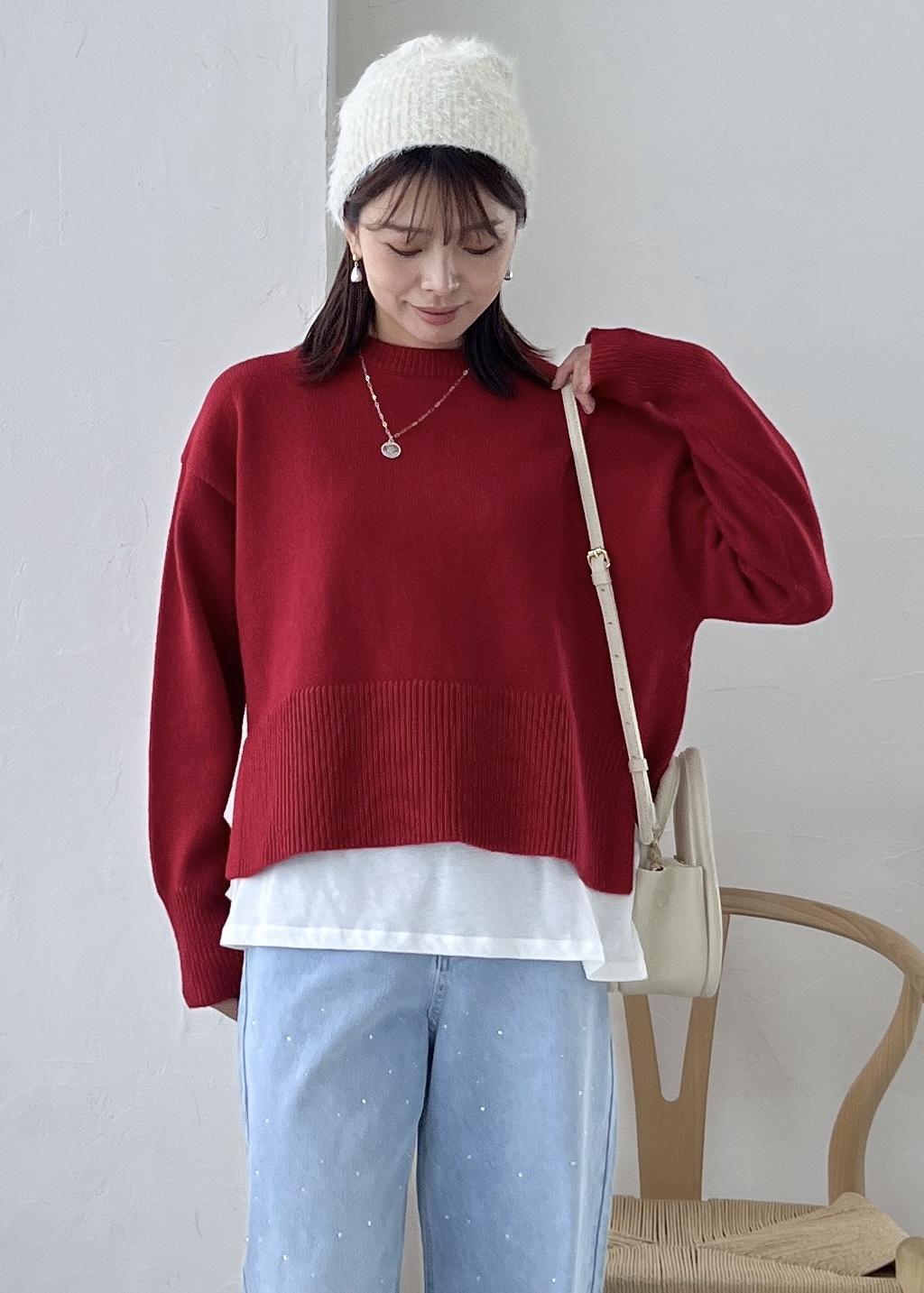 NEW!ROPÉ PICNIC【新色追加】着丈が選べるクルーネックサイドスリットニットプルオーバー/イージーケアレッド / M¥3,993レビュー柔らかくチクチク感なく着やすいポリエステル、アクリル混合素材。