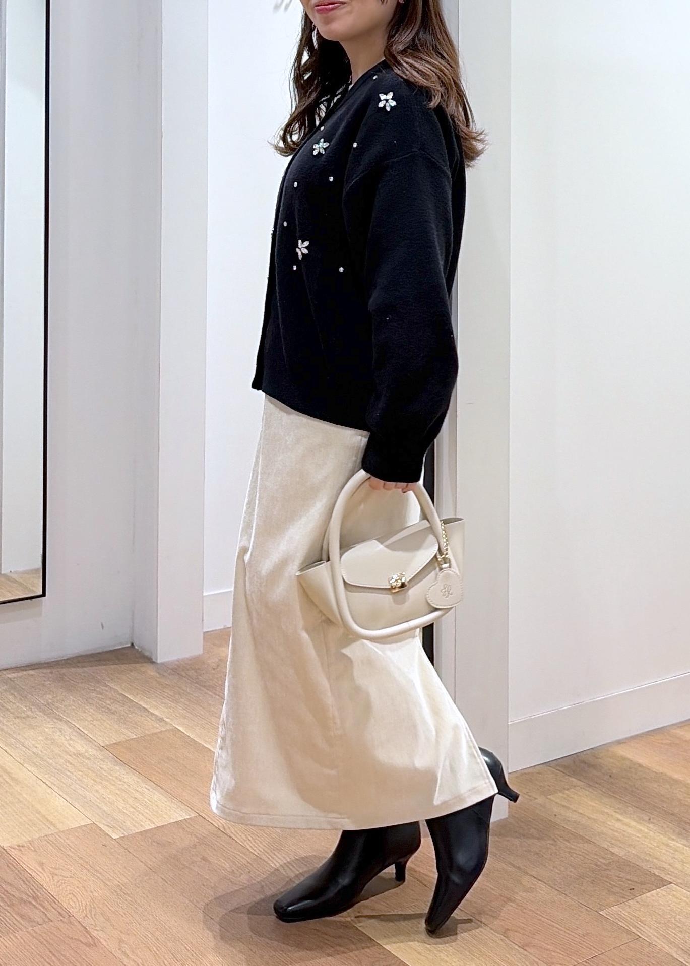 ROPÉ PICNICビジューニットカーディガンブラック / F¥5,995レビュー袖口に向かってボリュームが広がりがあり綺麗目にもカジュアルにも合わせやすいです。