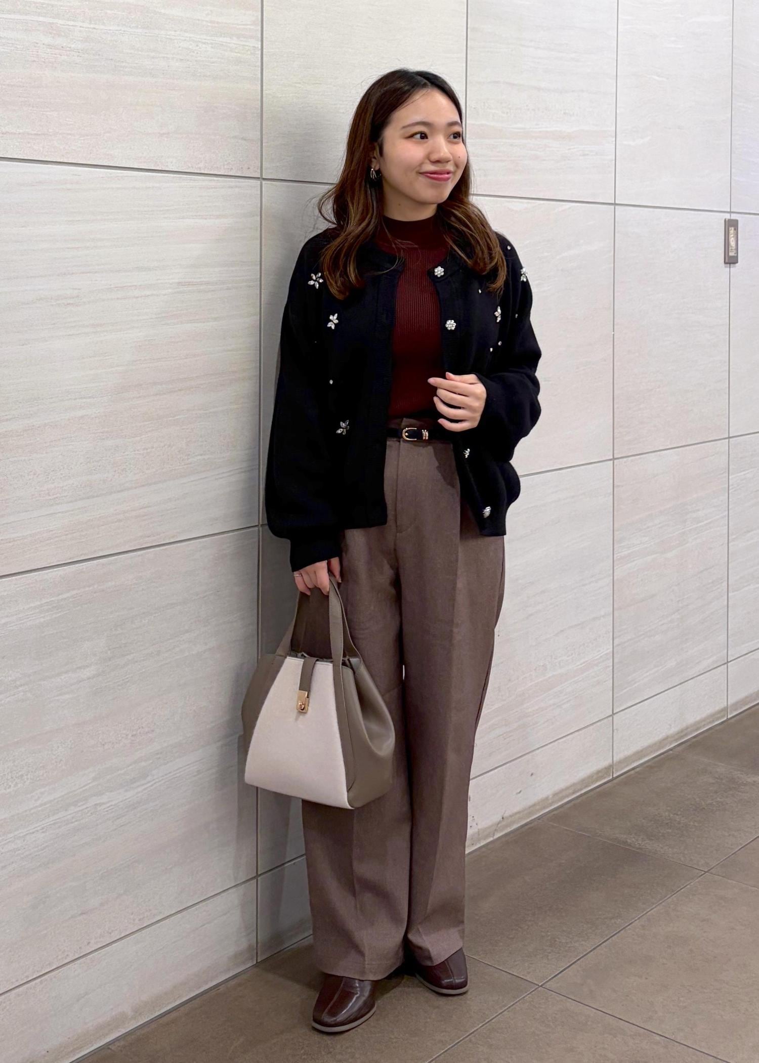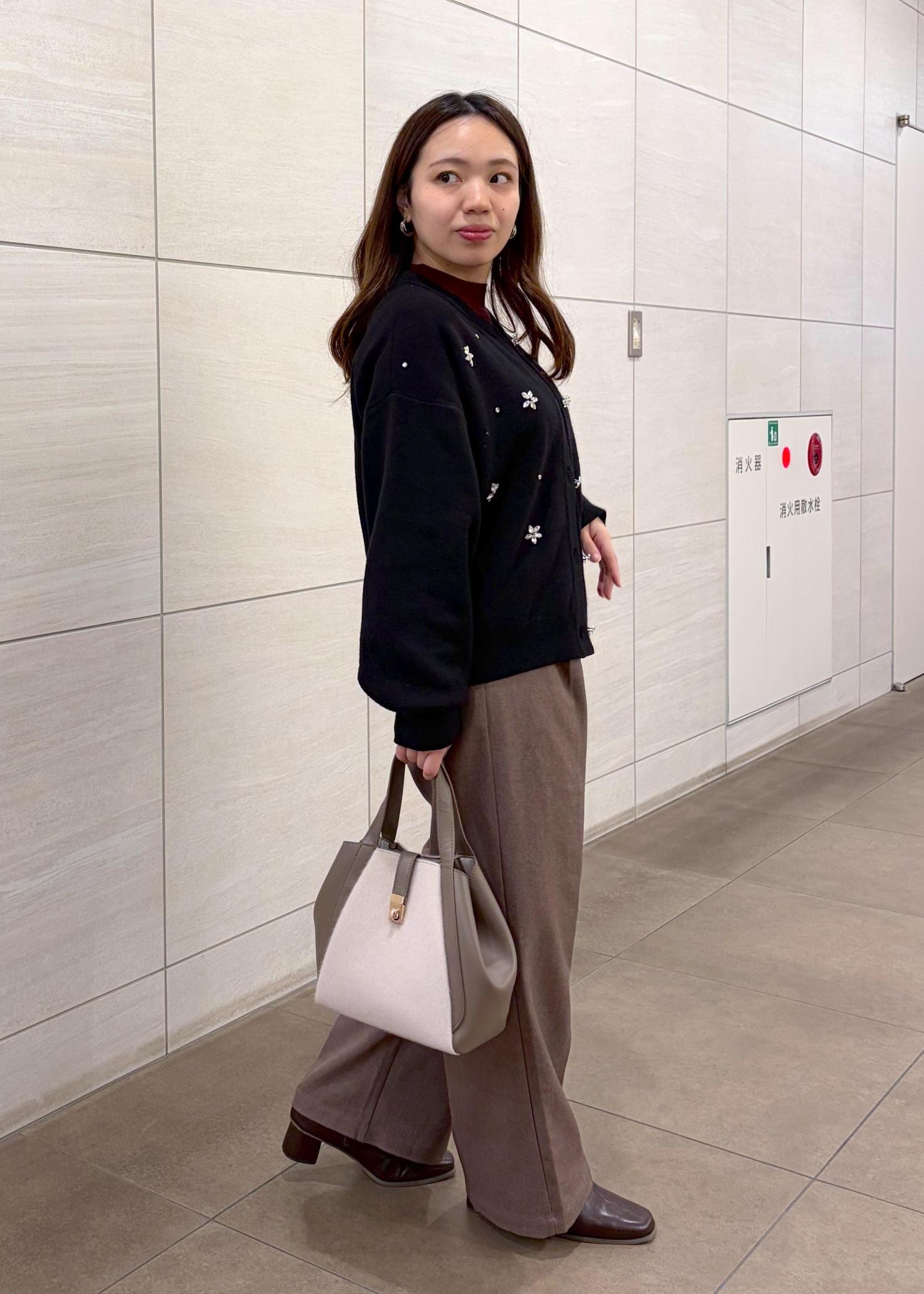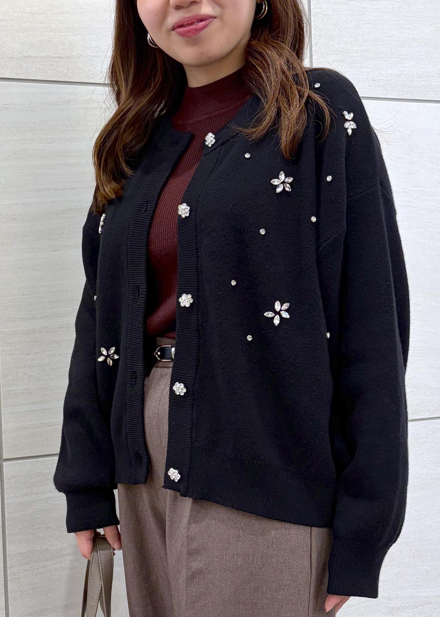 ROPÉ PICNICビジューニットカーディガンブラック / F¥5,995レビュー袖口に向かってボリュームが広がりがあり綺麗目にもカジュアルにも合わせやすいです。