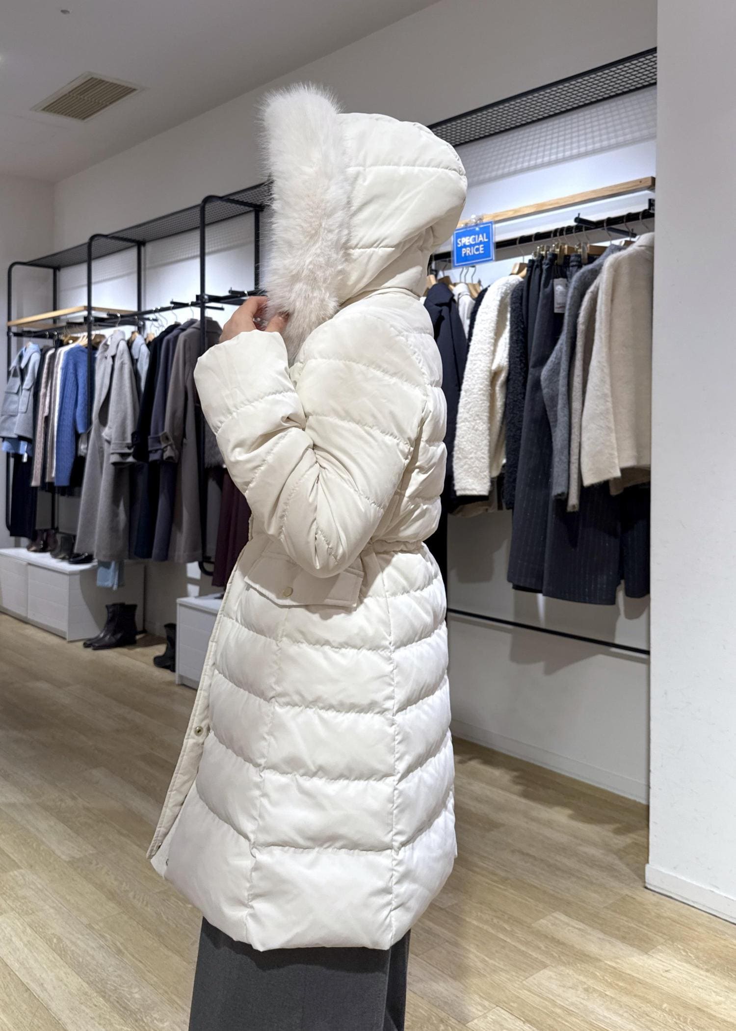 2BUY10%OFFROPÉ PICNIC【GREEN DOWN/グリーンダウン】ファー付きダウンロングコート/一部WEB限定カラーオフホワイト / M¥15,840レビュー着丈は膝上丈です。