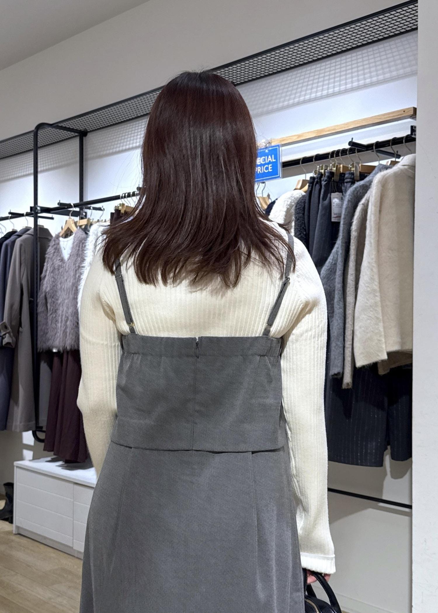 上着はダウンを合わせれば、インナーのニットが薄手でも暖かくお召しいただけます◎