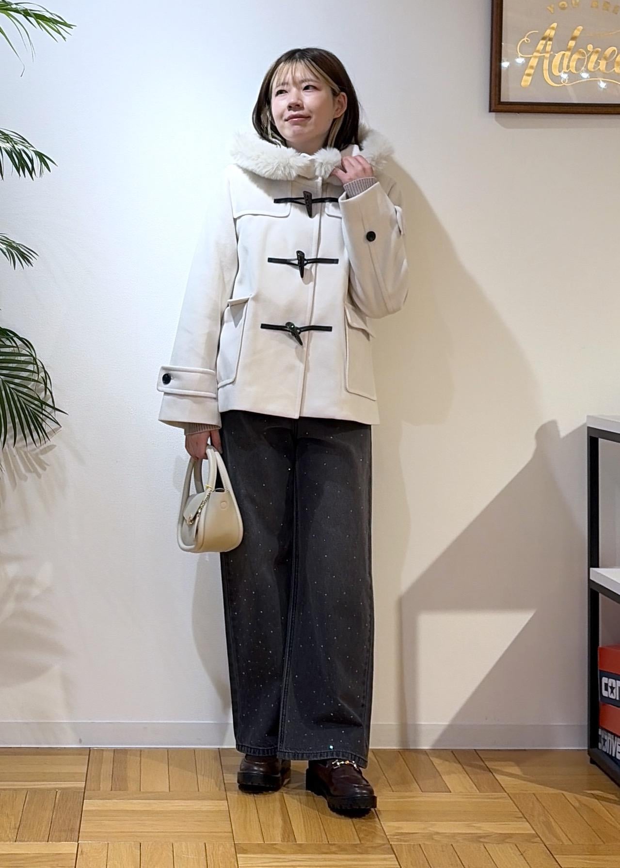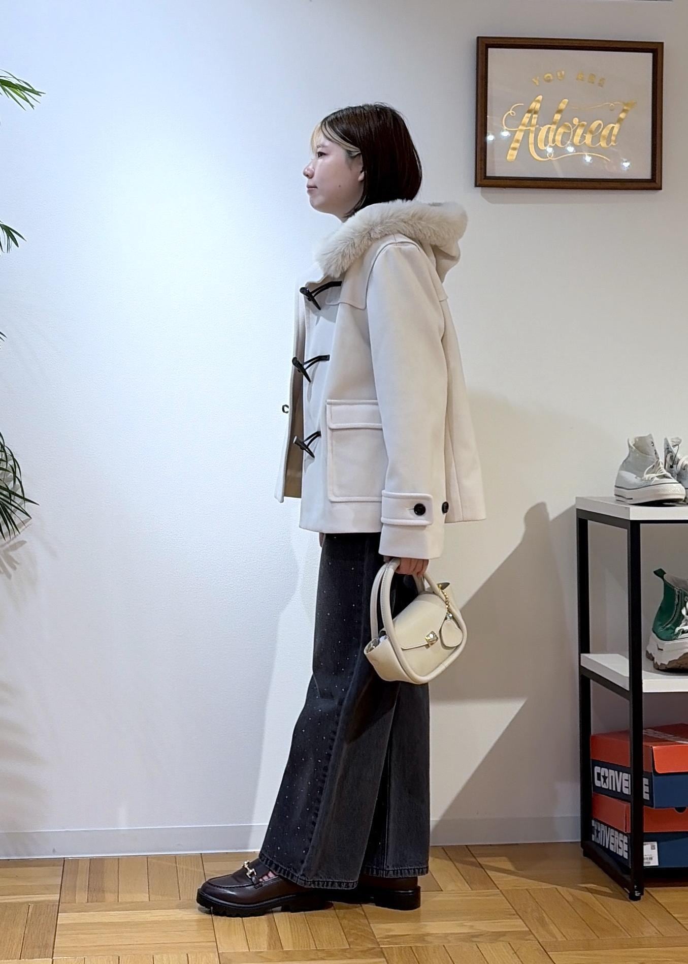 今回は、明るいアウターを使用して、春まで着用オススメなコーディネートを組みました♩