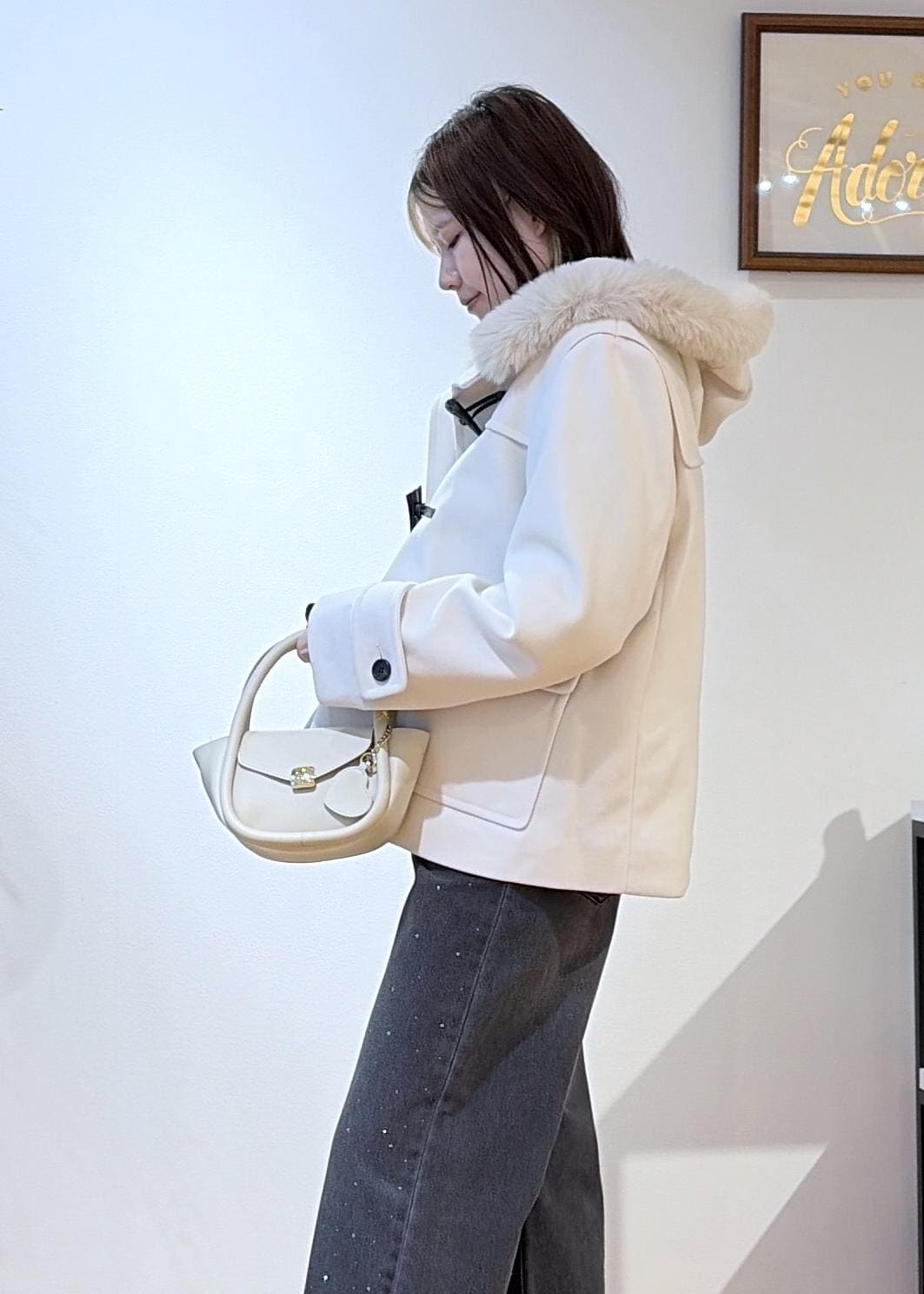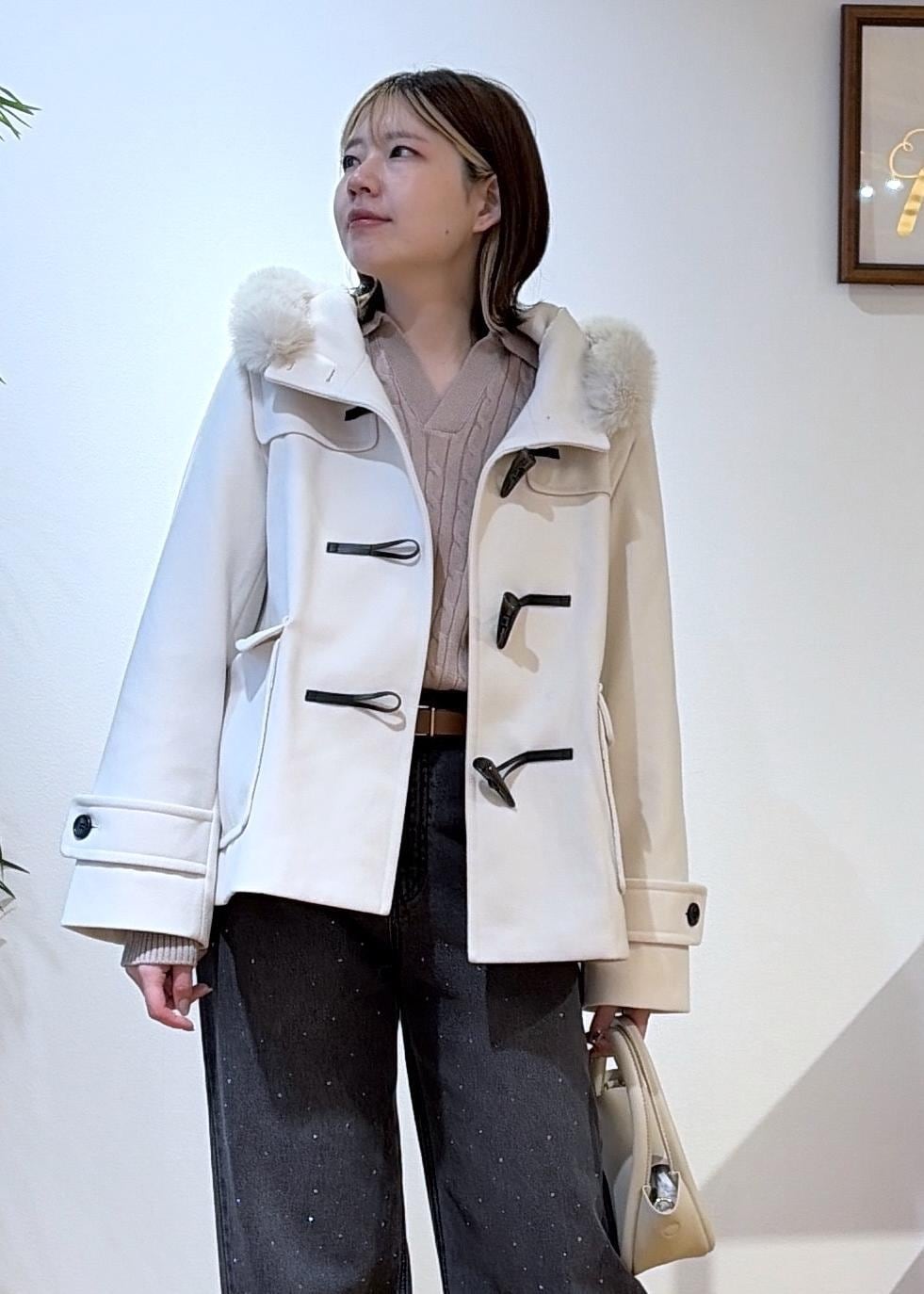 ROPÉ PICNICジャージーメルトンシリーズ ファー付きショートダッフルコート/リンクコーデキナリ / L¥9,240レビューファーのフーディー部分は簡単に取り外し可能です♩