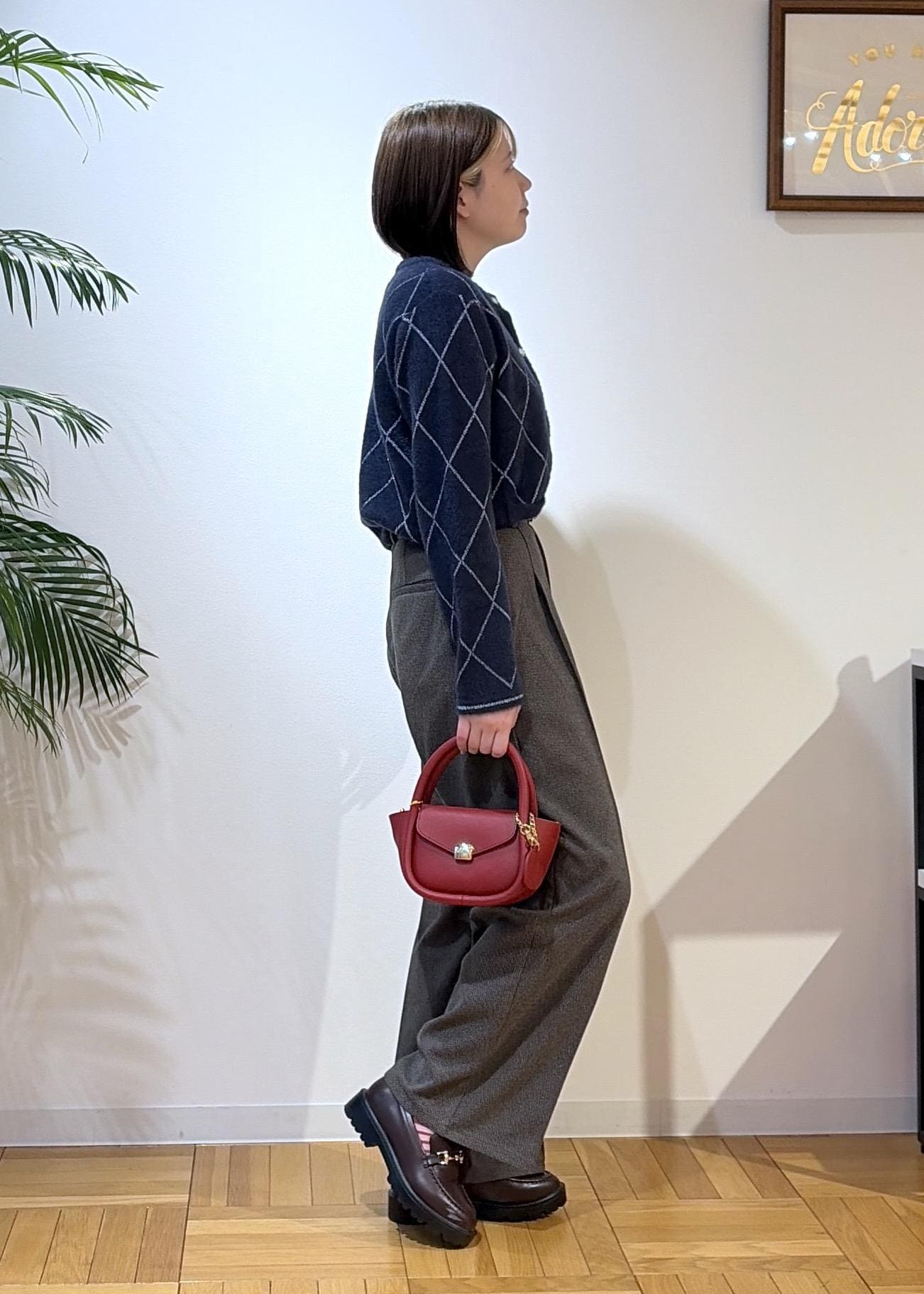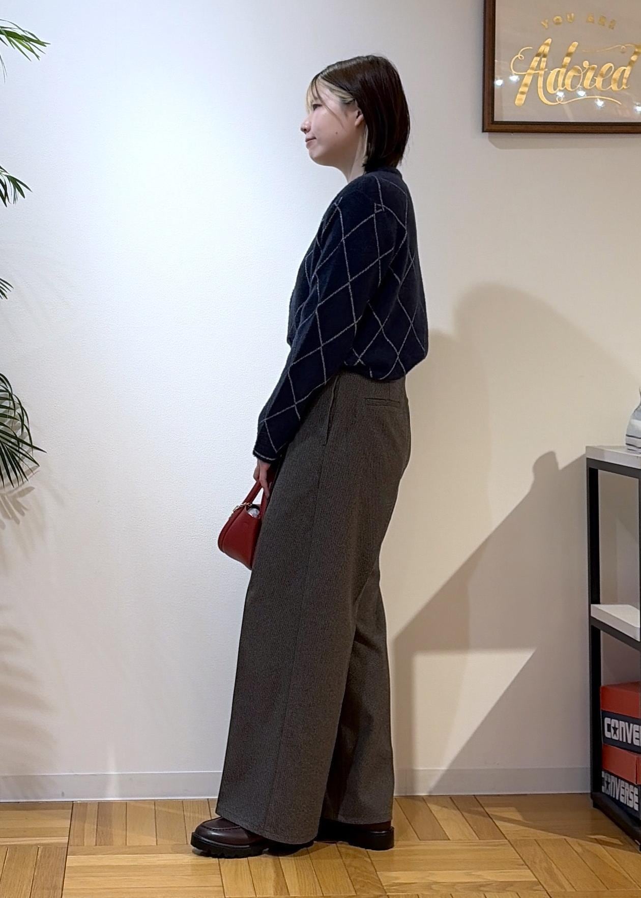 ボトムスにカーディガンをインしてメリハリが出るシルエットに◎