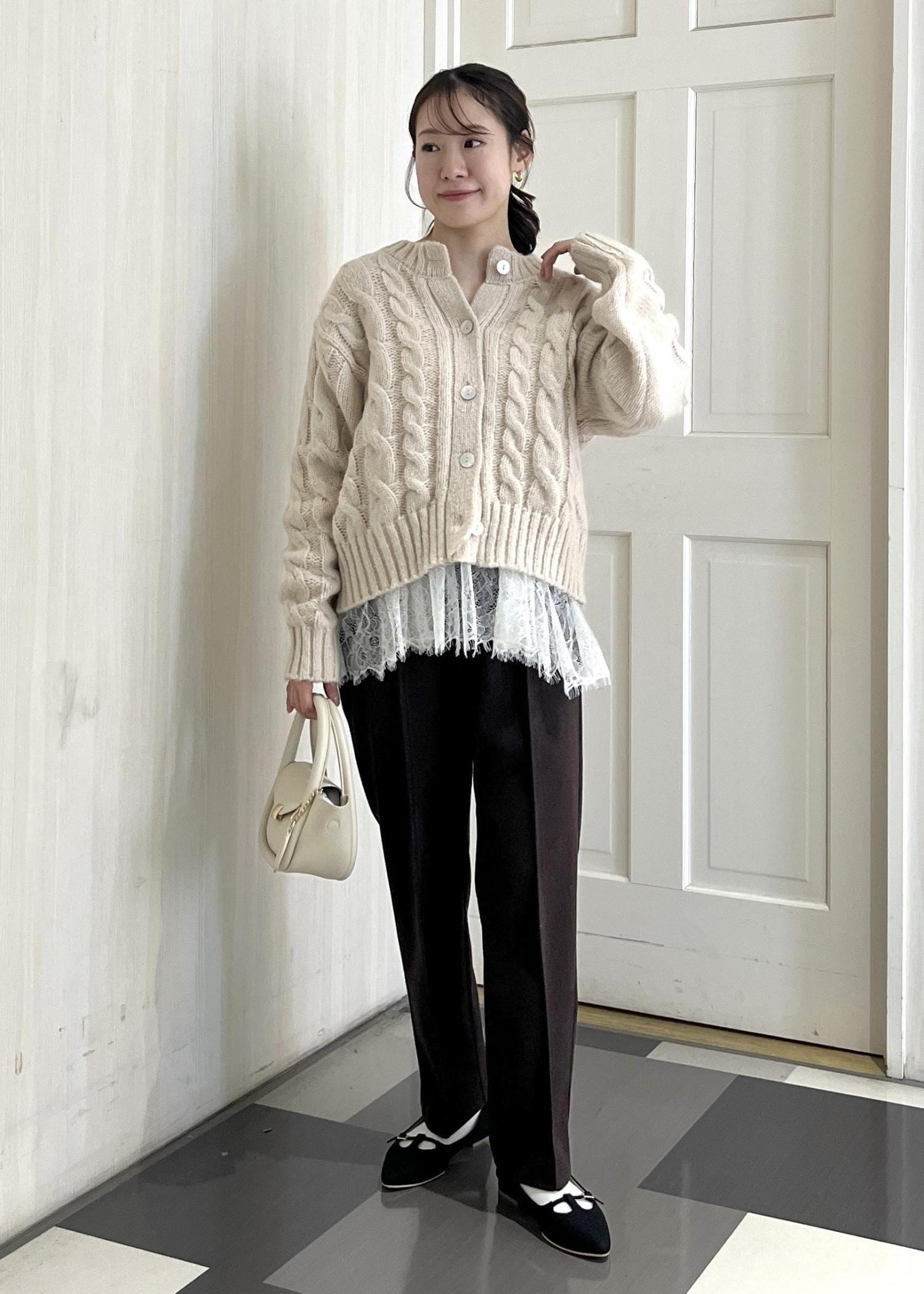 ざっくりと編まれたニットトップスで、インナーが少し透けました。 -