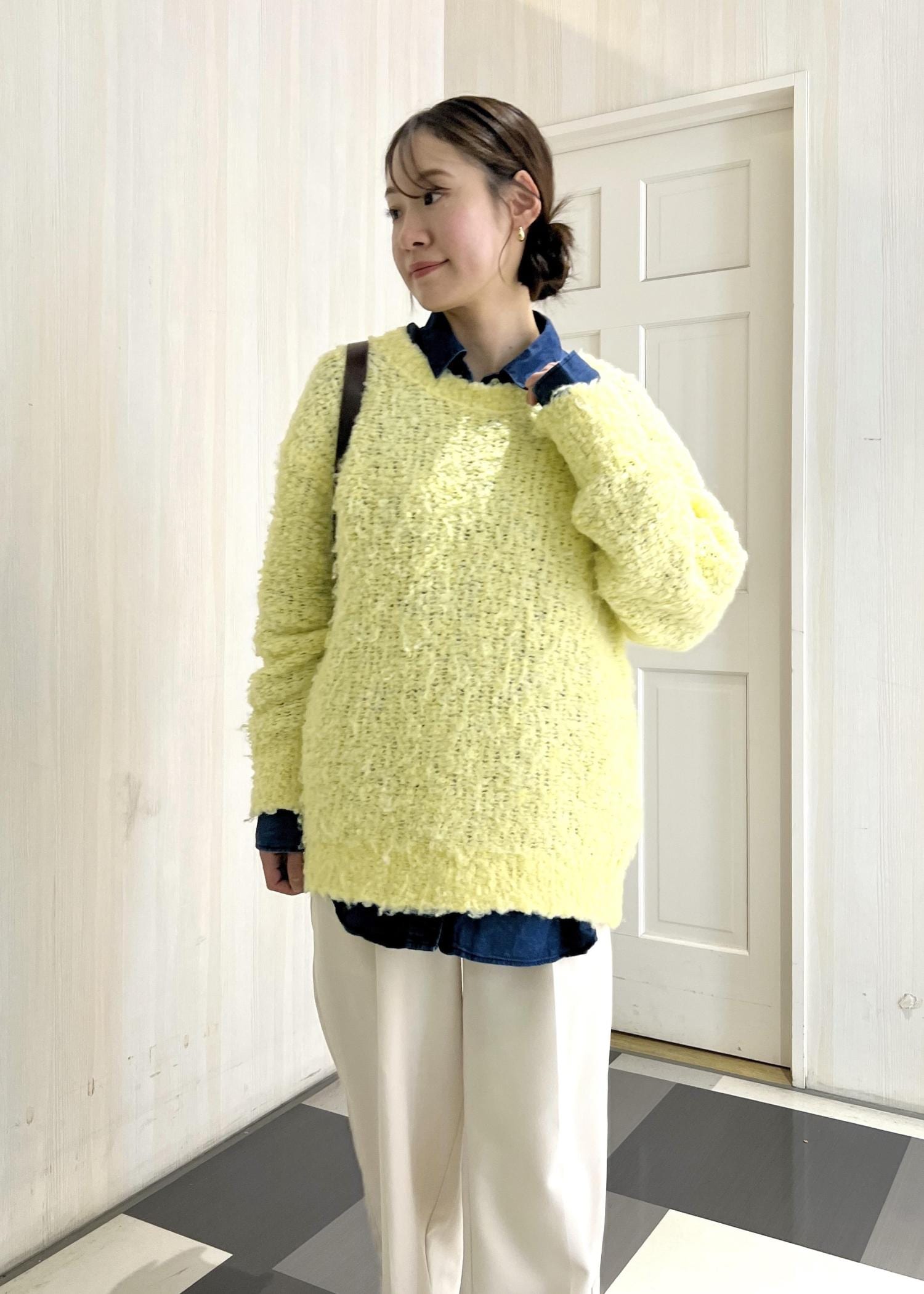 2BUY10%OFFROPÉ PICNICブークレカラーニットイエロー / F¥3,568レビューゆったりサイズで、ふんわりとした着心地でした。袖丈は手が隠れるくらい、着丈はヒップが隠れるくらいです。