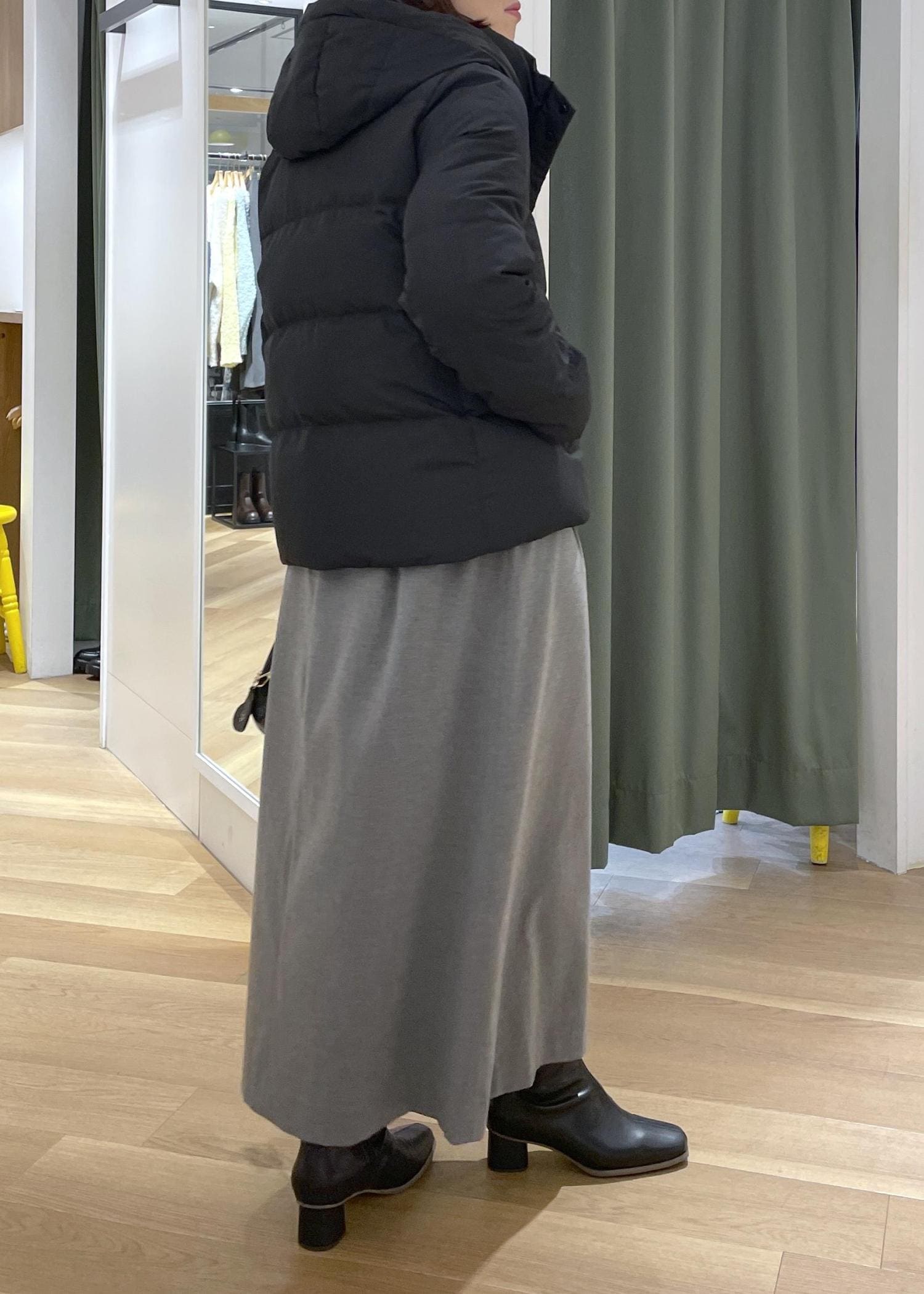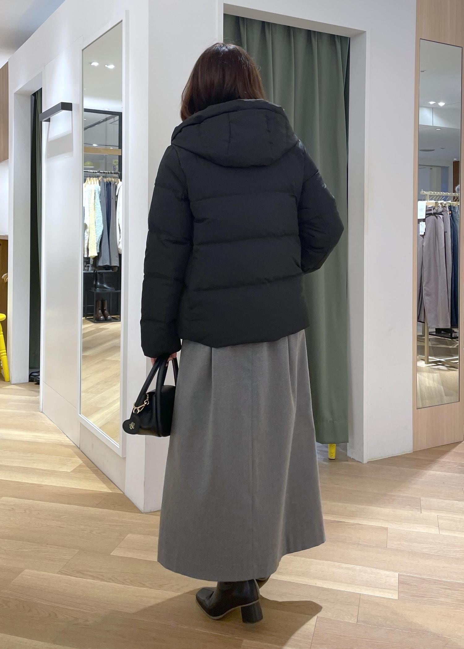 品良く決まるキャミワンピーススタイルにブラックのダウンを合わせた、冬のお出かけにおすすめのきれいめカジュアルコーデです!