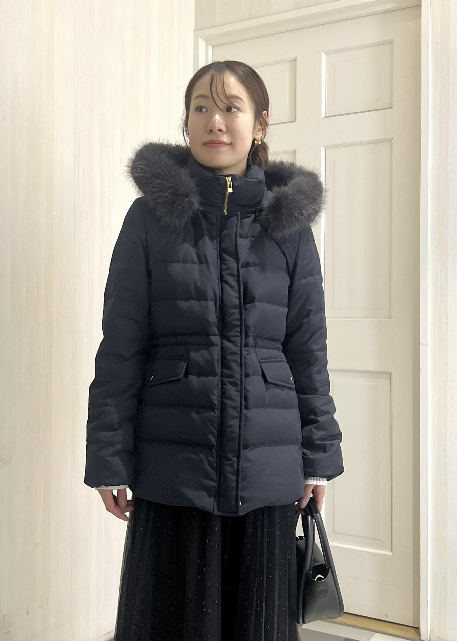 ダウンのフィット&フレアのデザインが、きちんと感を演出。