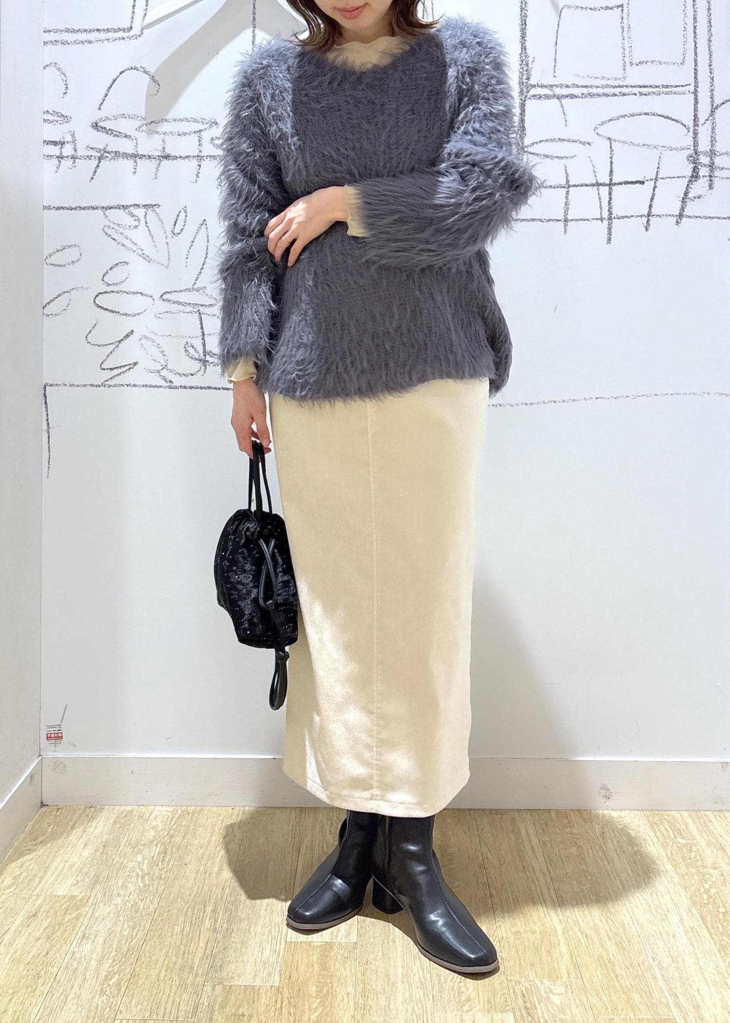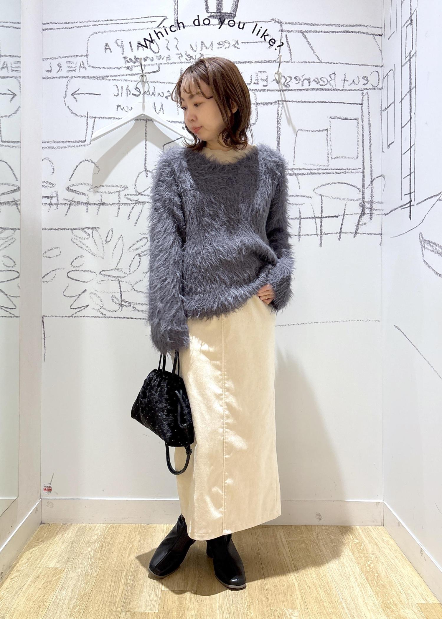 チャコール×ホワイトのクリスマスにオススメのふわふわスタイル。