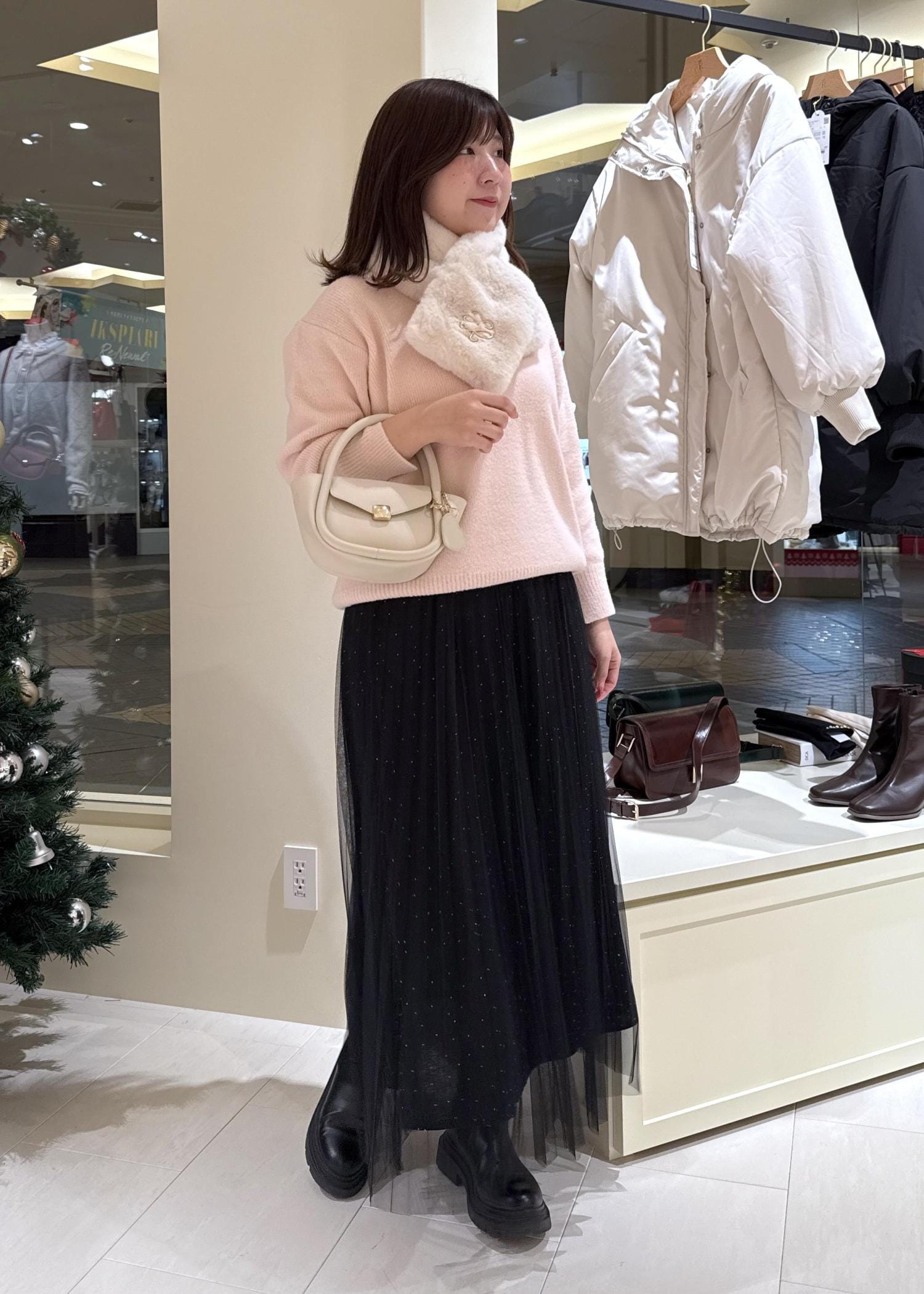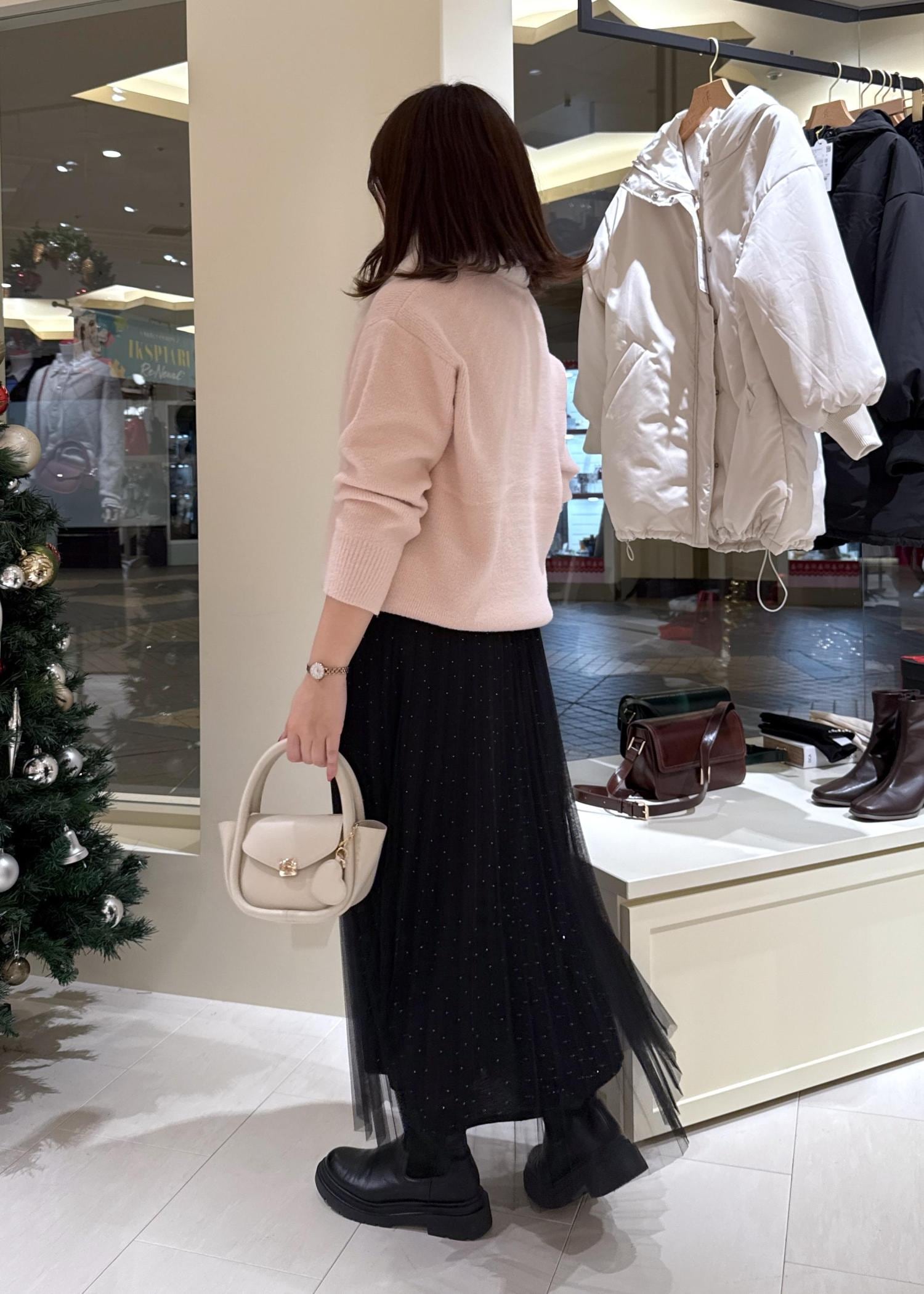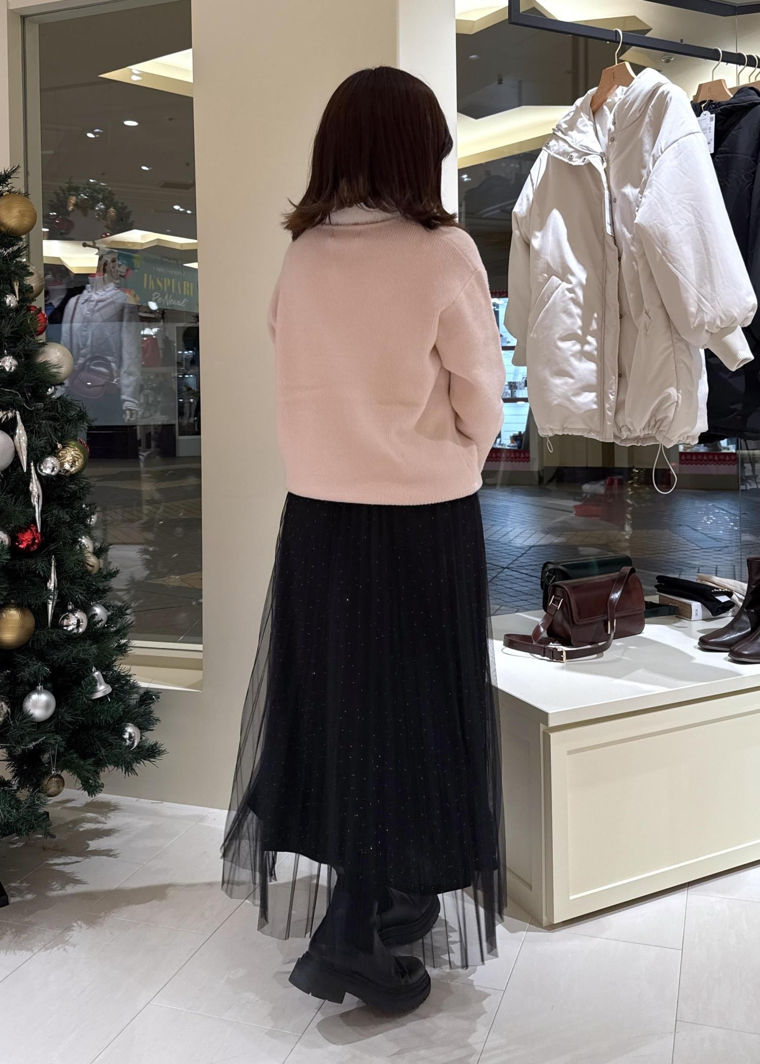 ROPÉ PICNICキラキラチュールプリーツスカート/着丈が選べるブラック / MT¥6,490レビューちりばめられたキラキラがとても綺麗でクリスマスシーズンに気分の上がる1着。