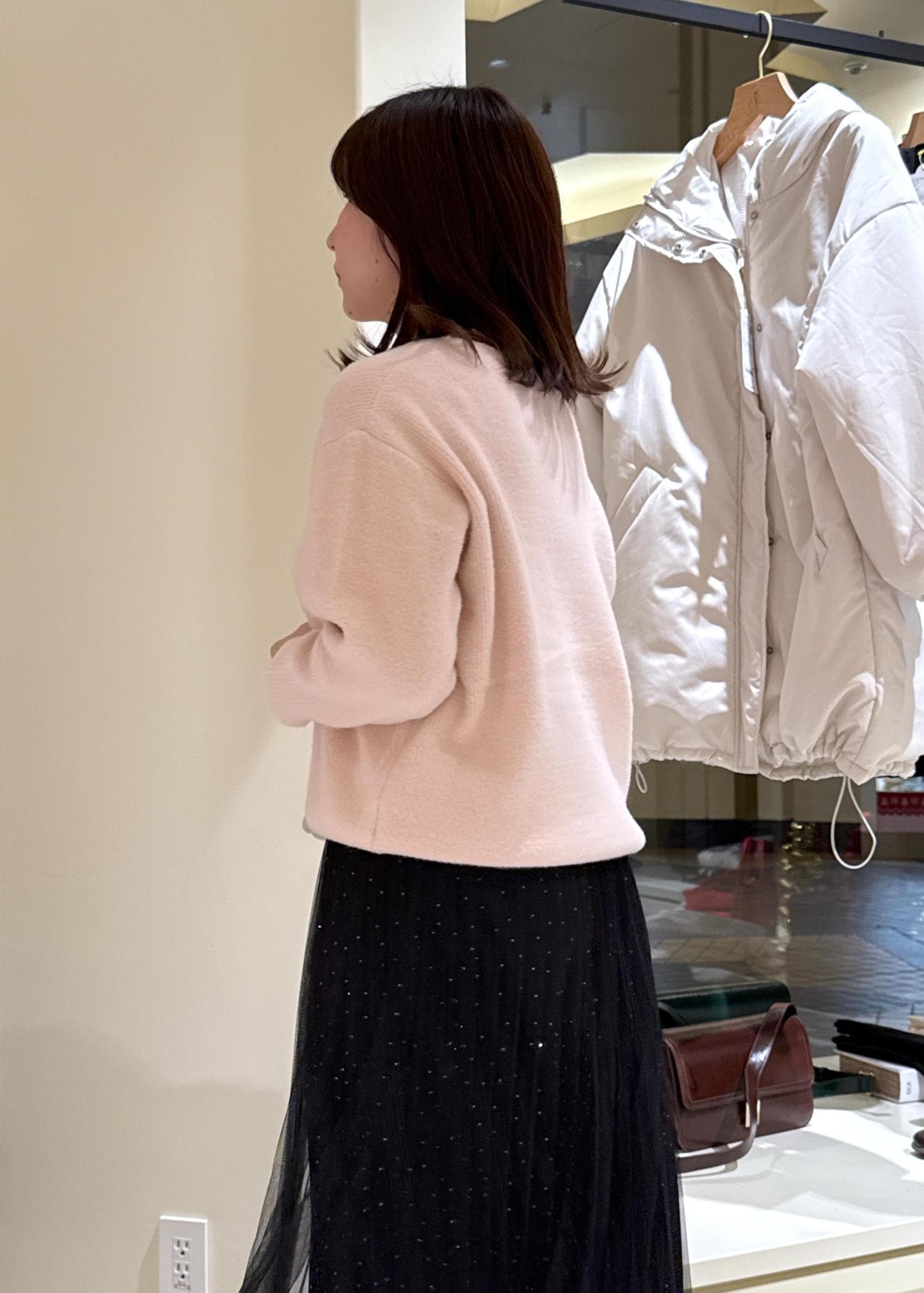 肩落ちのデザインなので肩周りもゆとりがありますが、着膨れしない落ち感ですっきりした印象に。